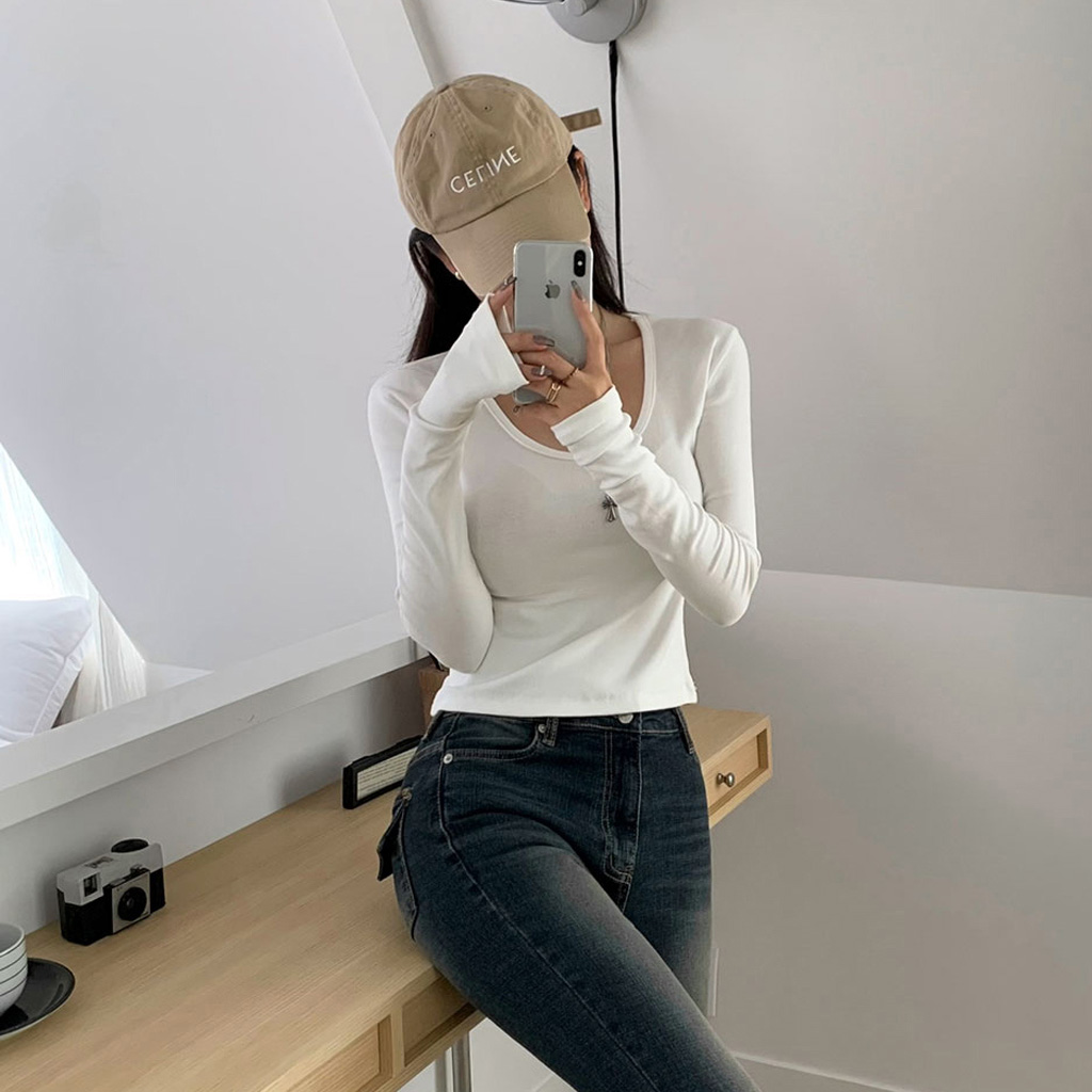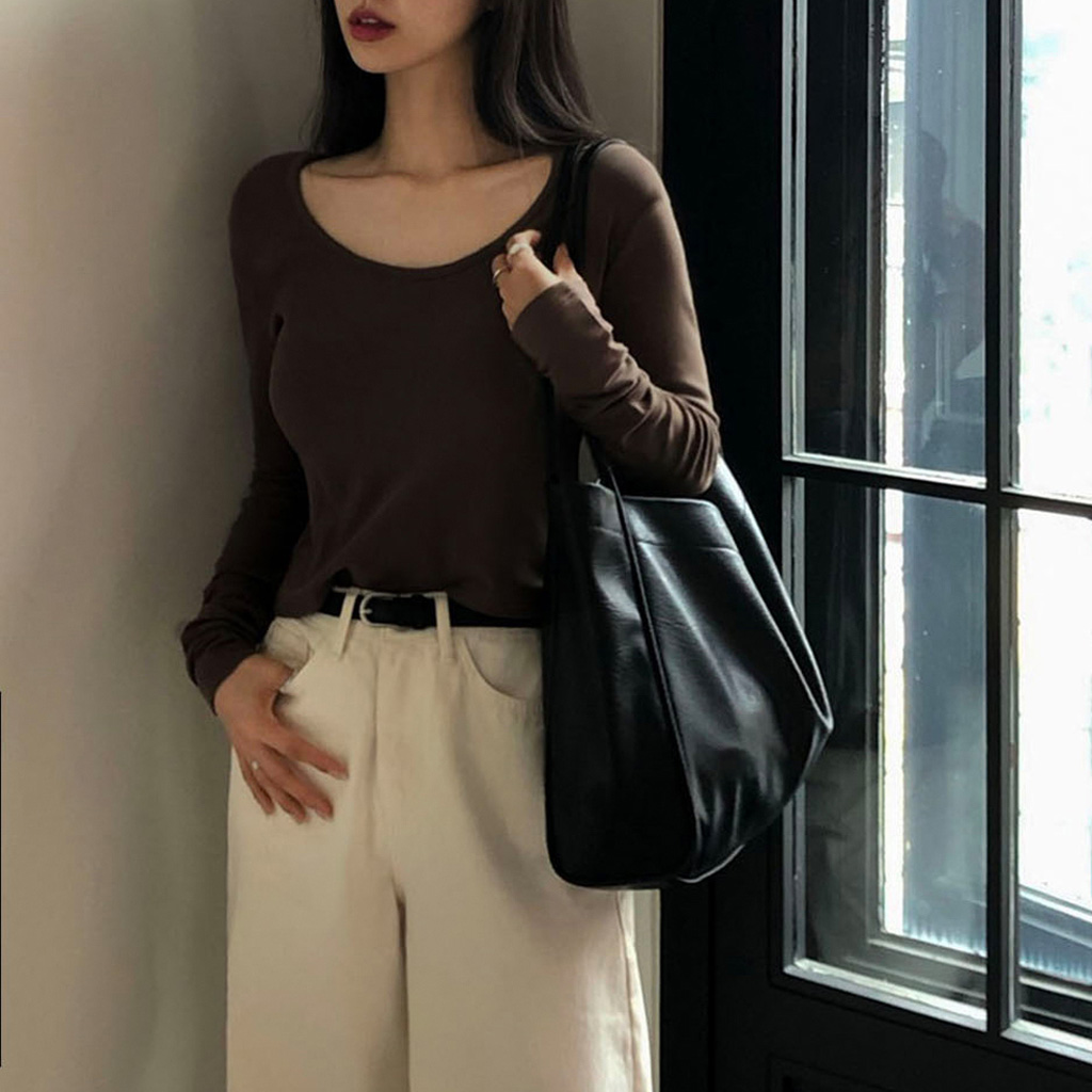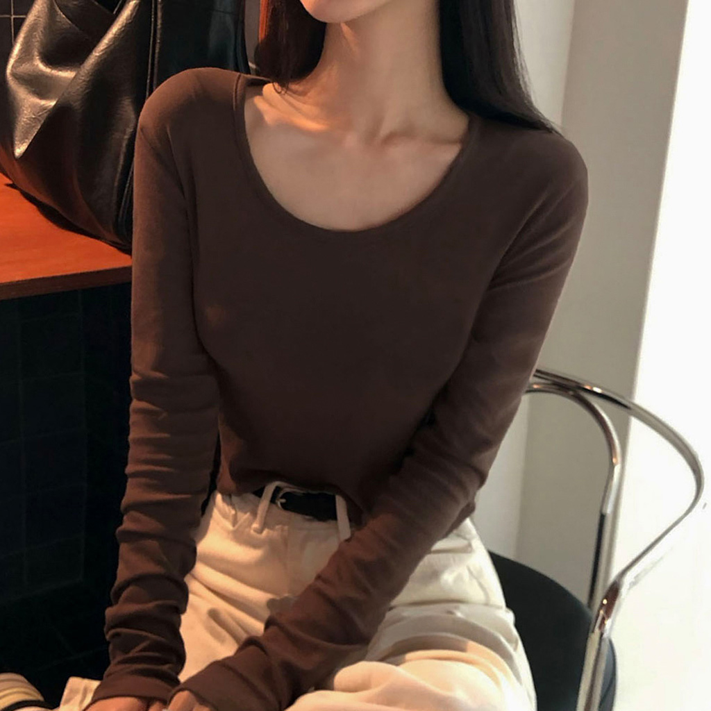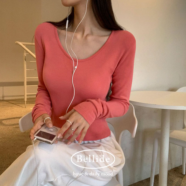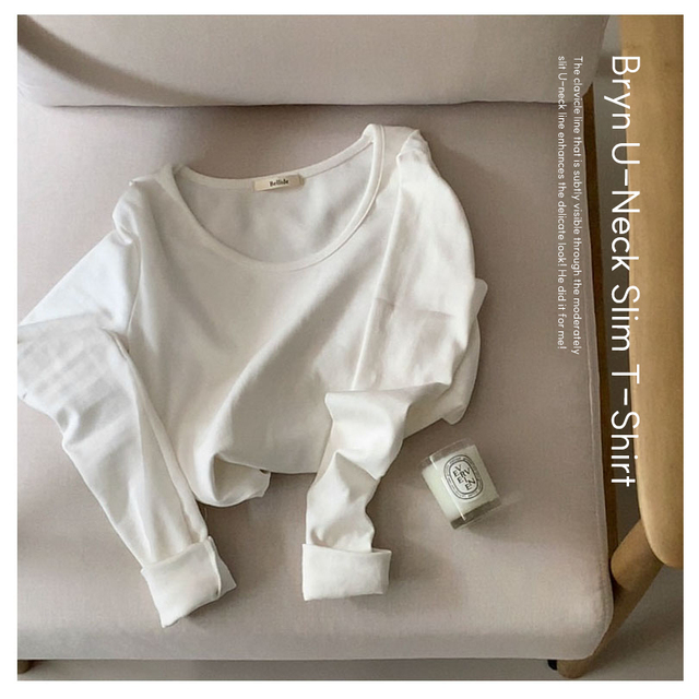 (ORIGINAL) ブリン、スリムUネック長袖Tシャツ