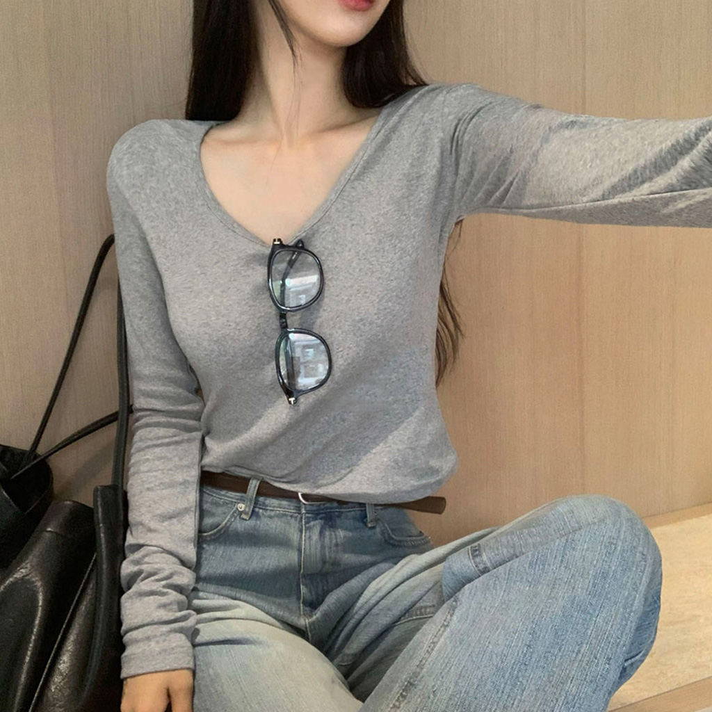 ボディにぴったり!くっつく生地ではなく、やさしく包むUネック長袖Tシャツです!