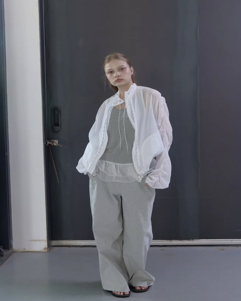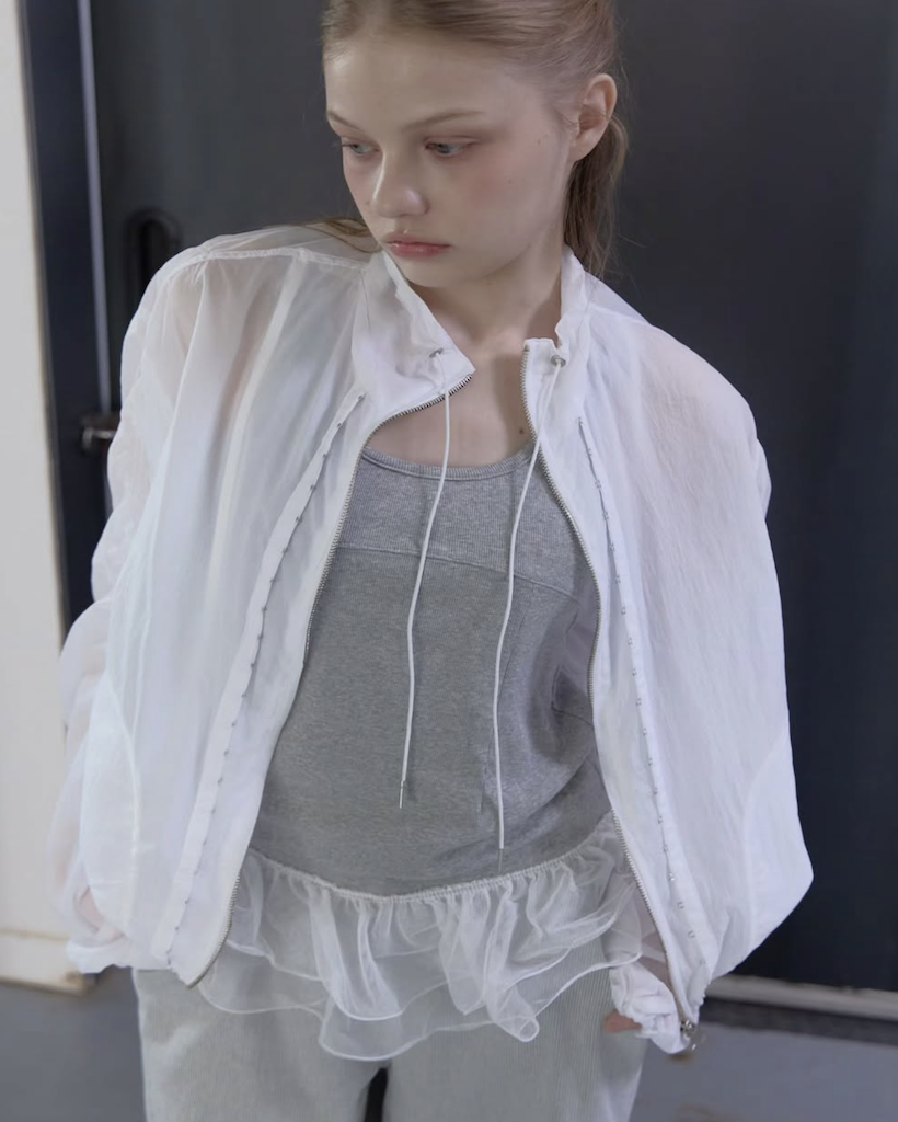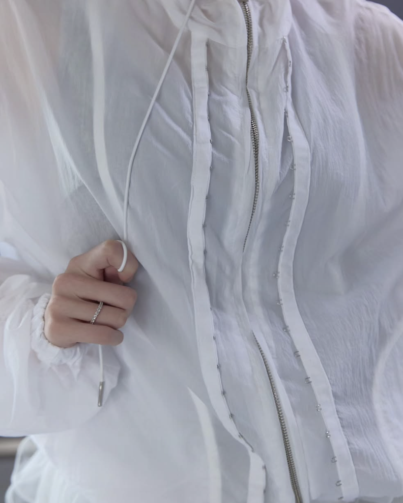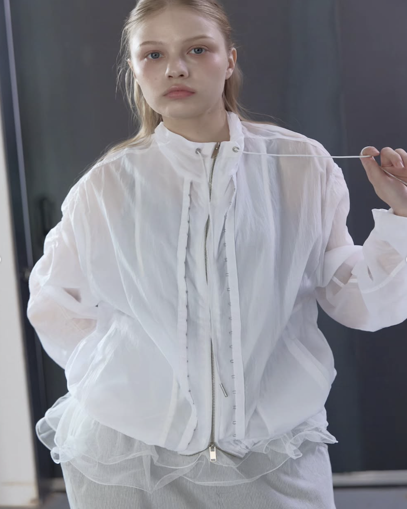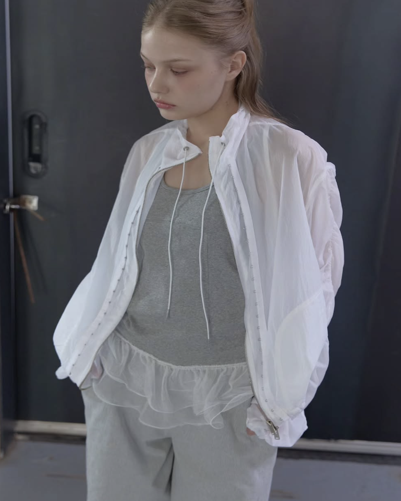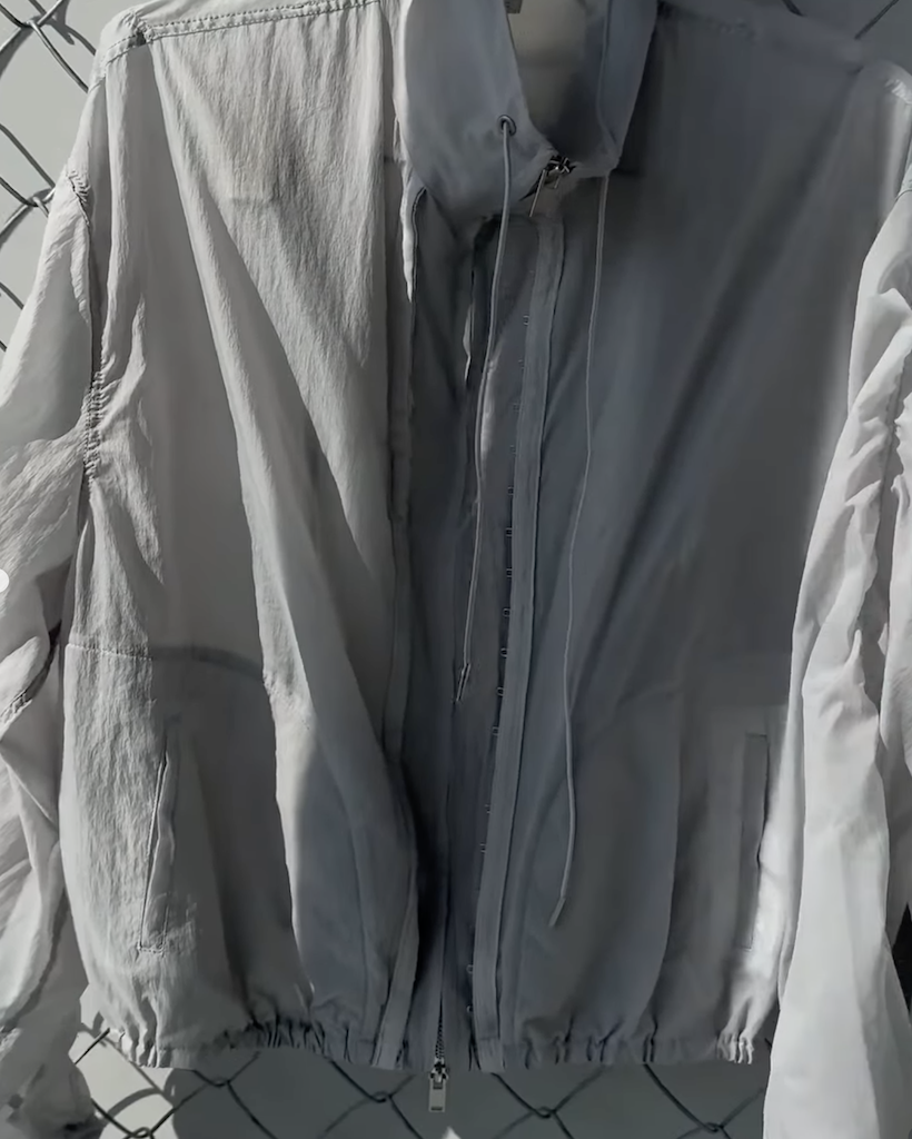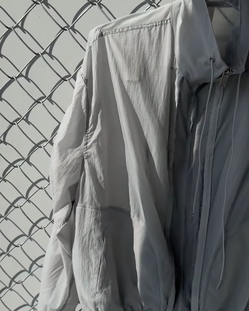 首元にはアイレットとチップ付きのドローストリングを配し、スポーティーながらも高級感のあるアクセントをプラス。季節を問わず、冷房対策やレイヤードアイテムとして長く愛用いただける、デザイン性と実用性を兼ね備えた万능アイテムです。