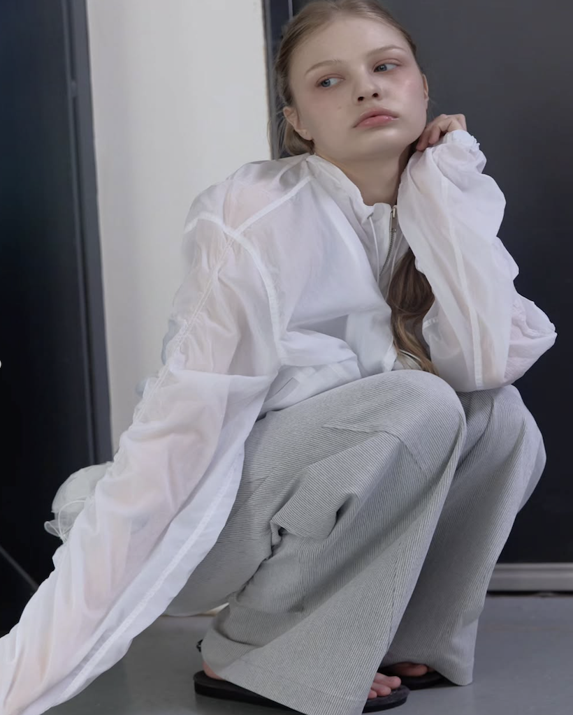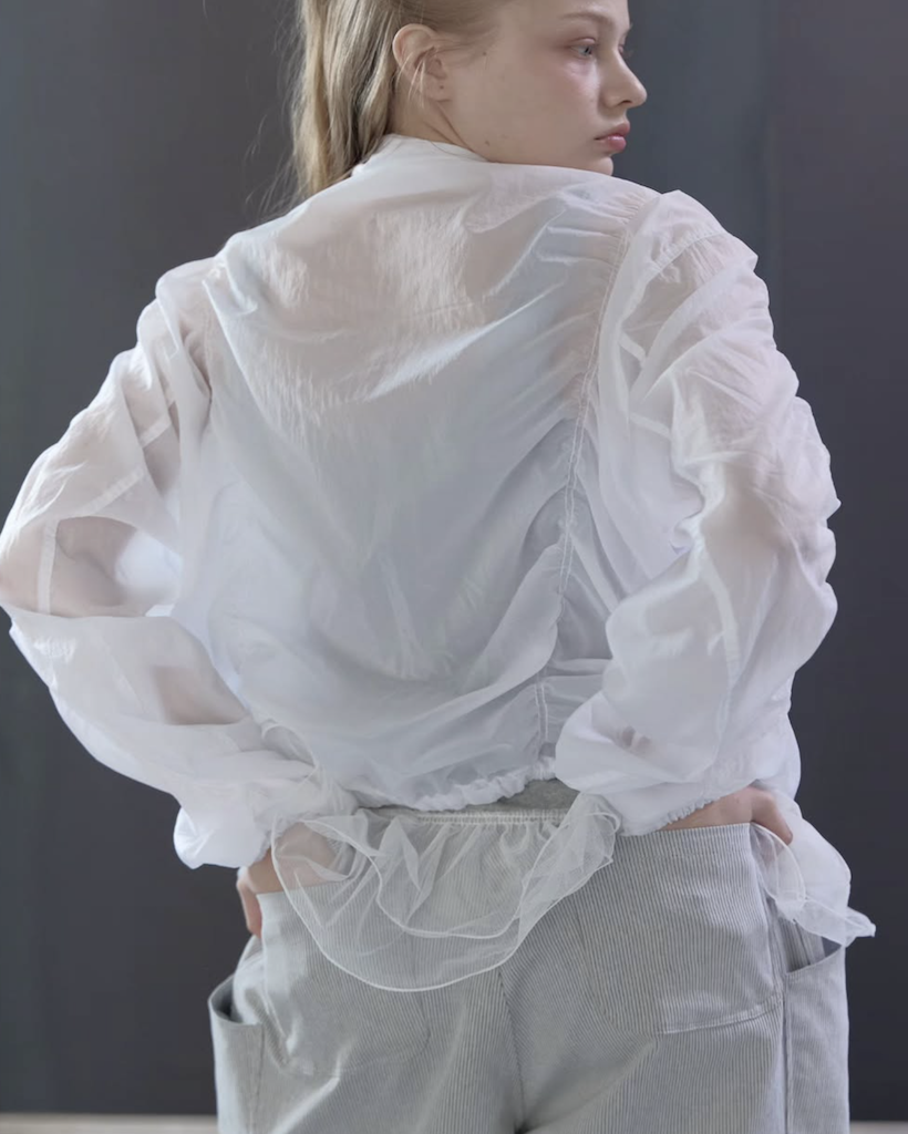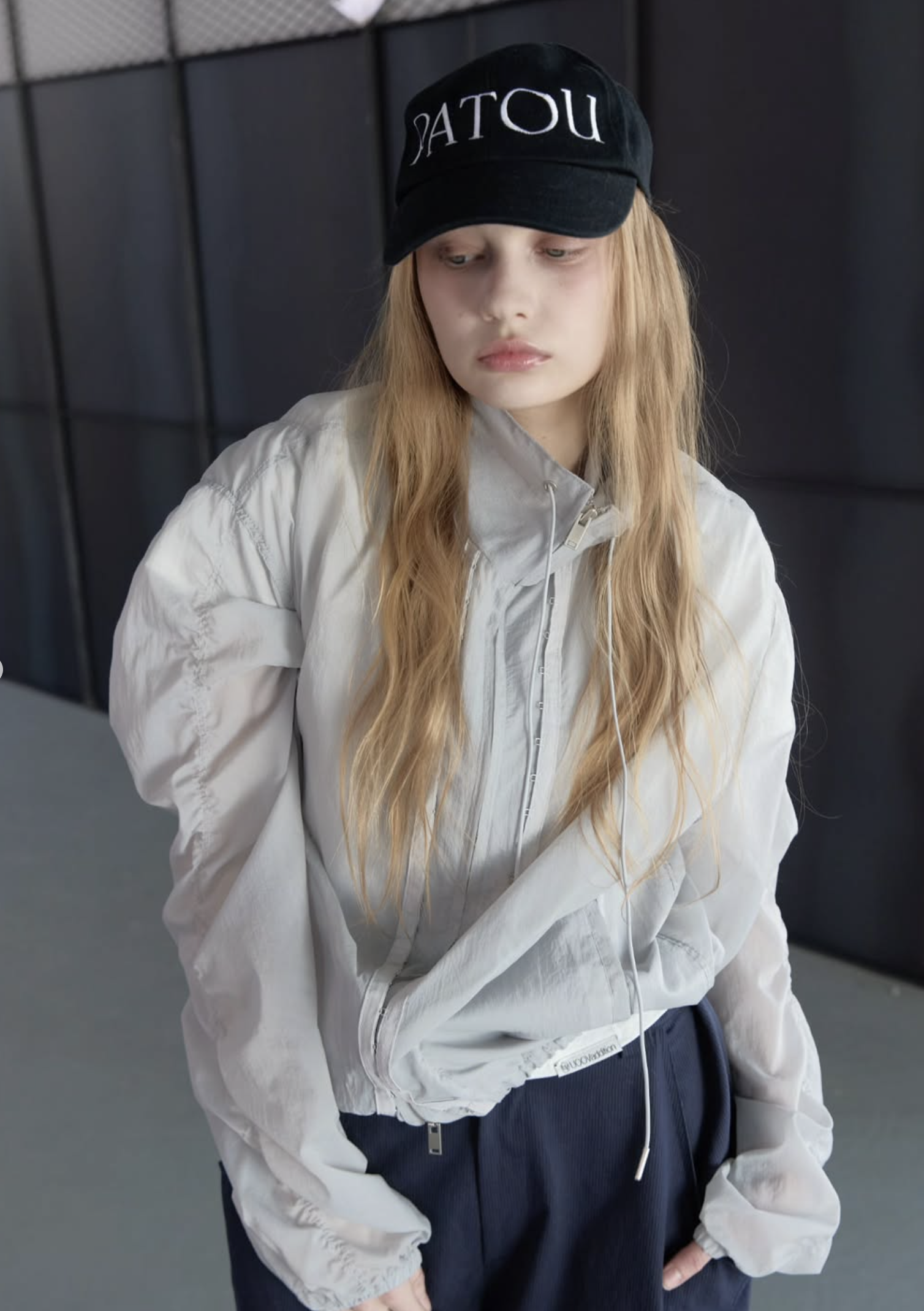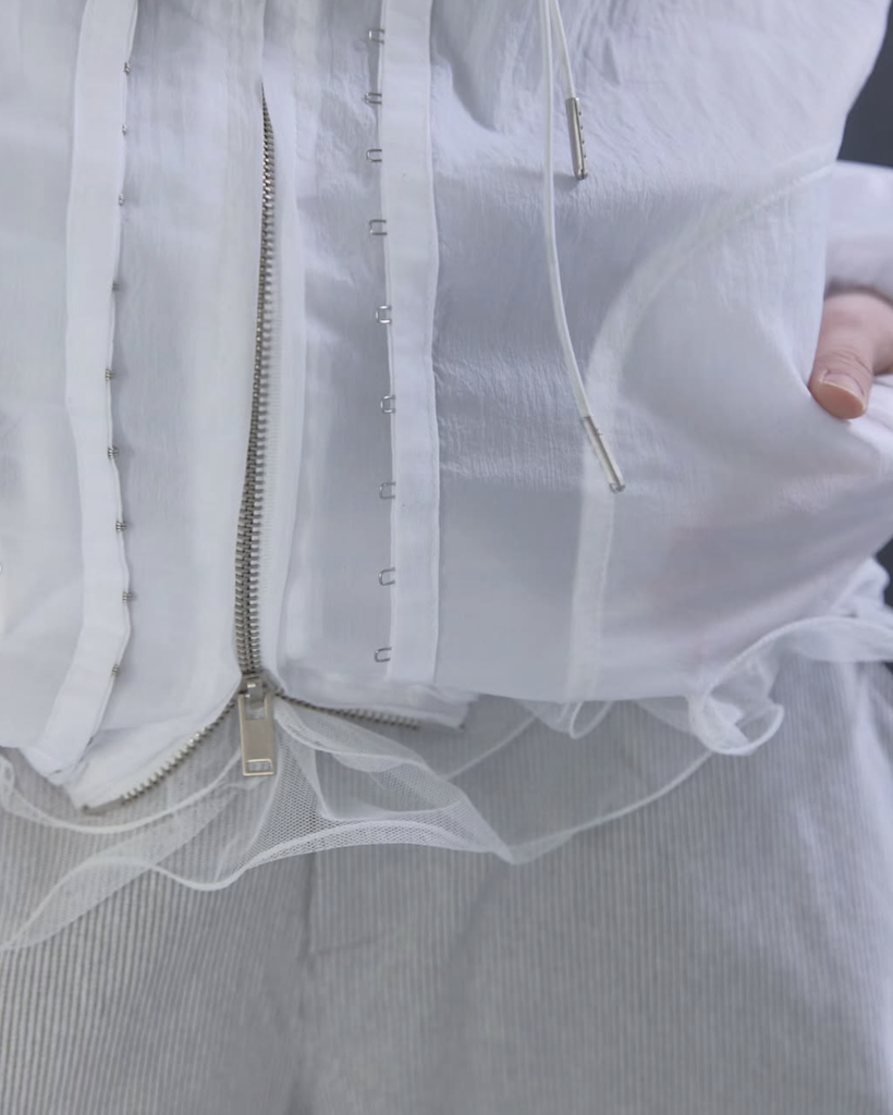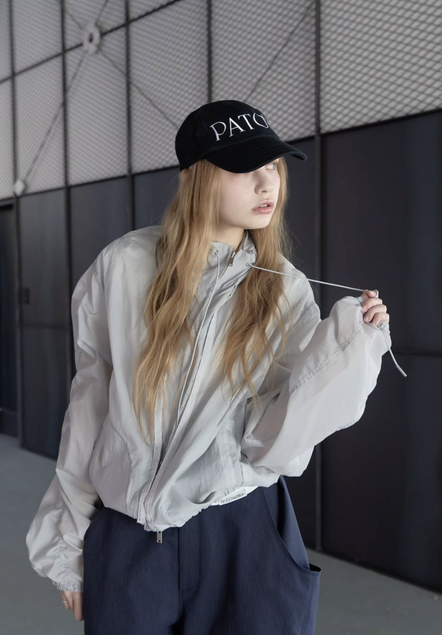 首元にはアイレットとチップ付きのドローストリングを配し、スポーティーながらも高級感のあるアクセントをプラス。季節を問わず、冷房対策やレイヤードアイテムとして長く愛用いただける、デザイン性と実用性を兼ね備えた万능アイテムです。