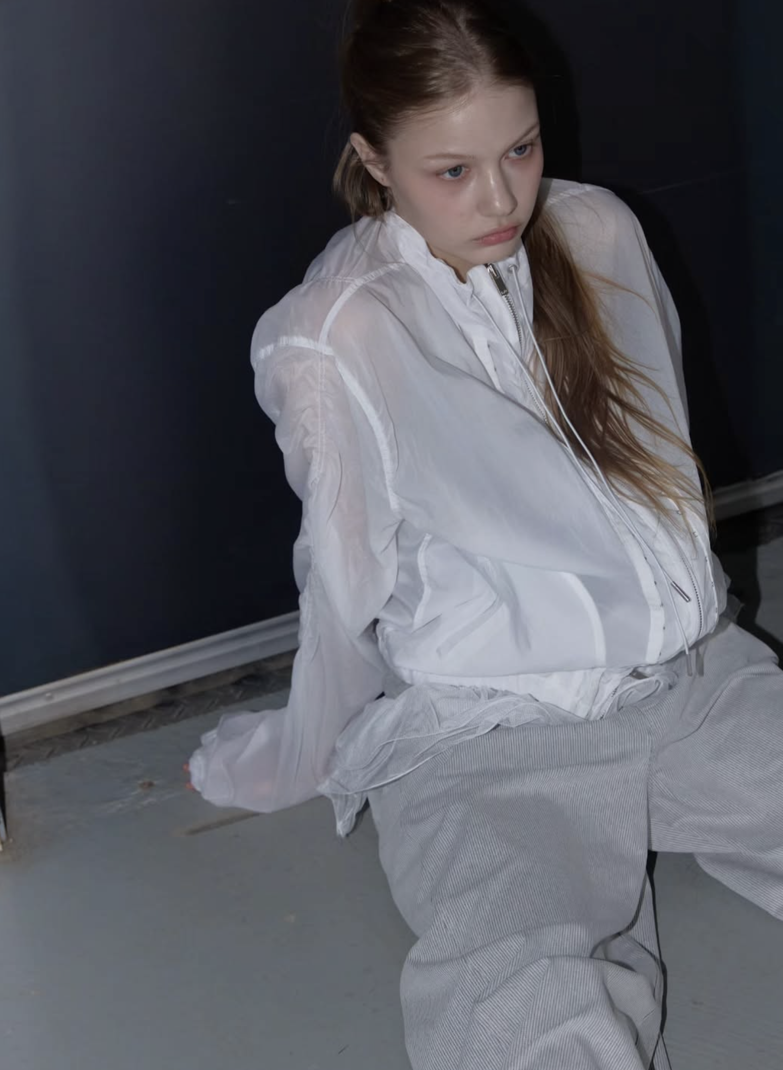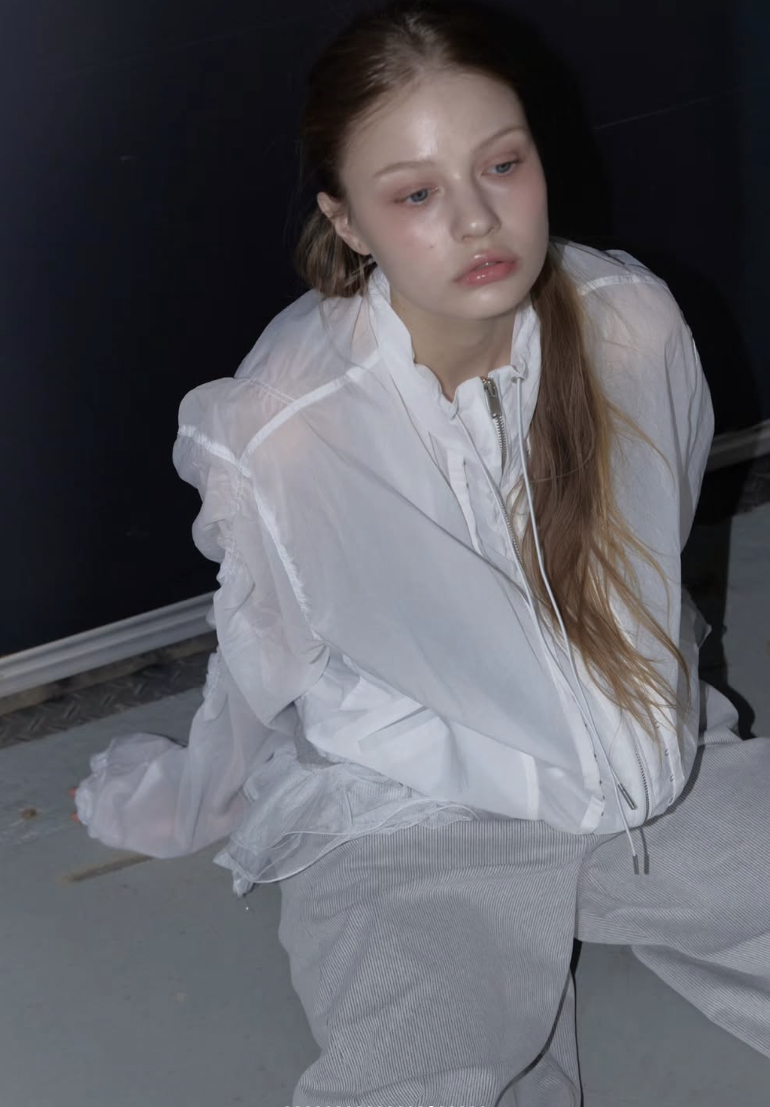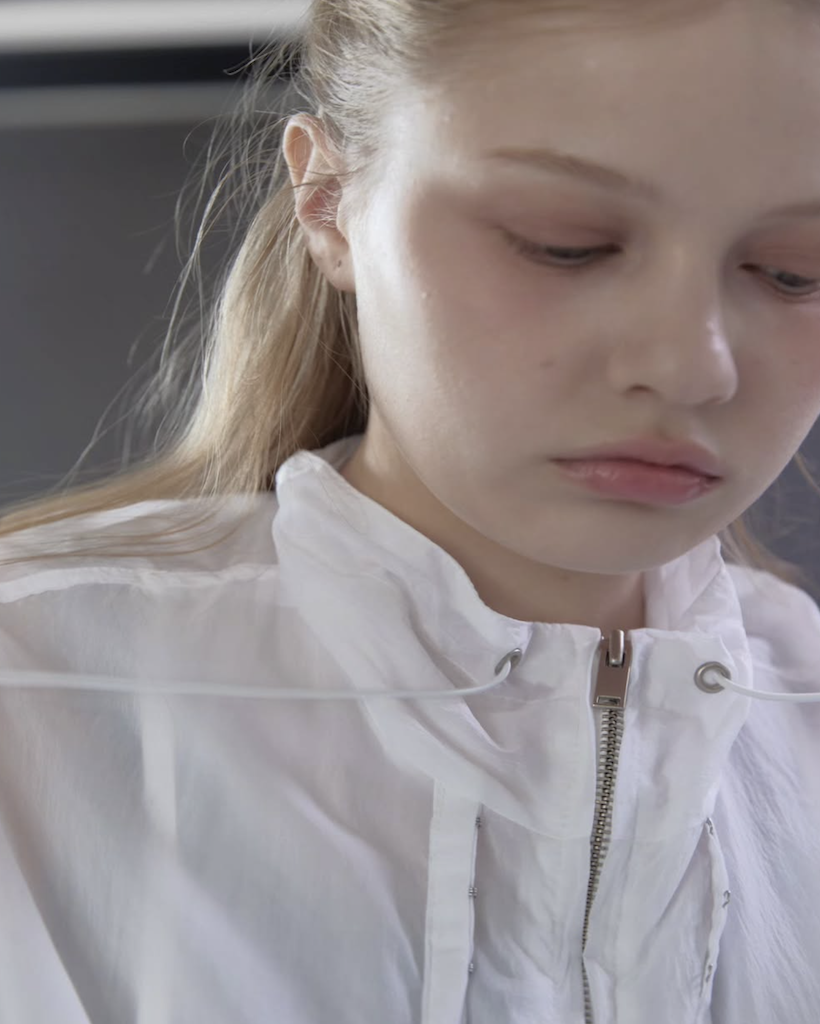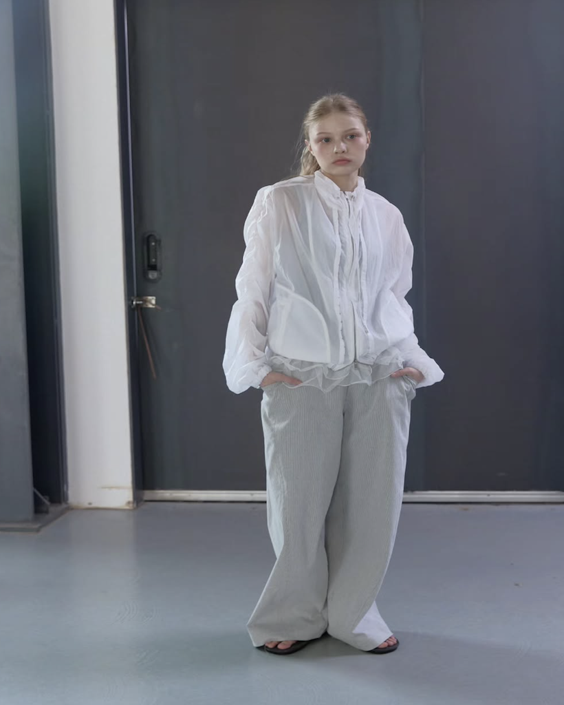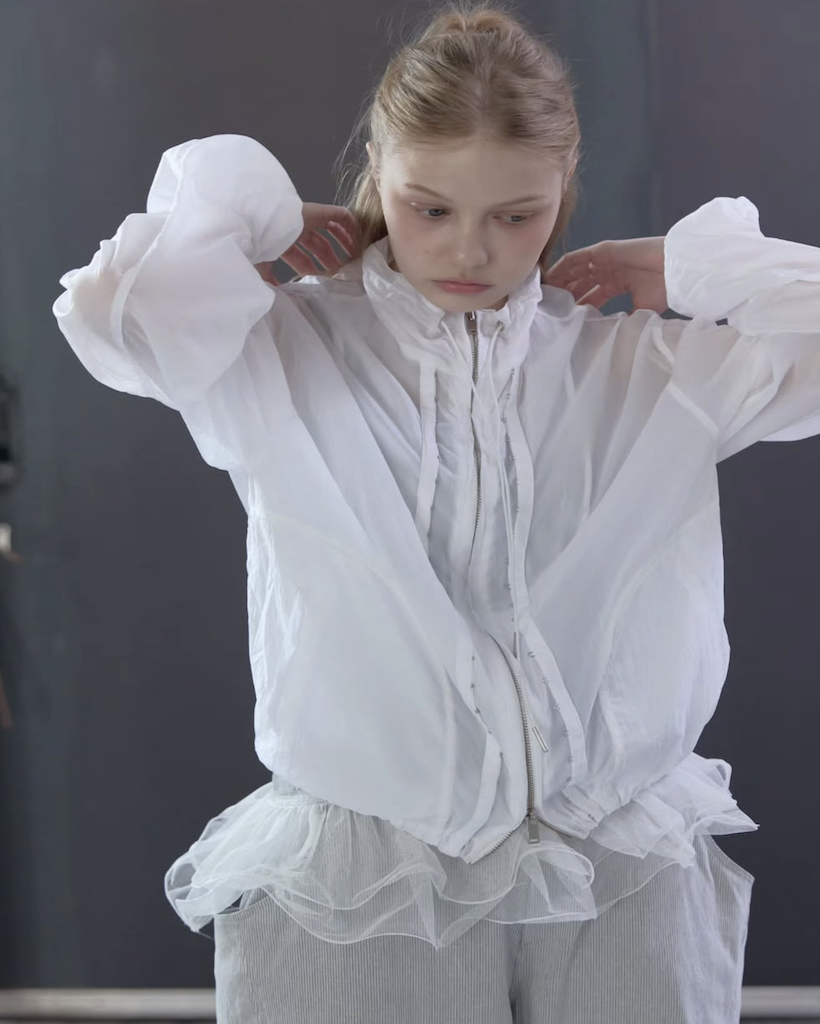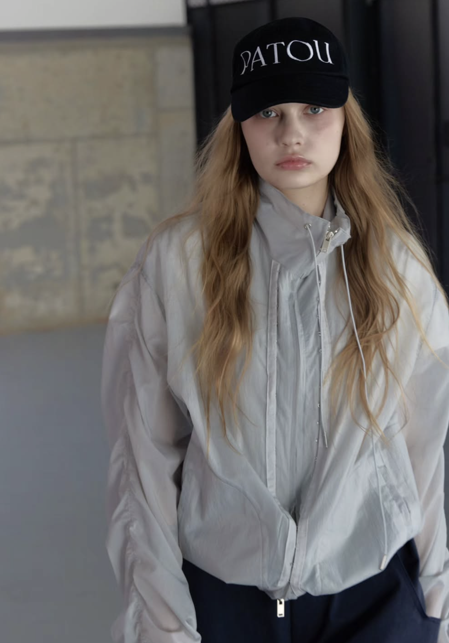 首元にはアイレットとチップ付きのドローストリングを配し、スポーティーながらも高級感のあるアクセントをプラス。季節を問わず、冷房対策やレイヤードアイテムとして長く愛用いただける、デザイン性と実用性を兼ね備えた万능アイテムです。