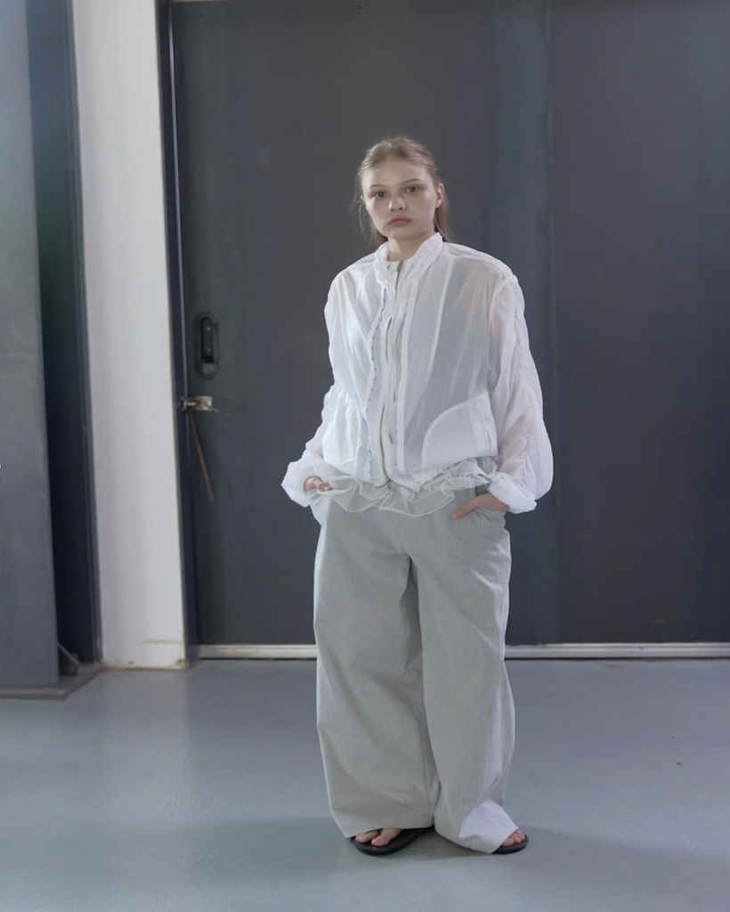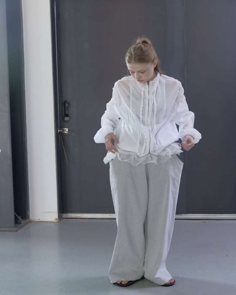 上下の開け具合を調節したり、フックだけを留めてニュアンスを変えたりと、その日の気分に合わせて多彩なスタイリングが楽しめます。
