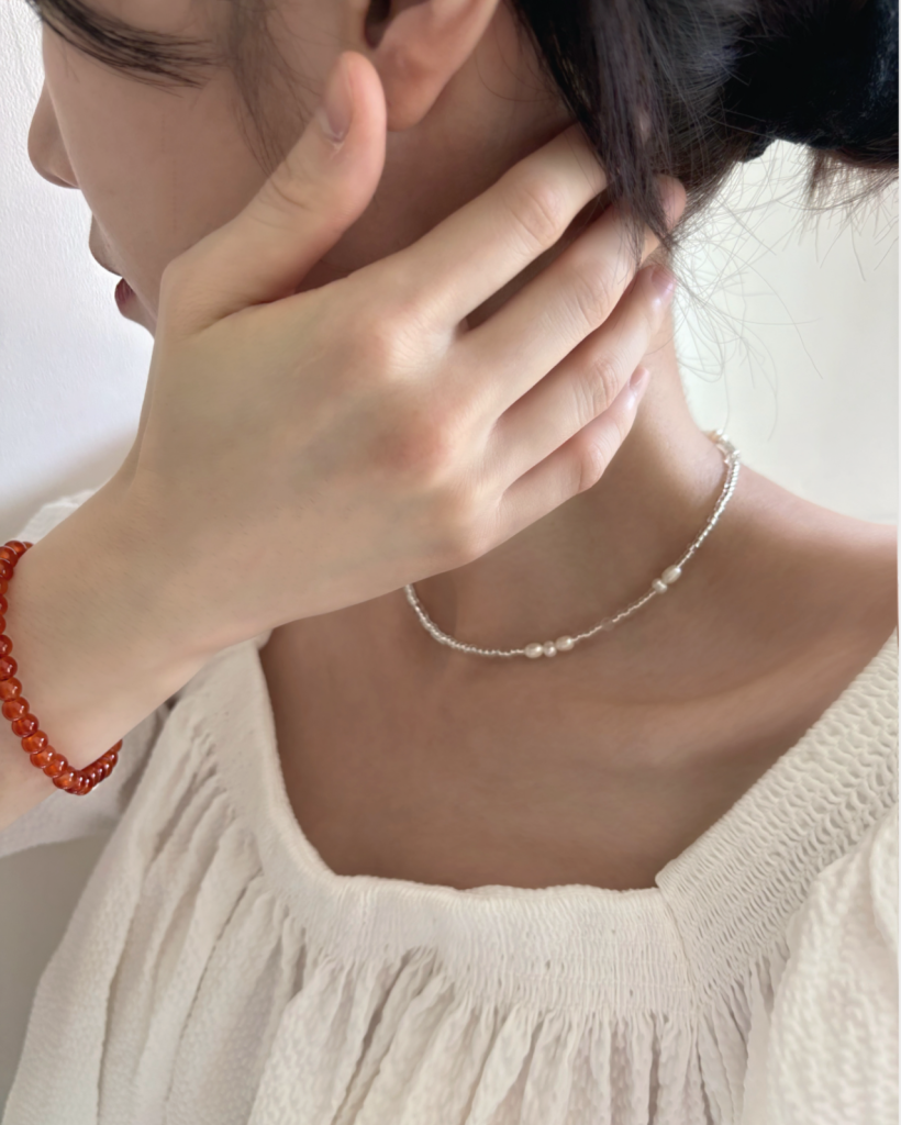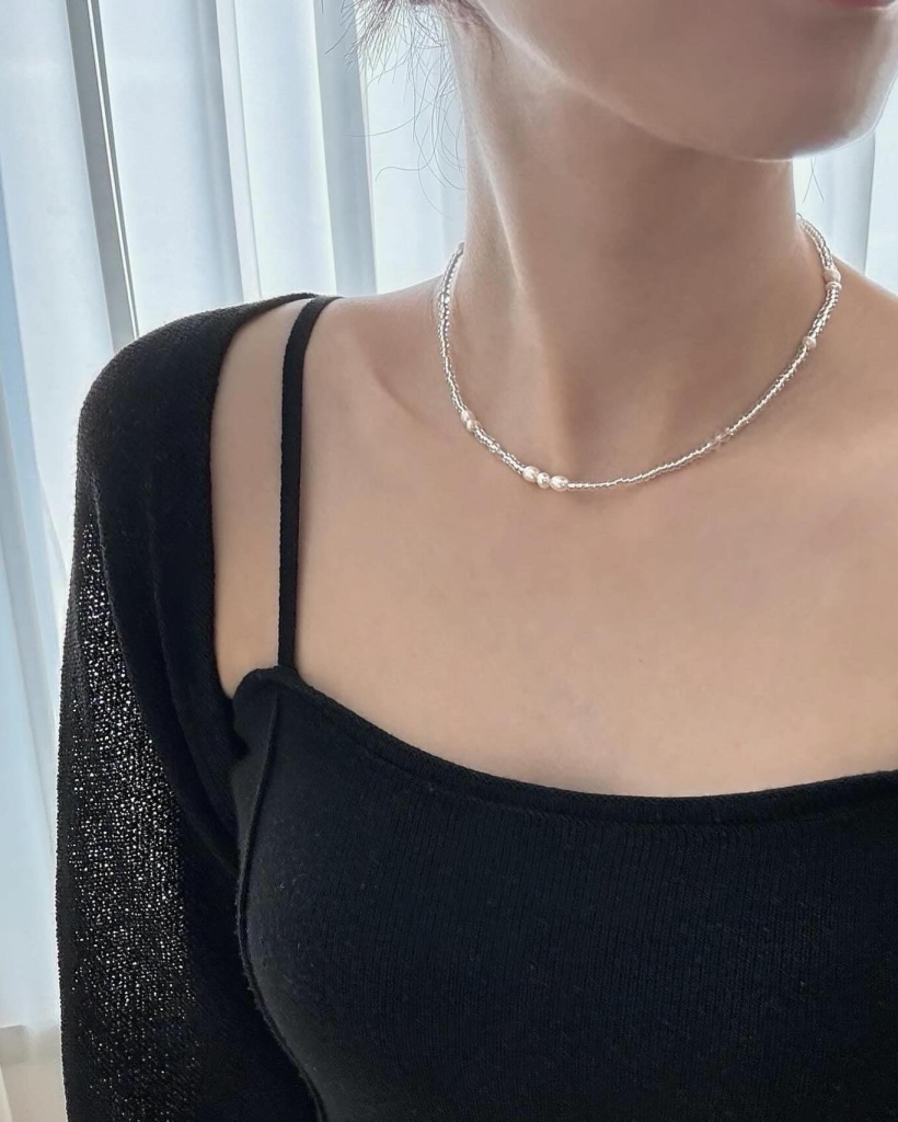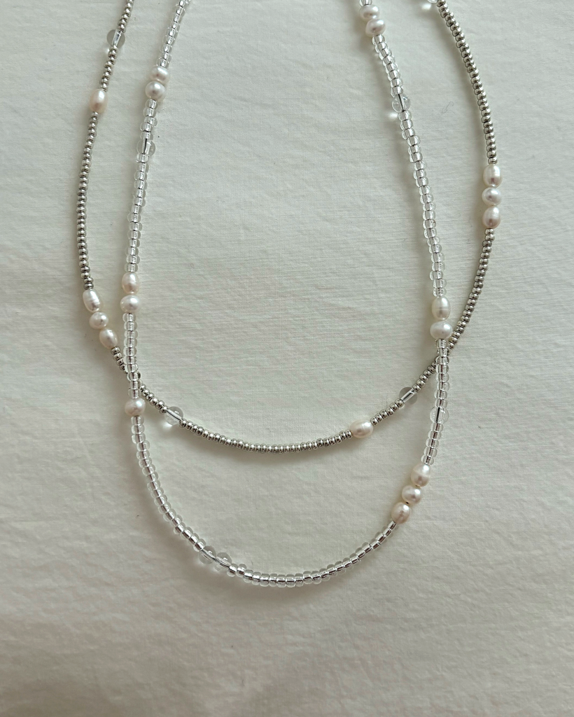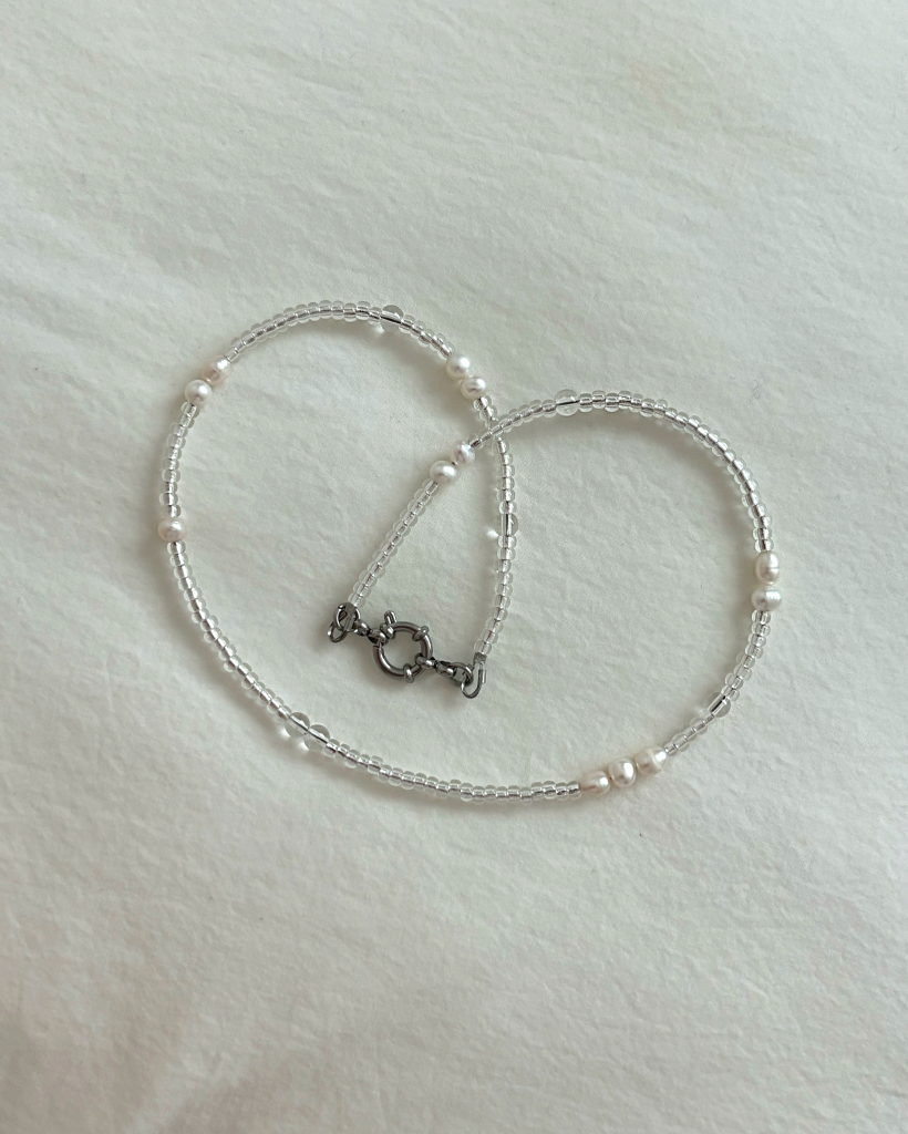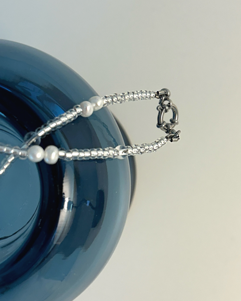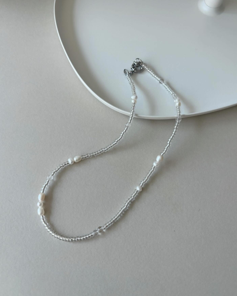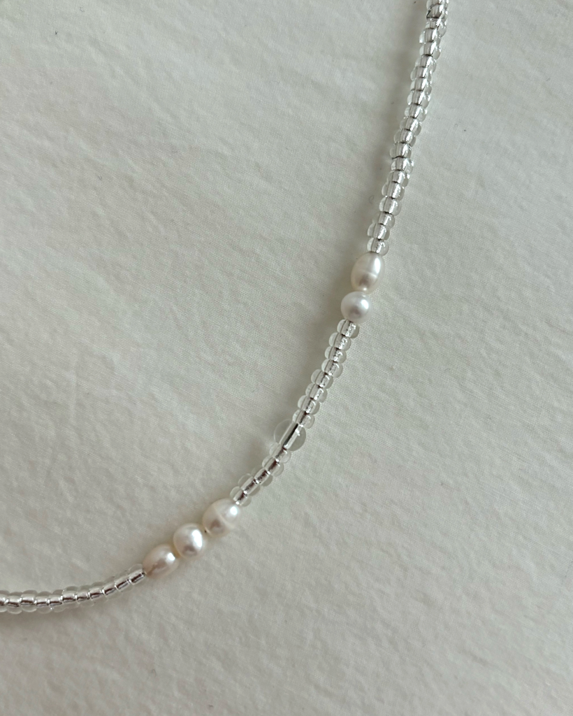 freshwater pearl, miyuki beads, natural rock crystal, surgical steel