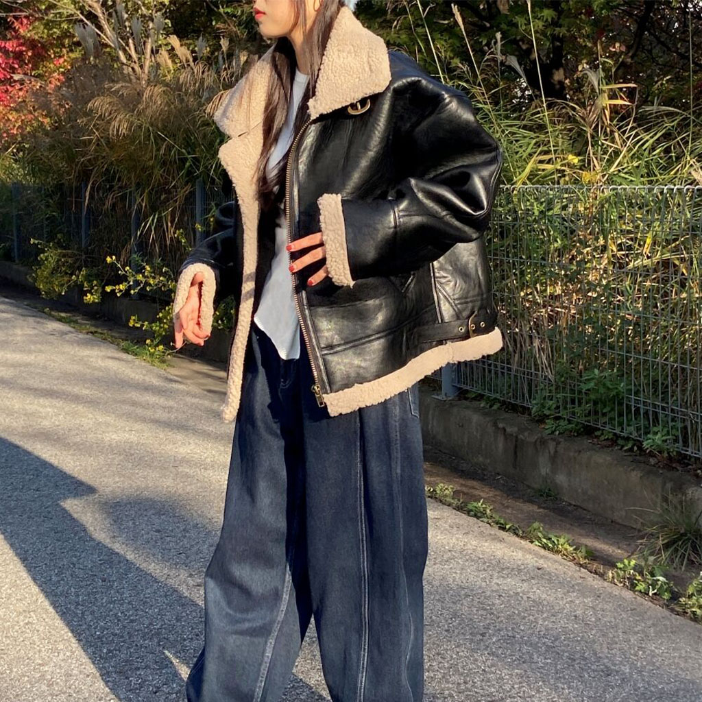 ハイネックカラーボアムートンジャケット2color