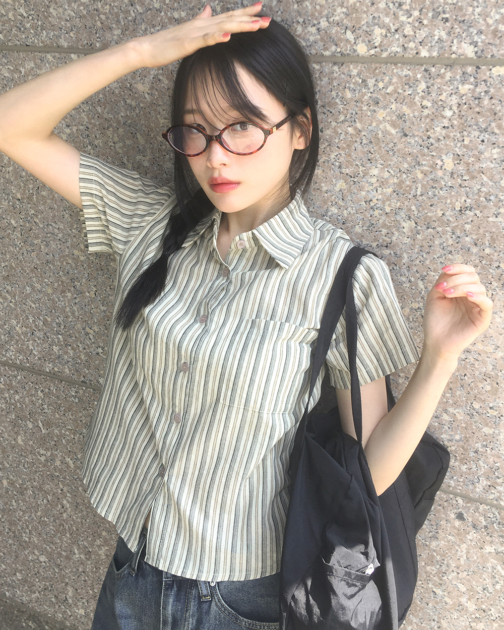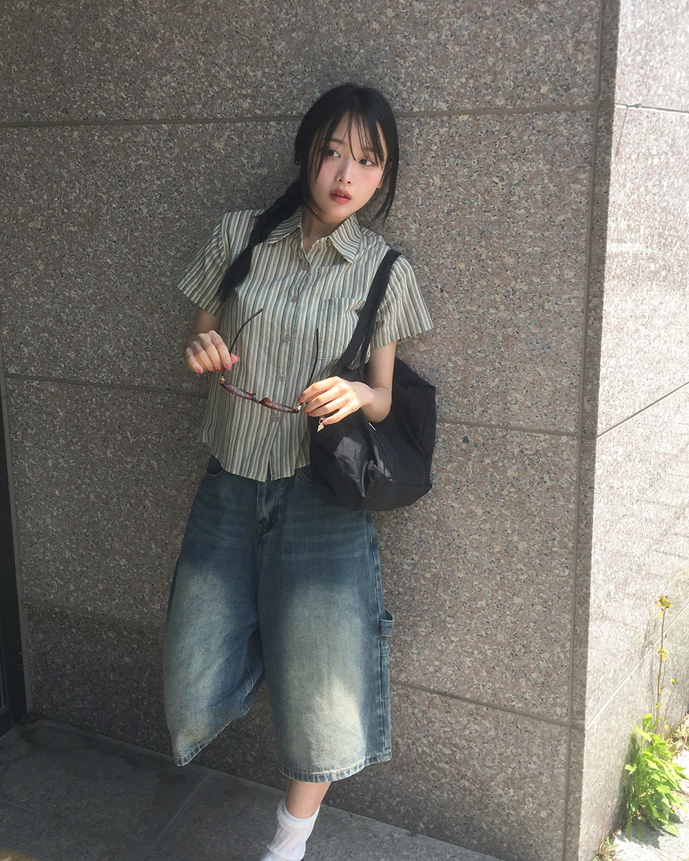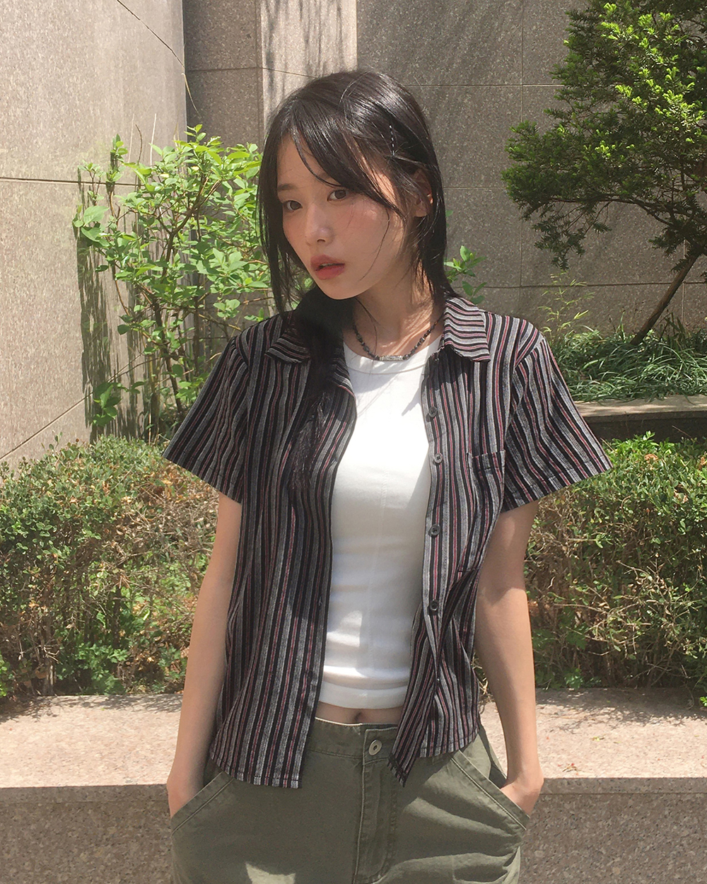 [original]ヴィンテージストライプ ボーダー半袖シャツ