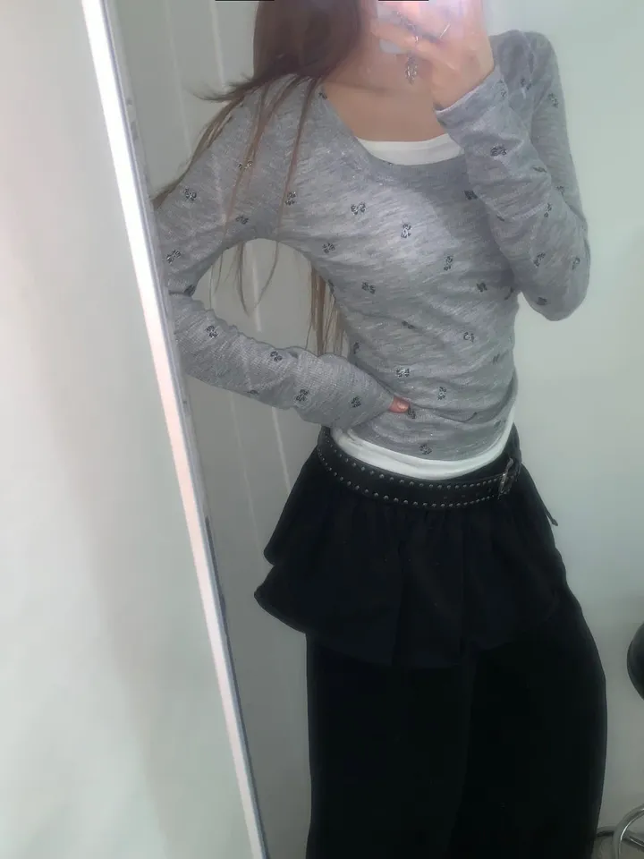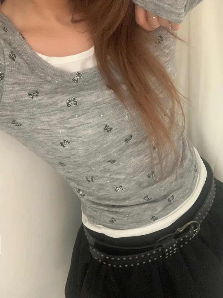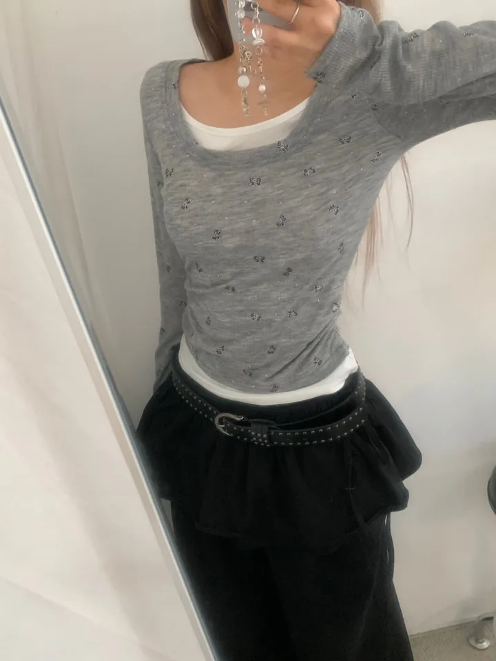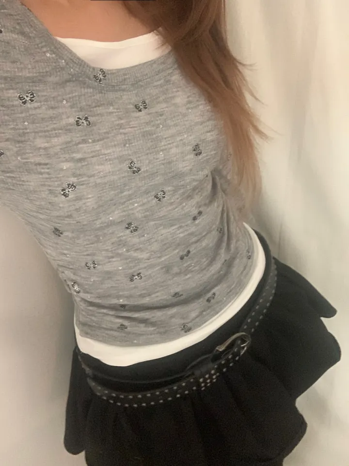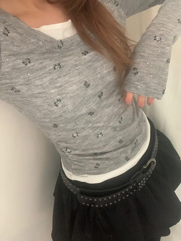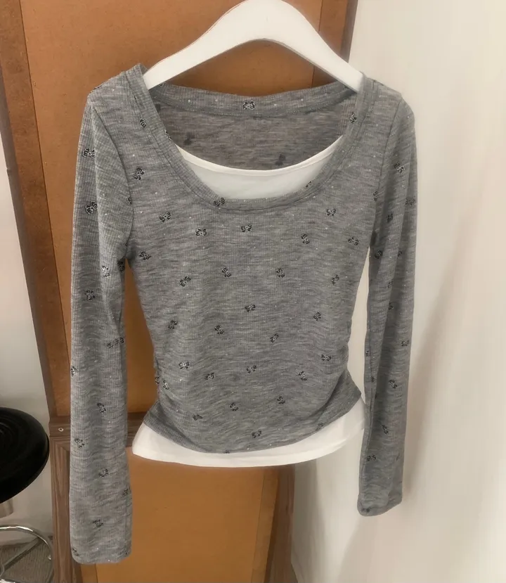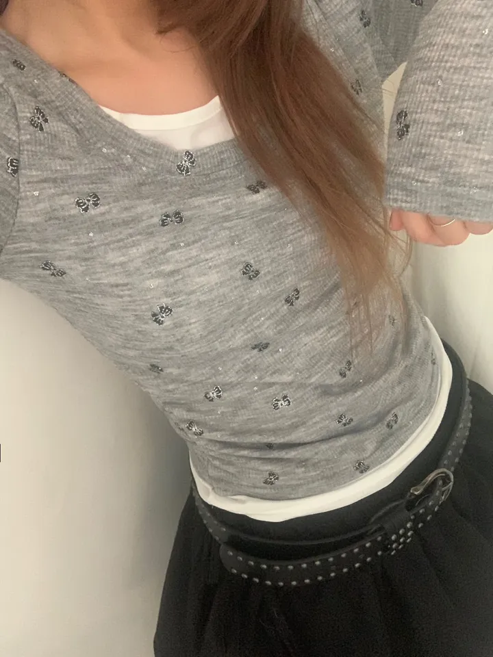 バタフライバイカラーラウンドTシャツ