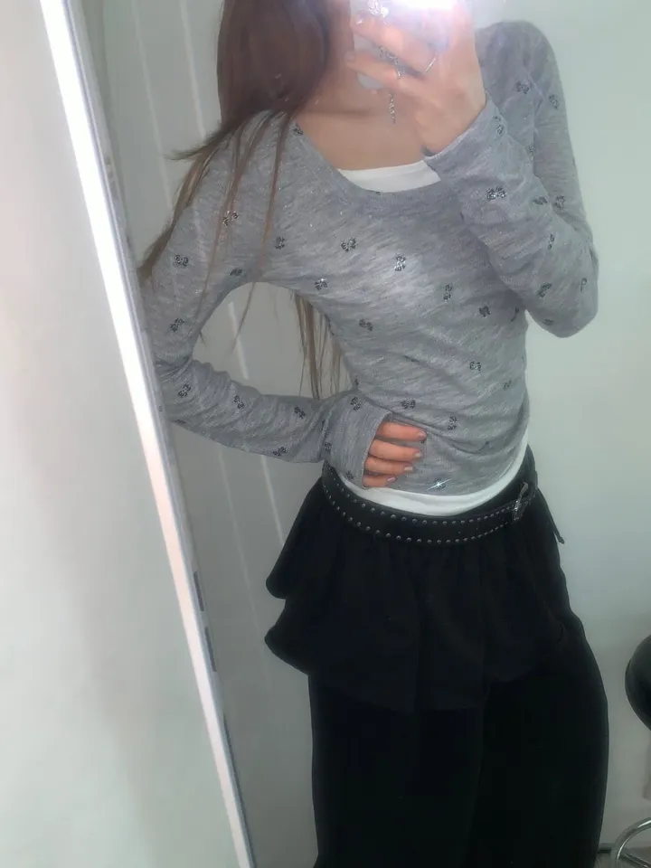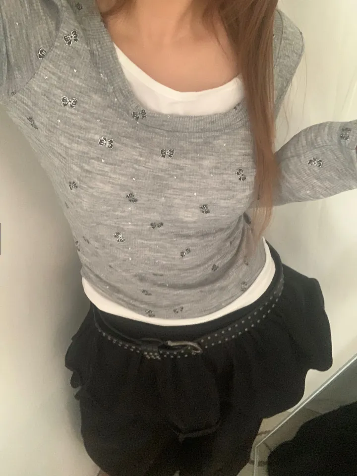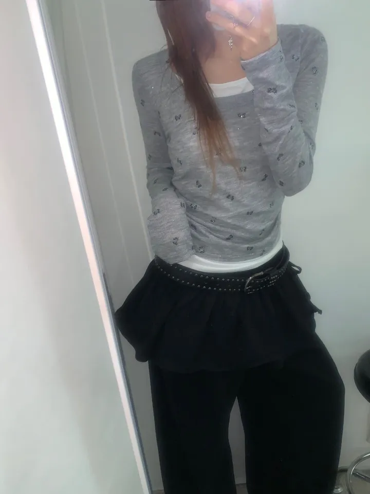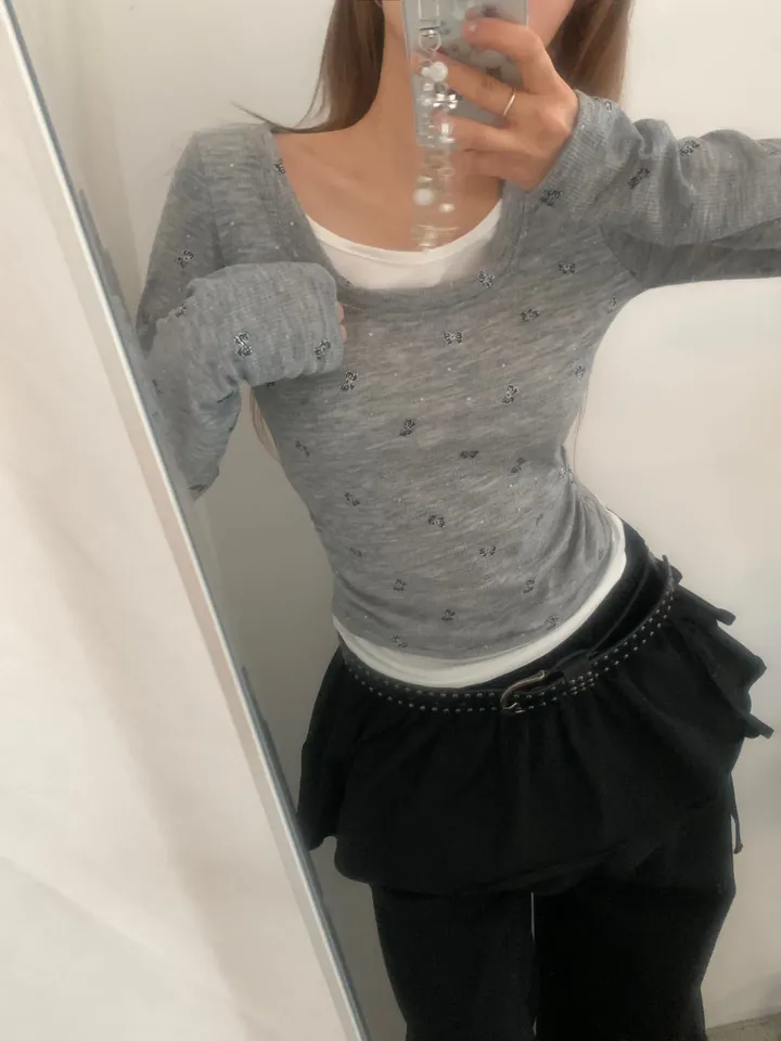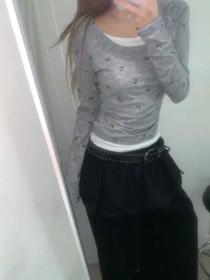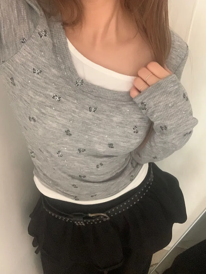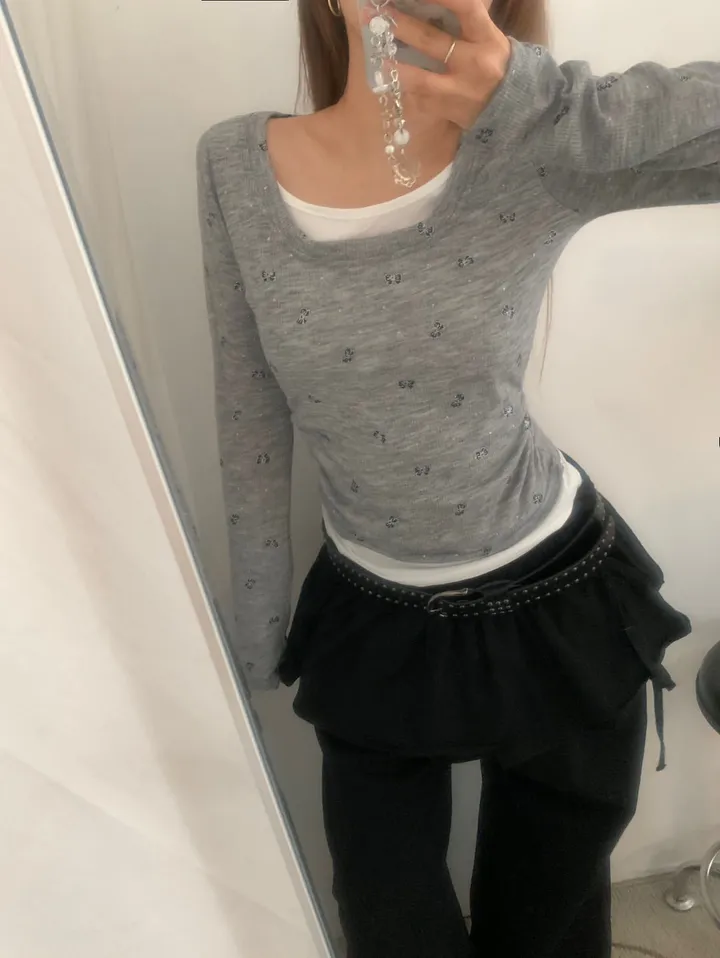 バタフライバイカラーラウンドTシャツ