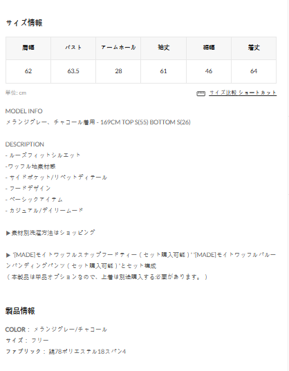 CHARCOAL 169CM TOP S(55) BOTTOM S(26)