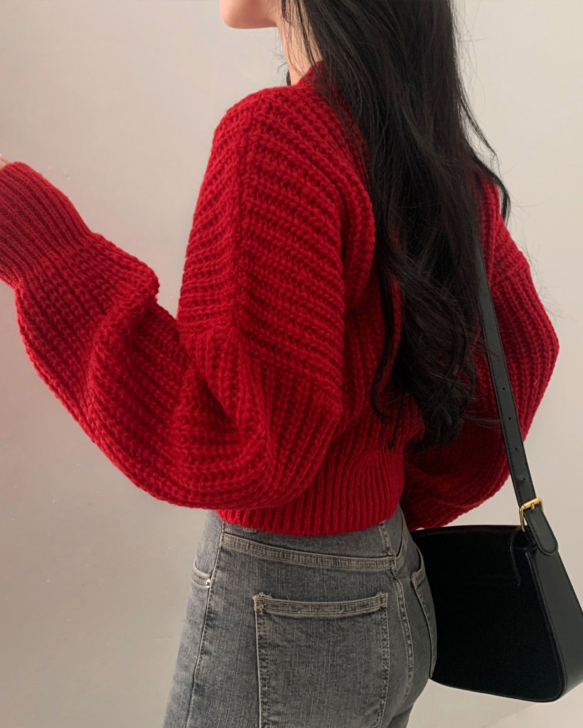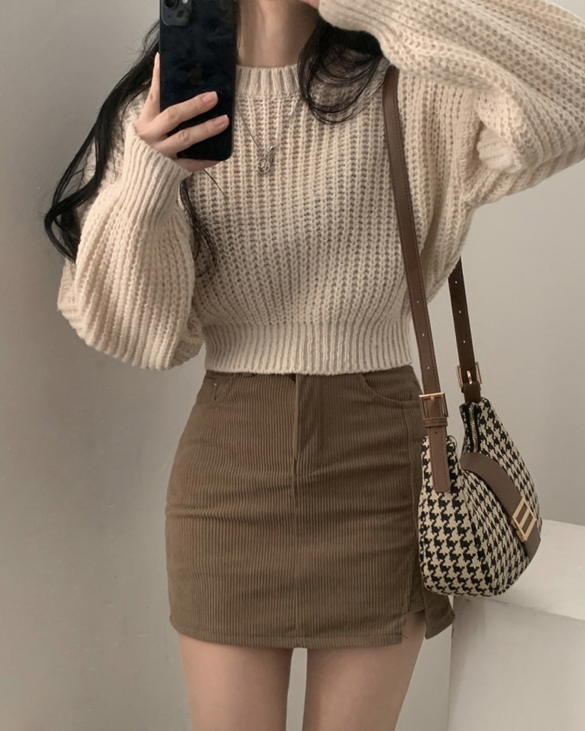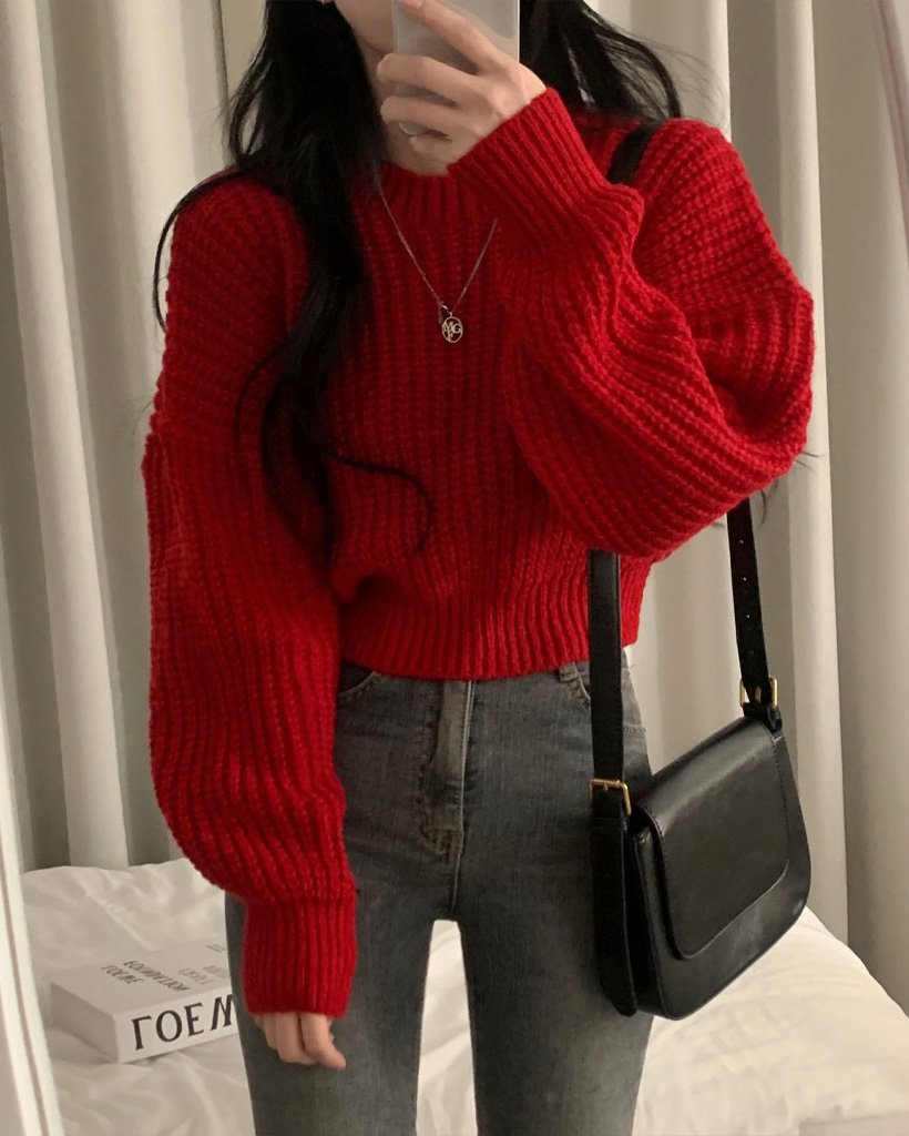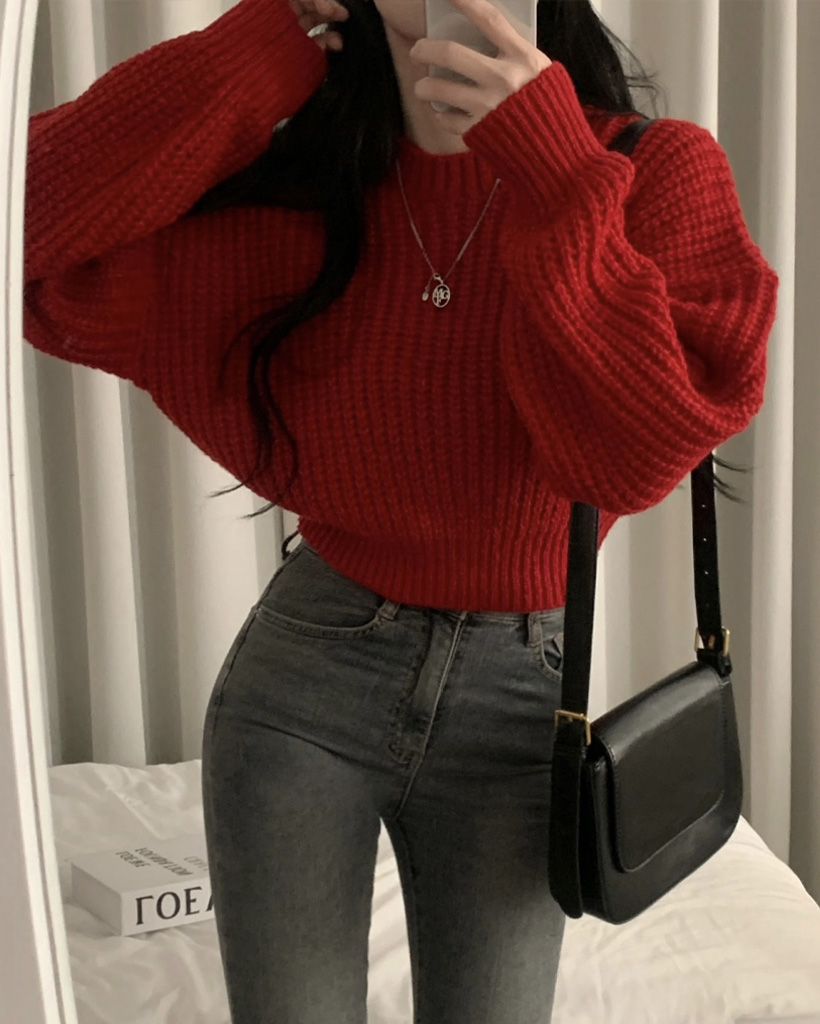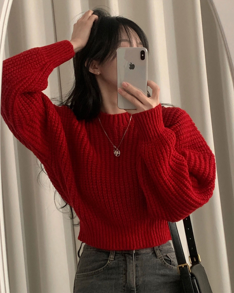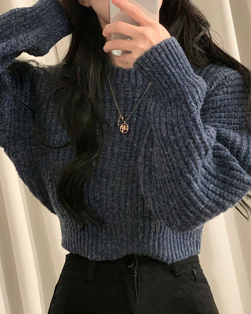 [8color] [脚長効果] ミックスカラー 畦編み クロップドニット