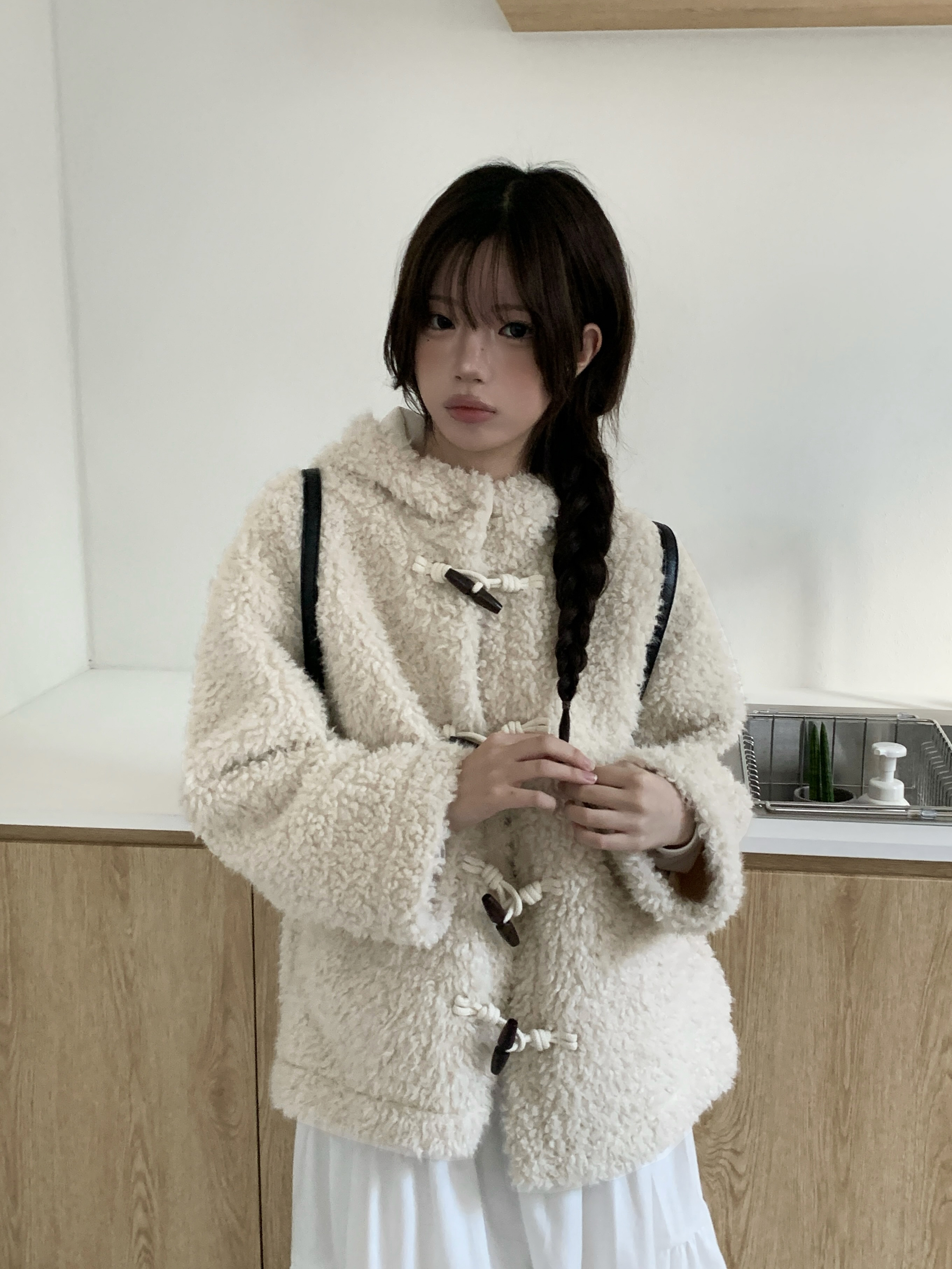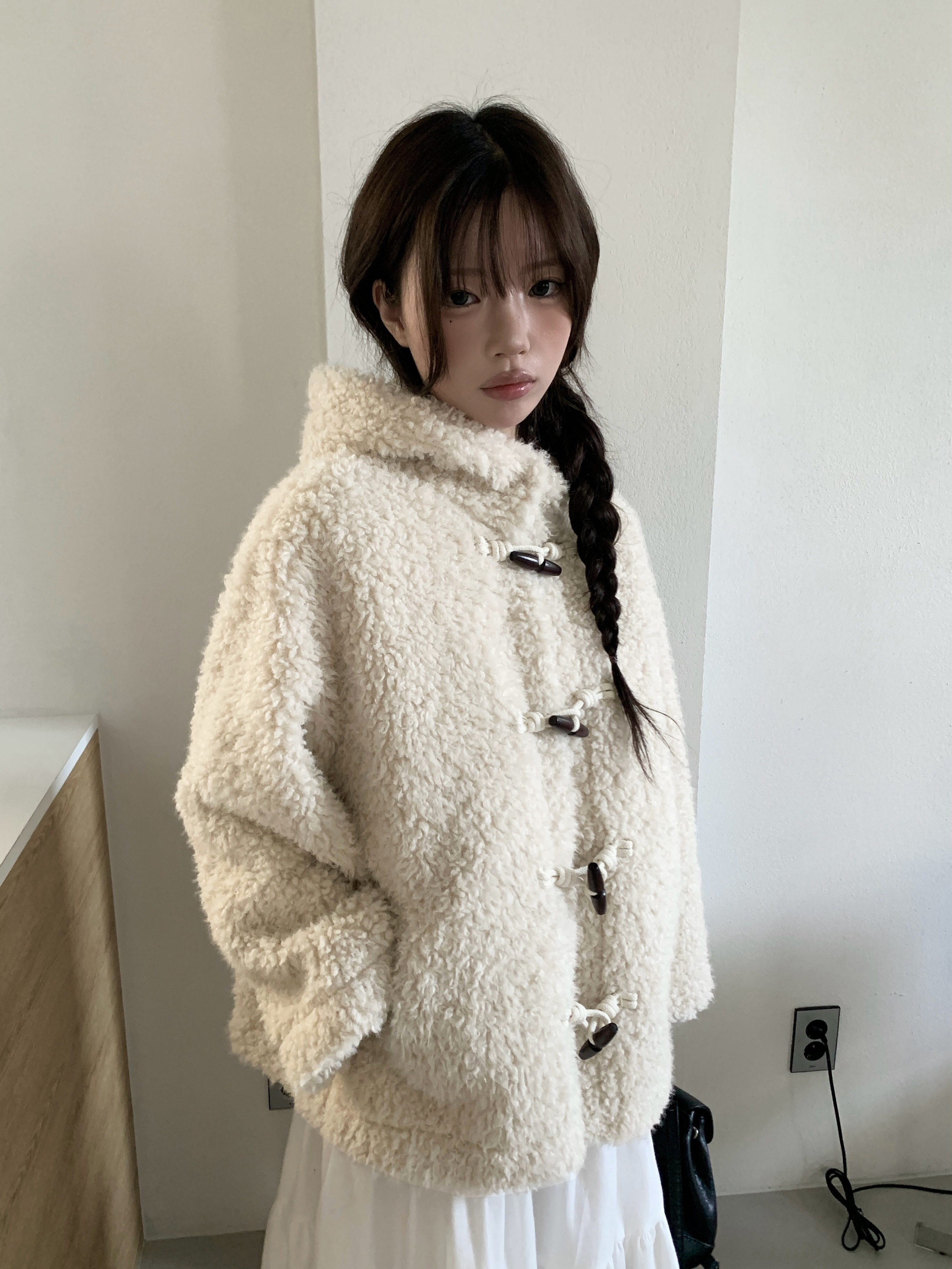 フェイクファーダッフルボタンフードジャケット