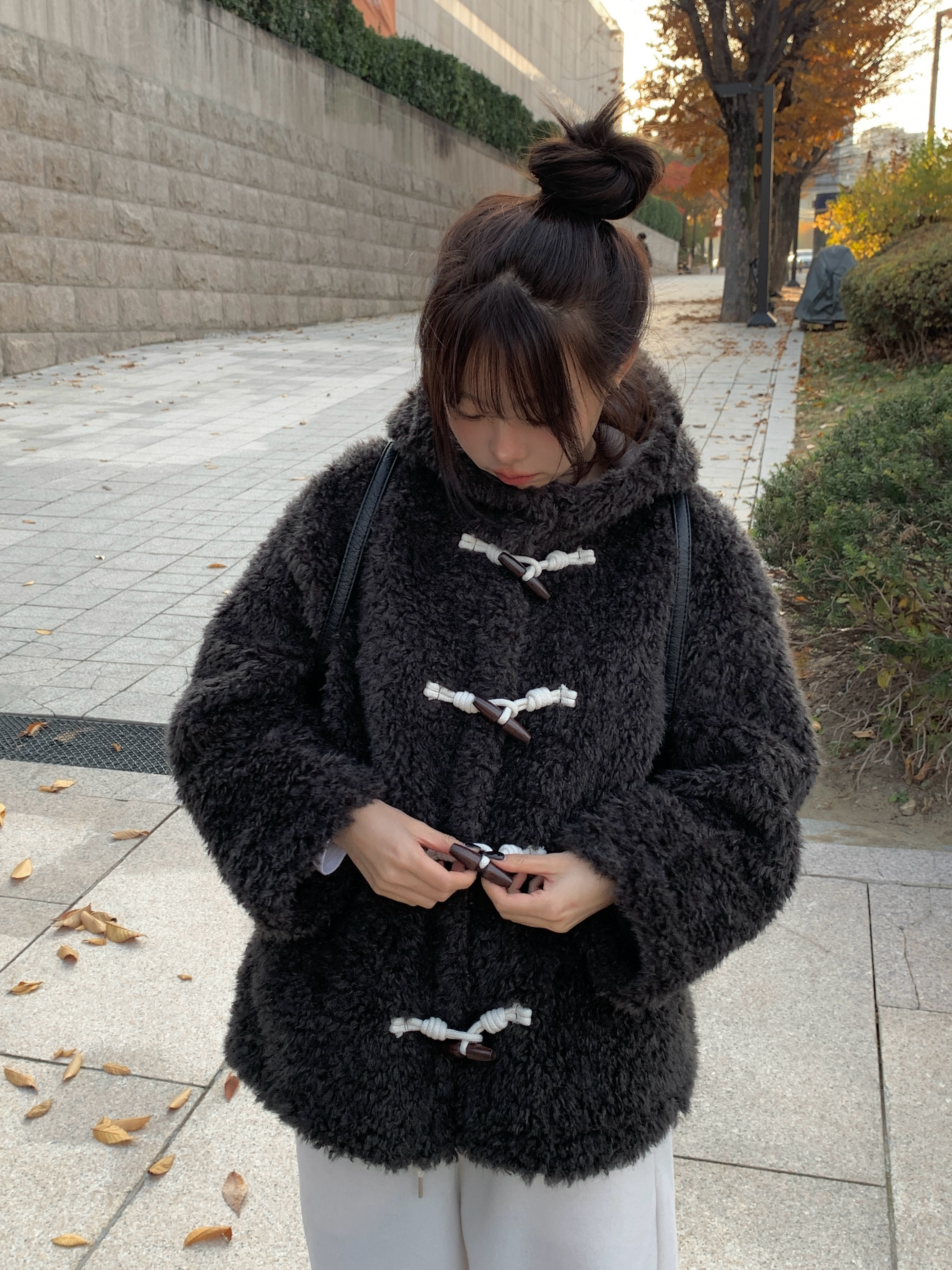 フェイクファーダッフルボタン
