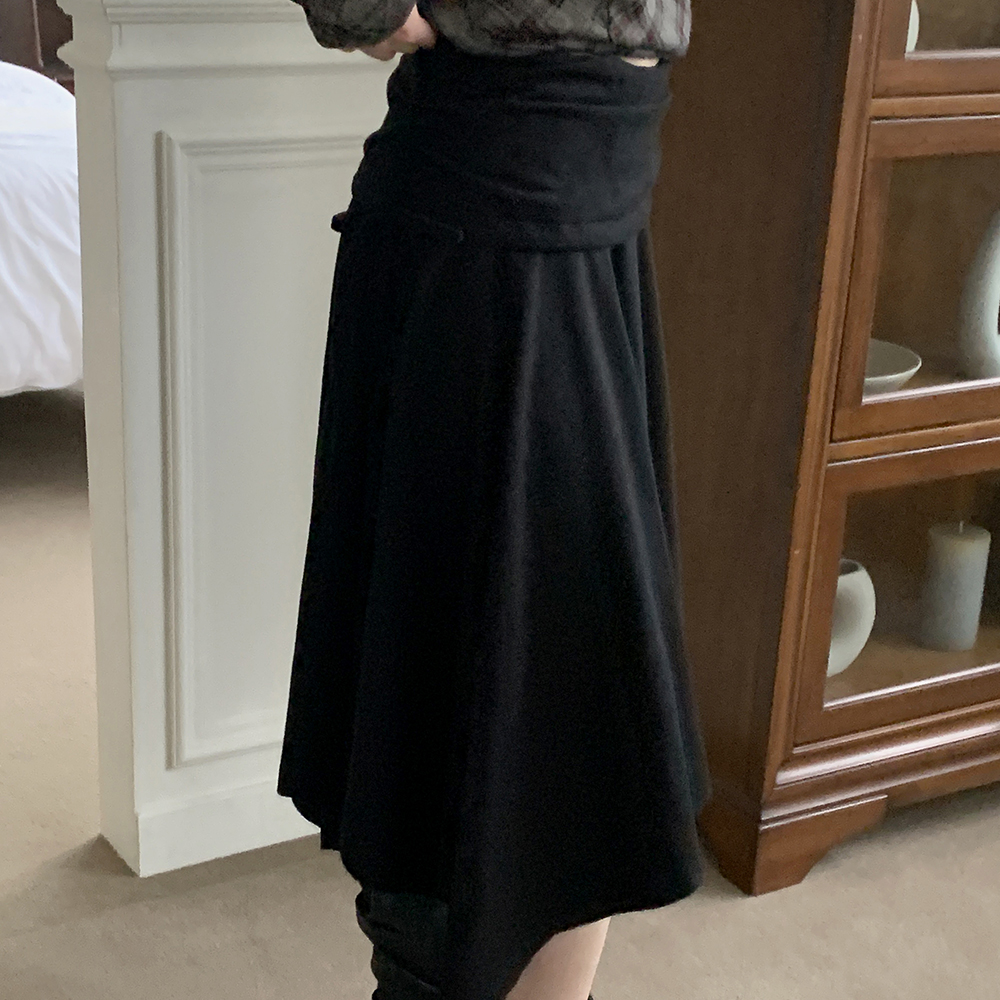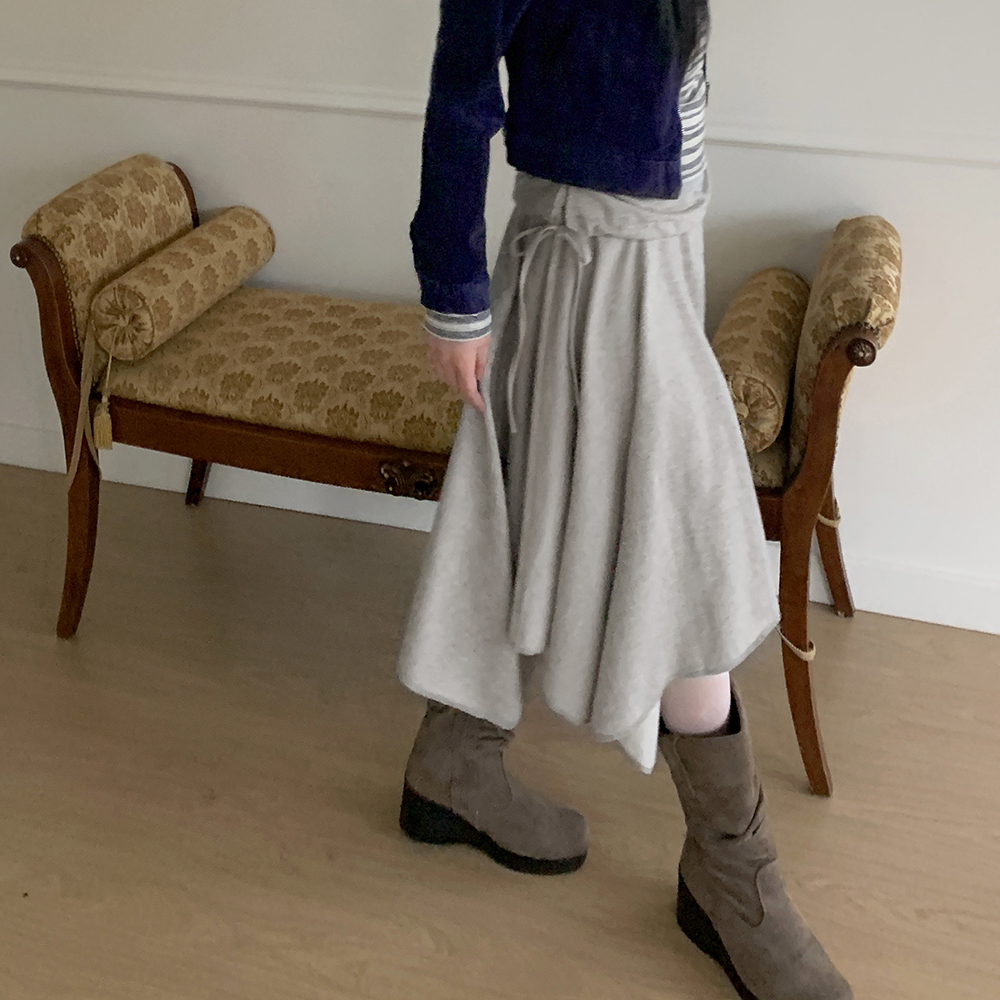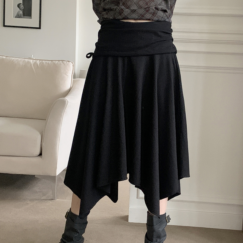 アシンメトリーフレアゴムミドル丈スカート