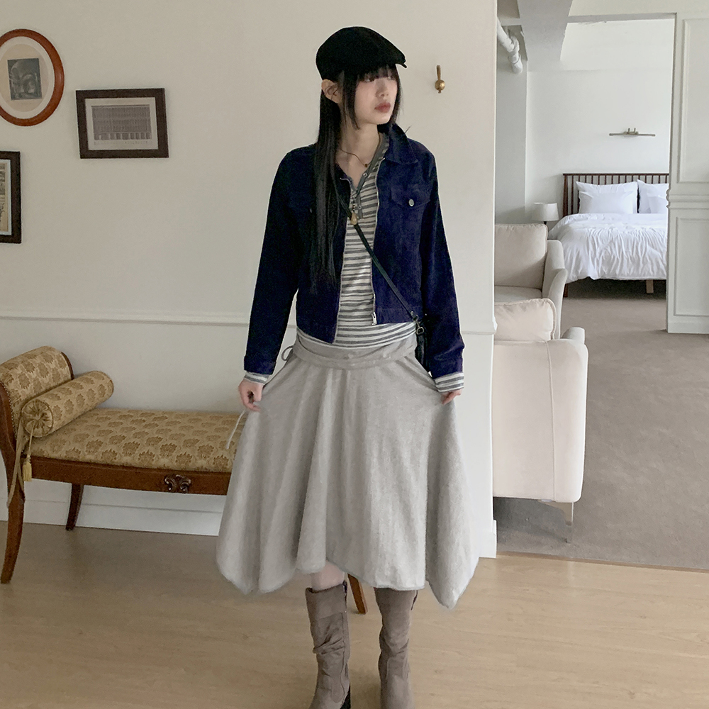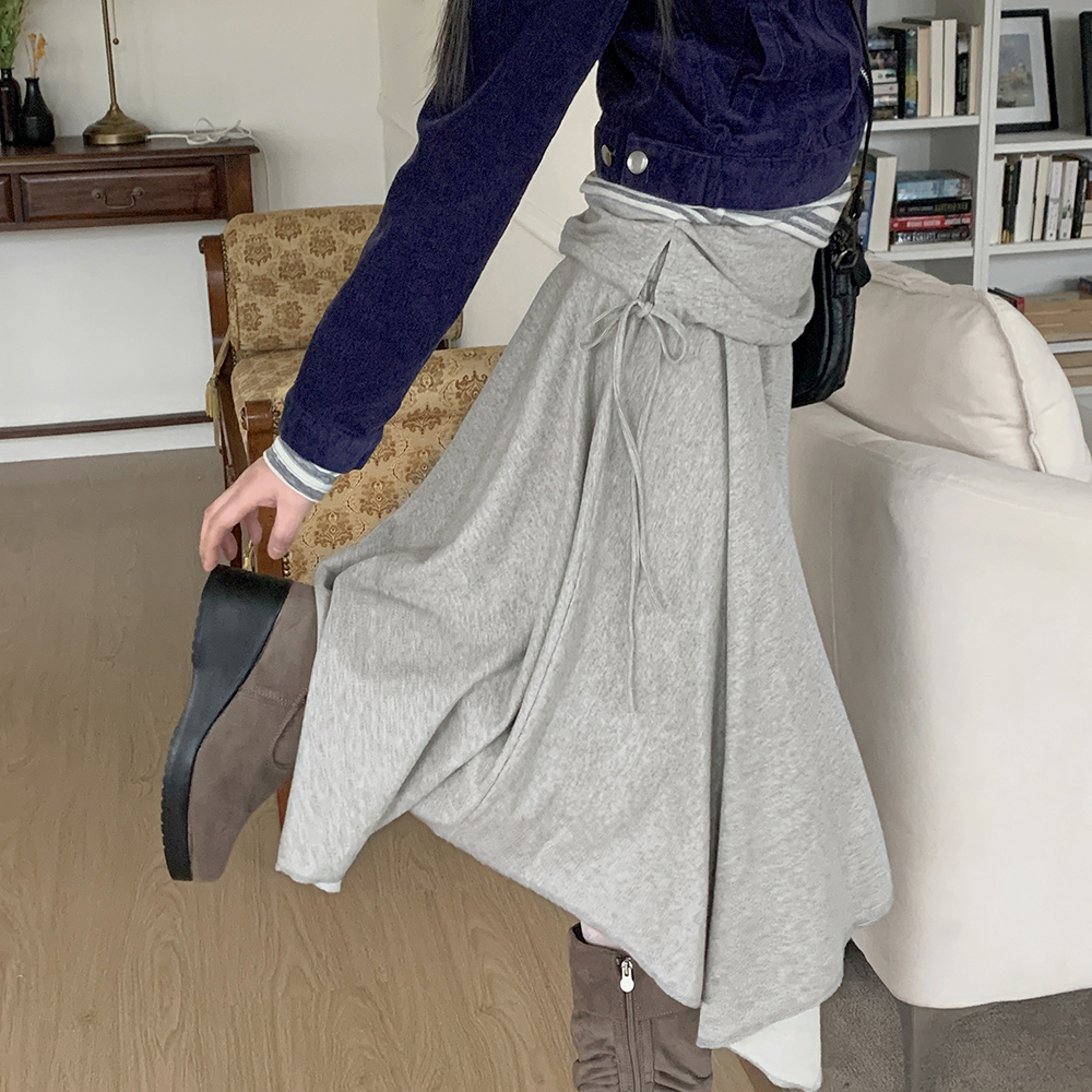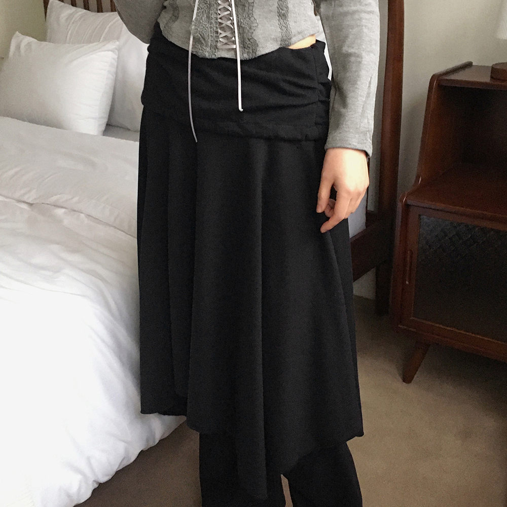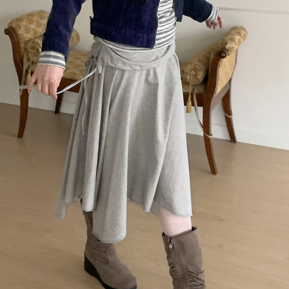 アシンメトリーフレアゴムミドル丈スカート