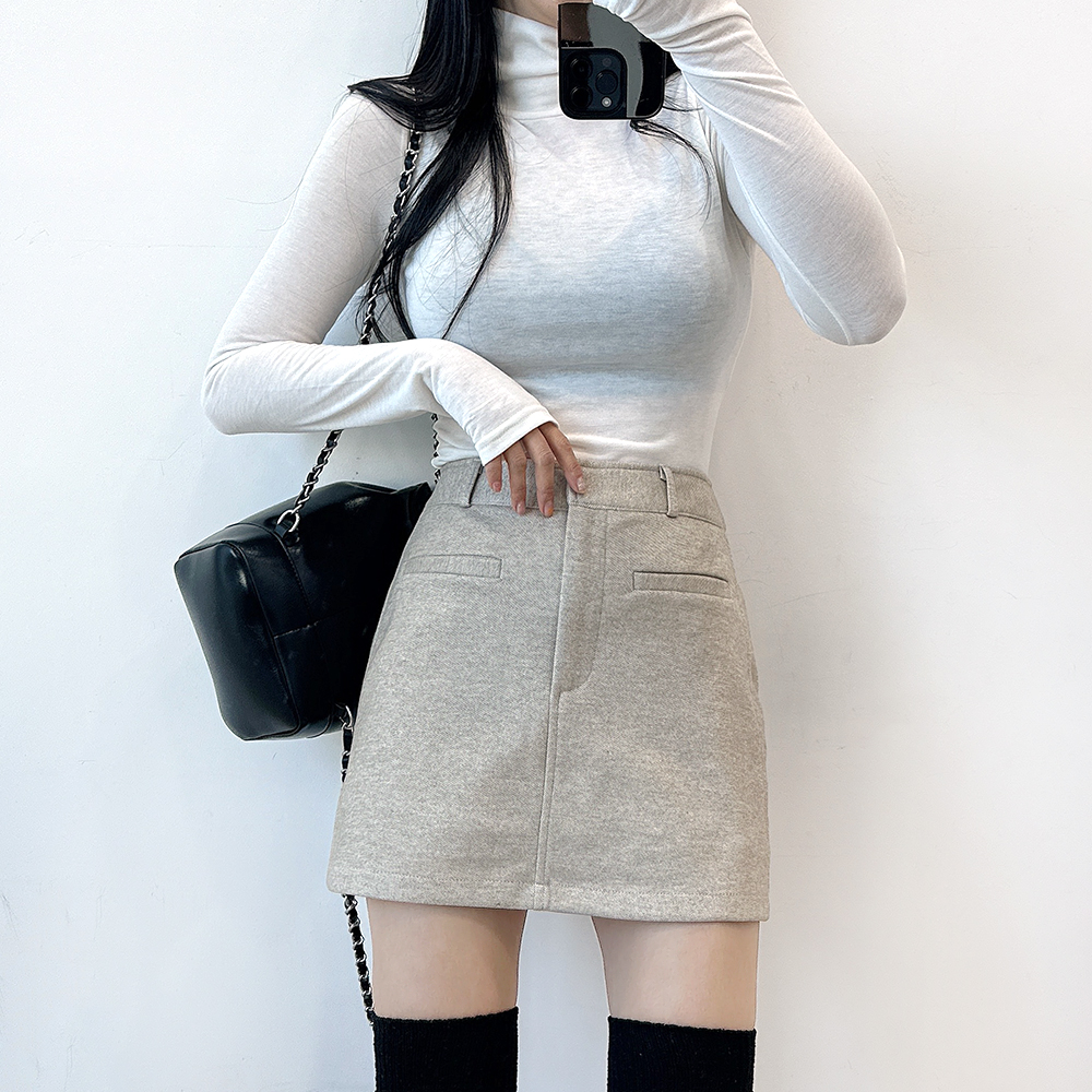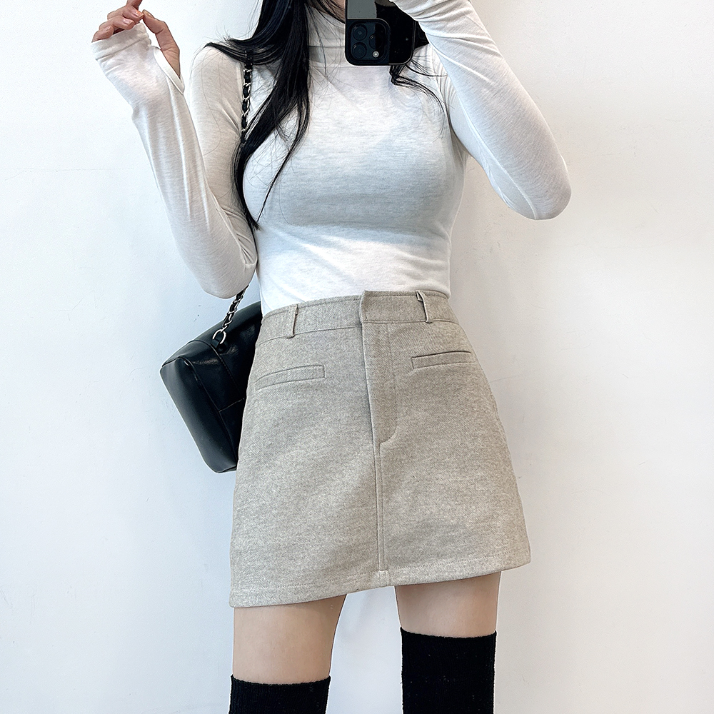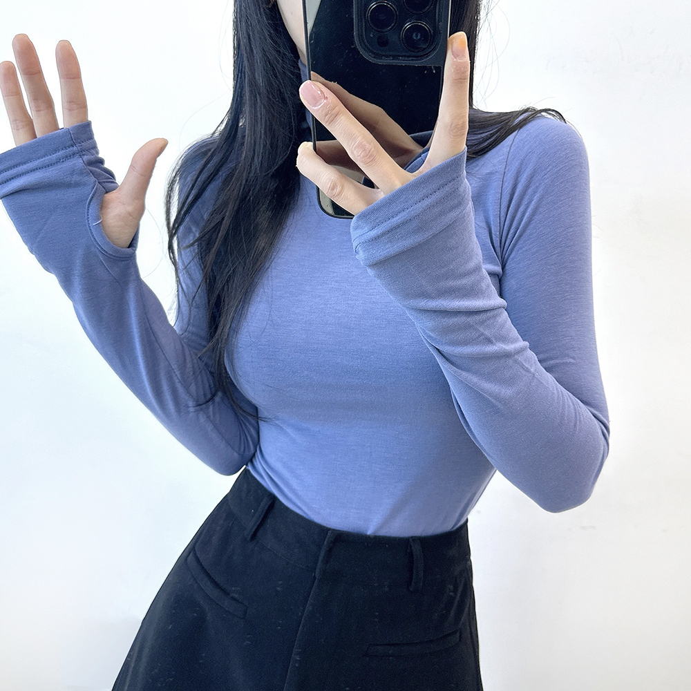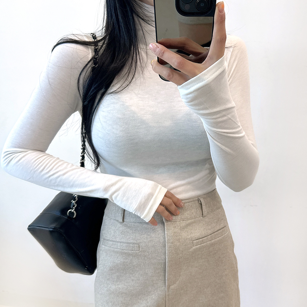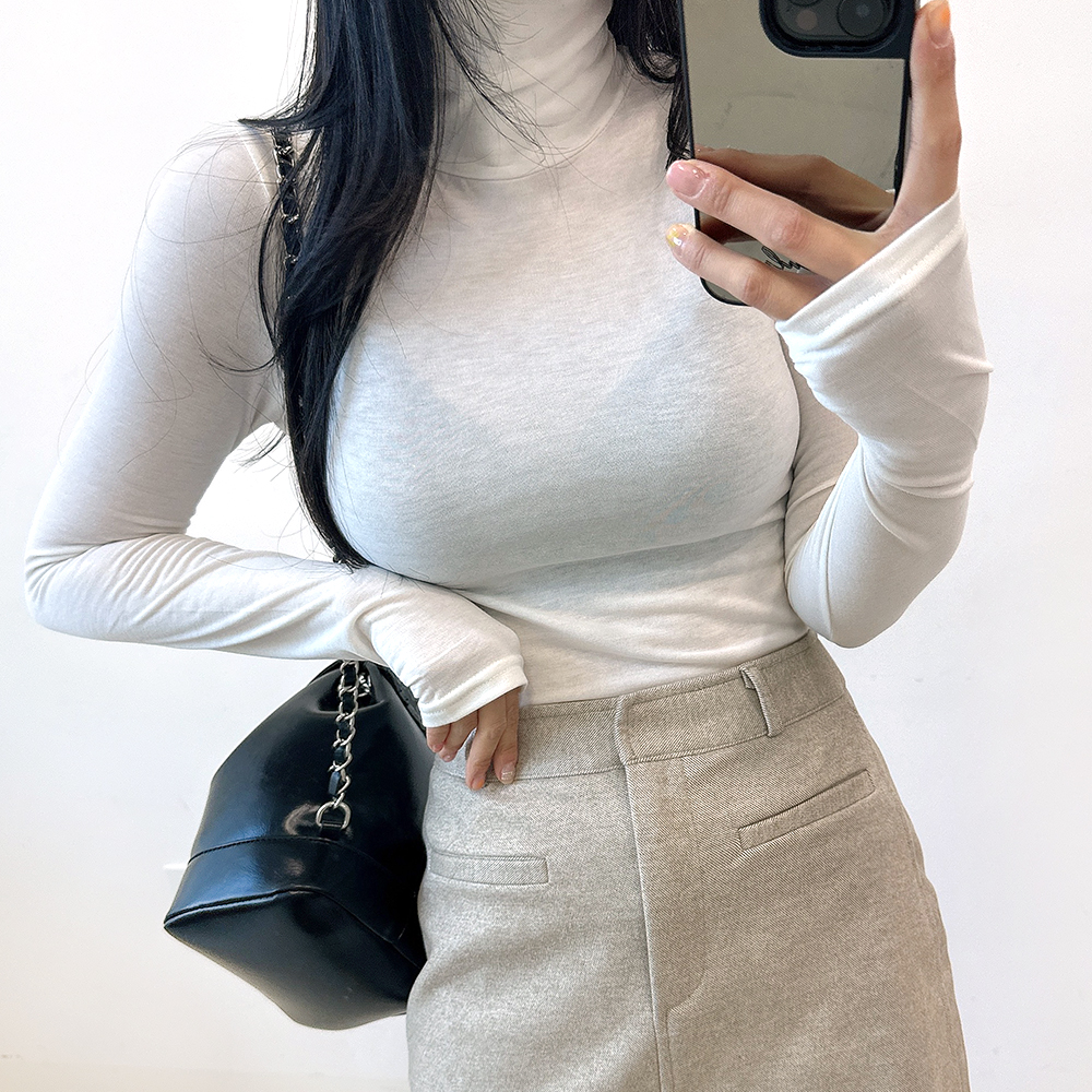 [裏地起毛/4color] ウォーマー付きハイネック長袖Tシャツ