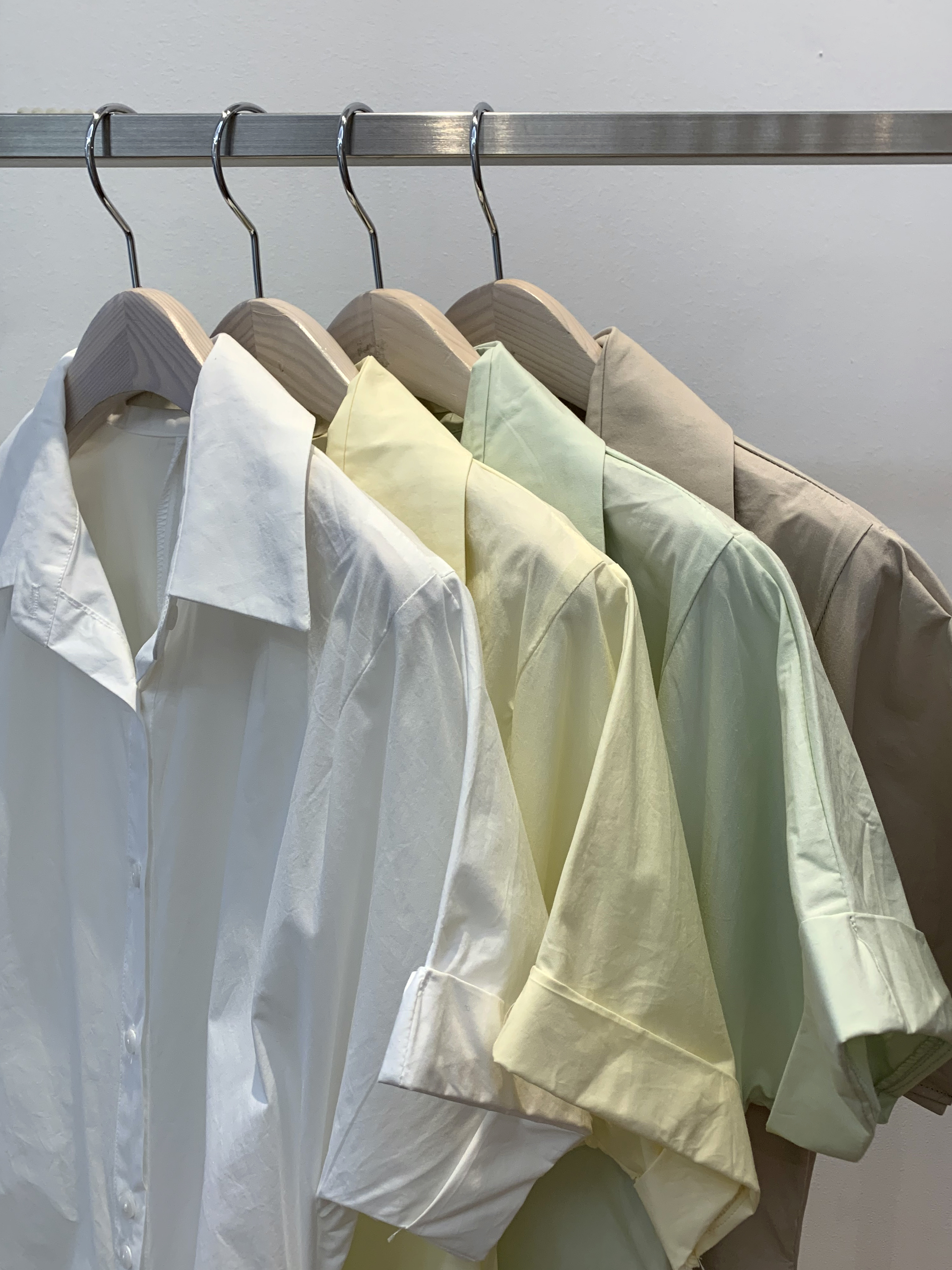 シャーリングシャツAラインロールアップ半袖ロングワンピース4color