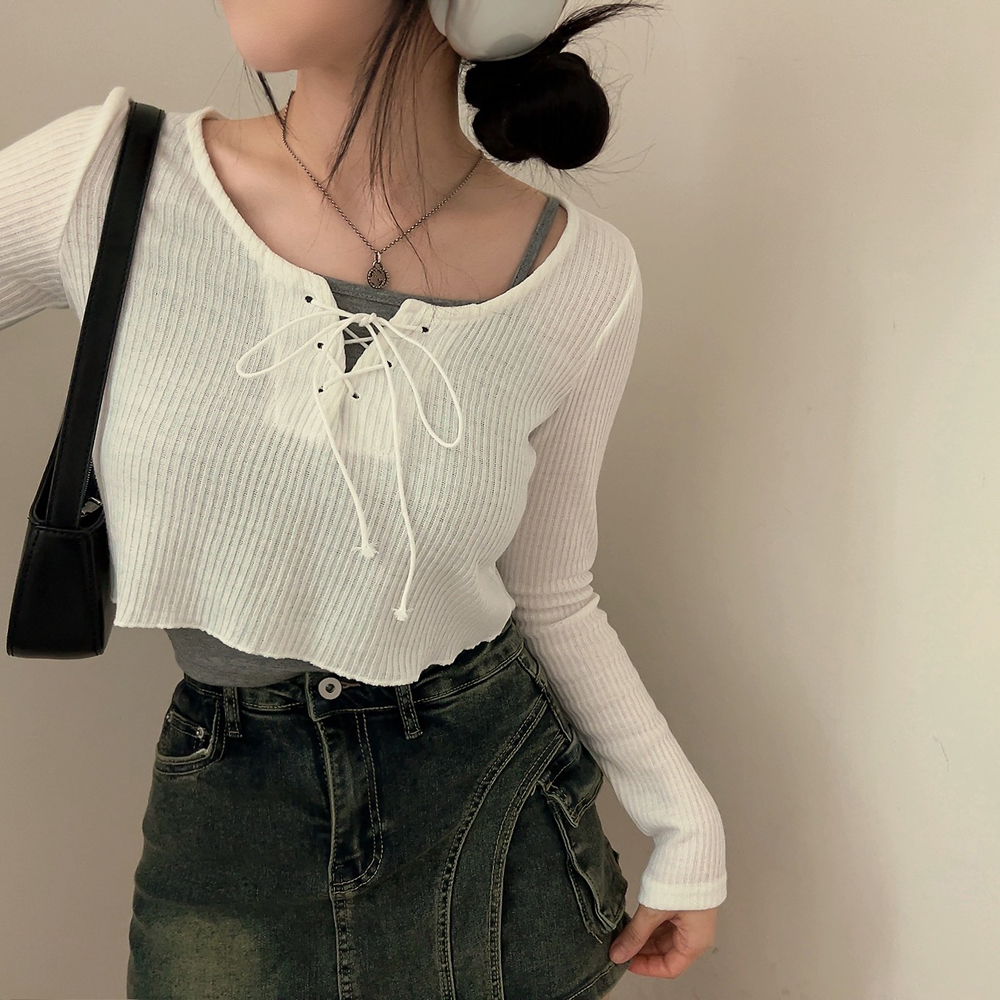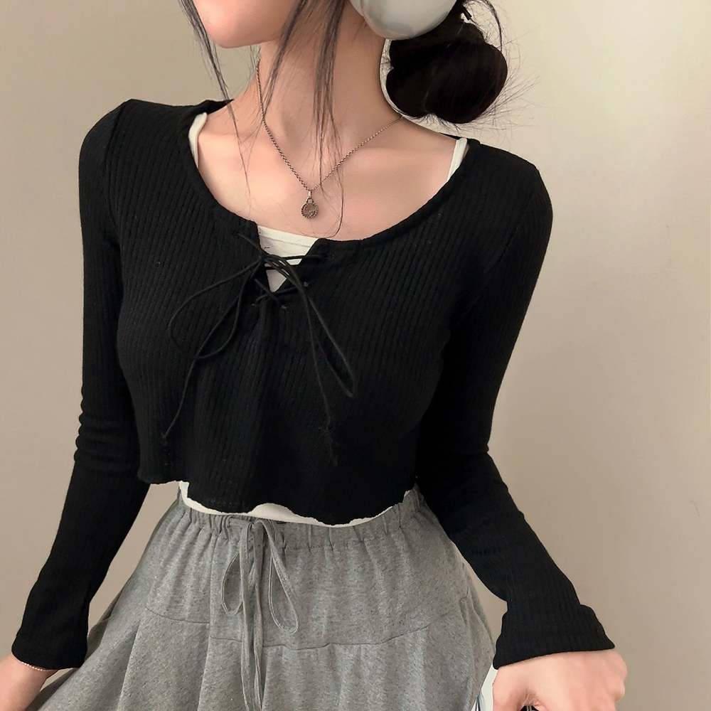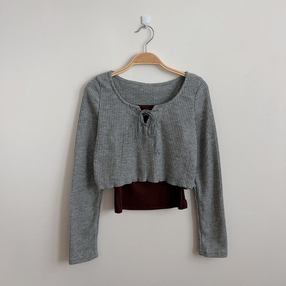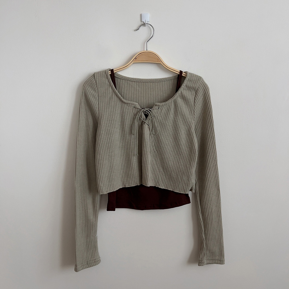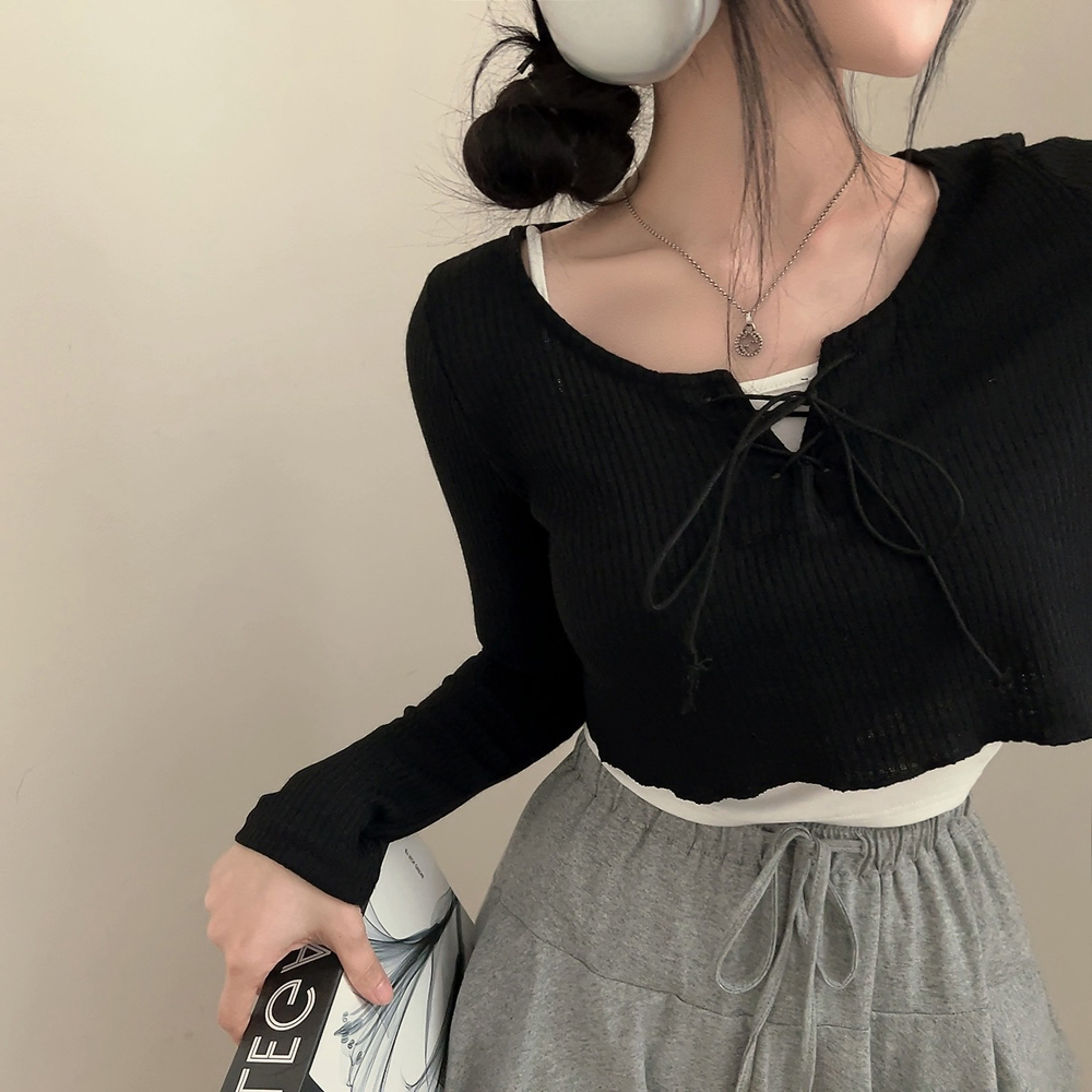 [SET] アイレットリボン長袖Tシャツ+ノースリーブセット