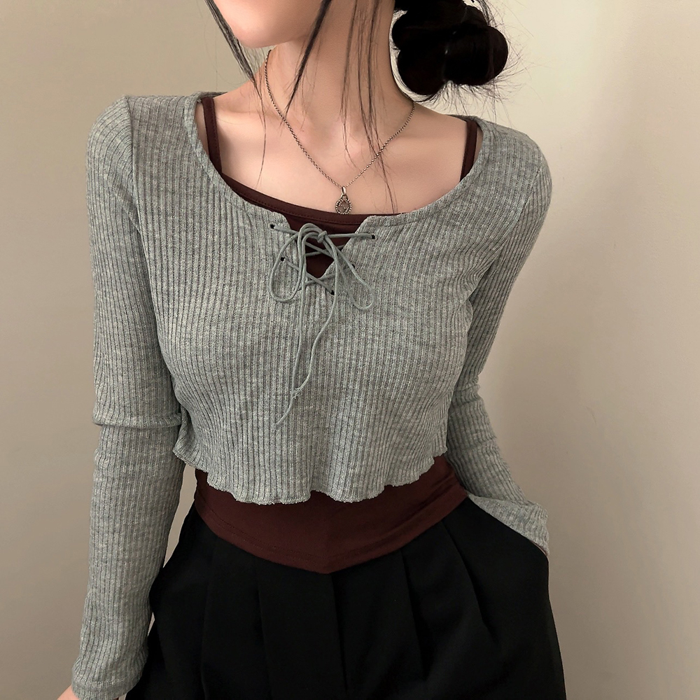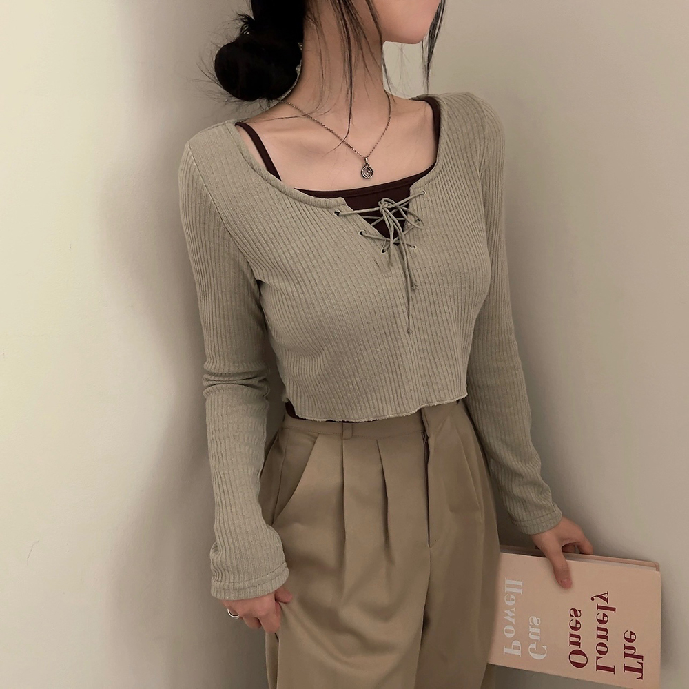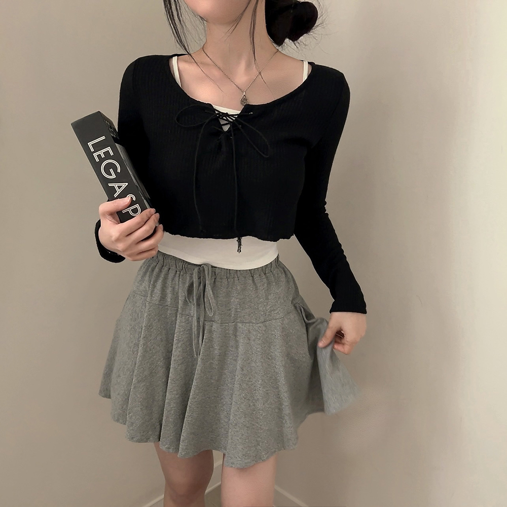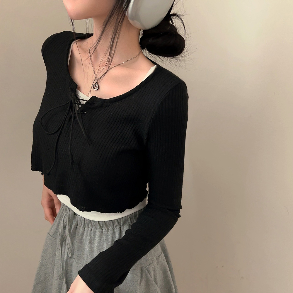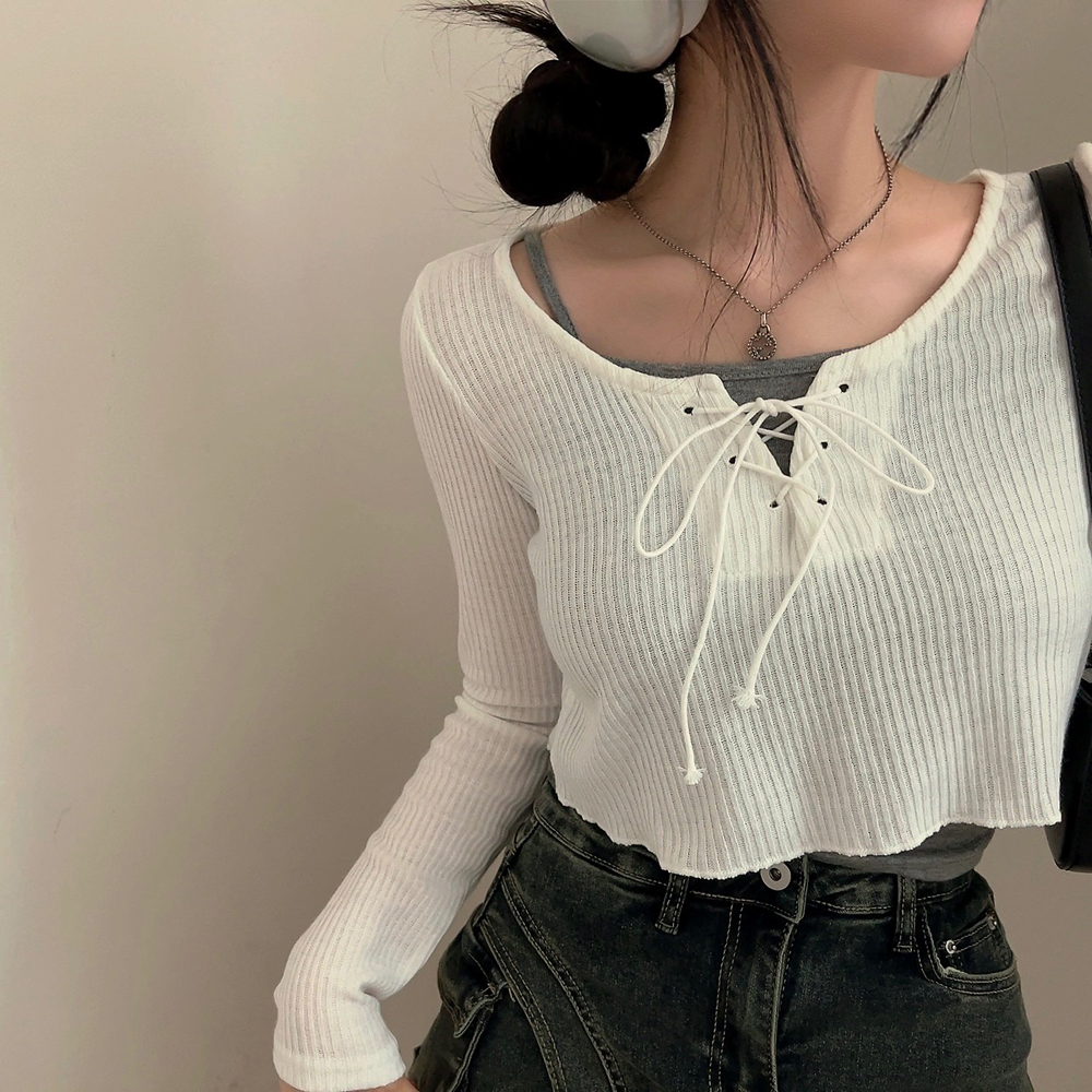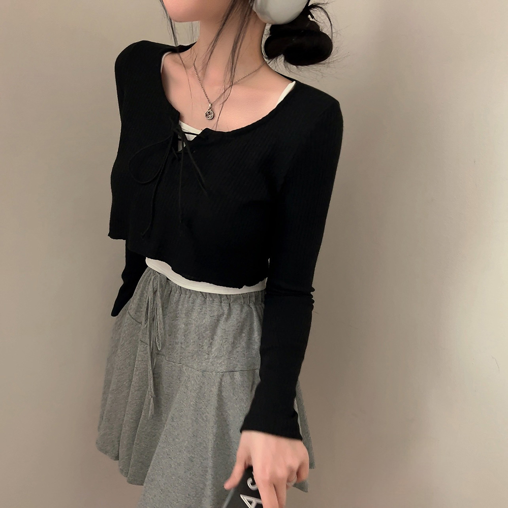 [SET] アイレットリボン長袖Tシャツ+ノースリーブセット