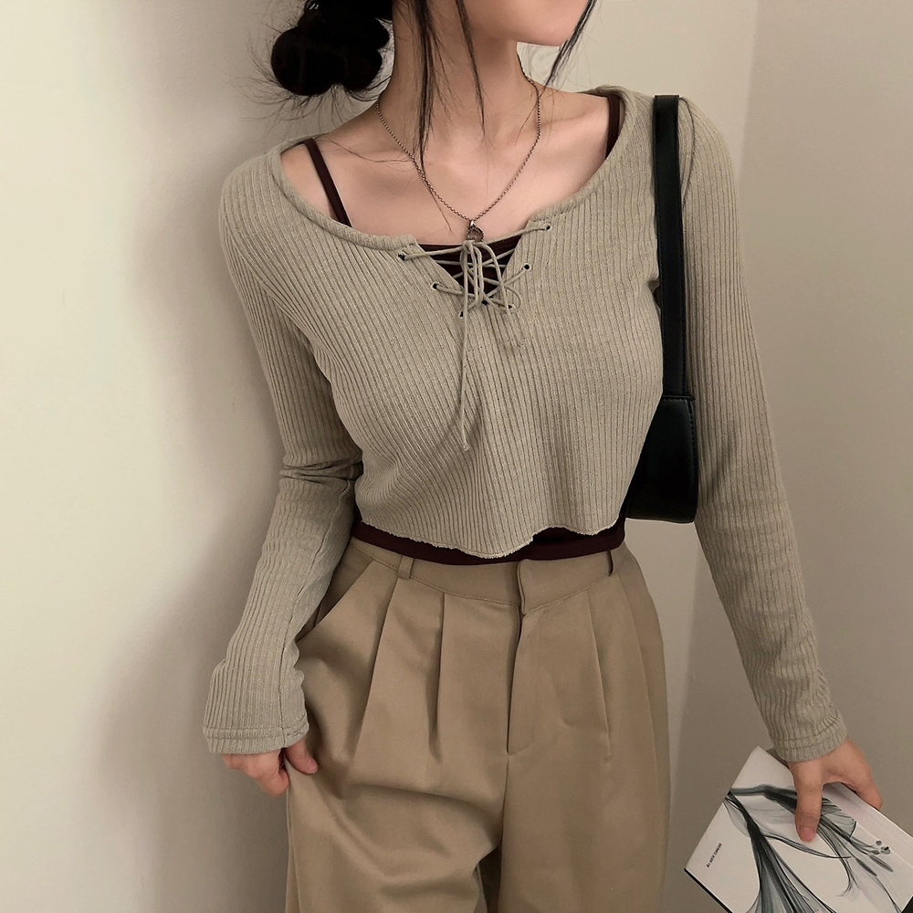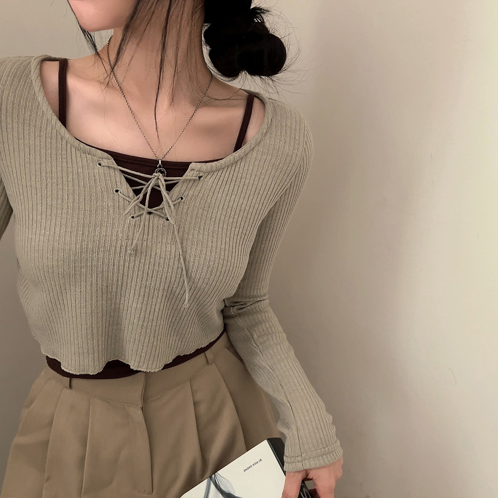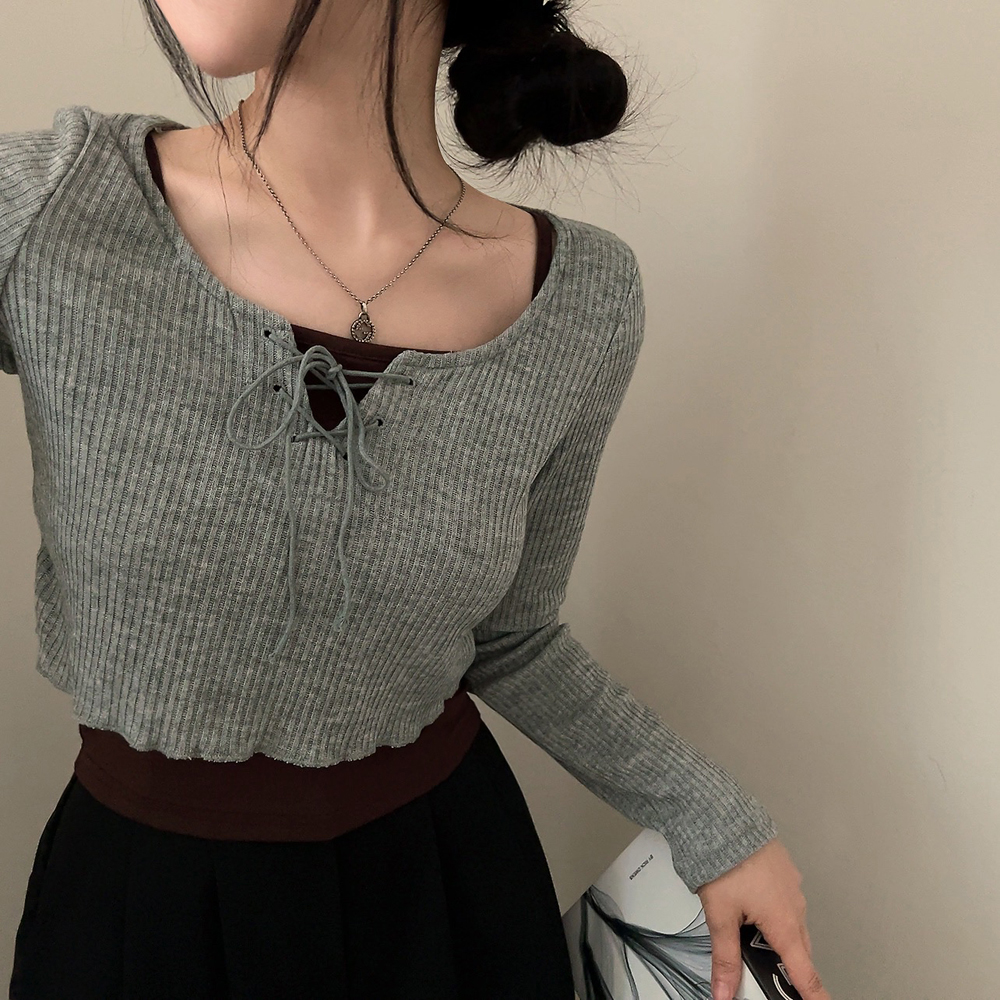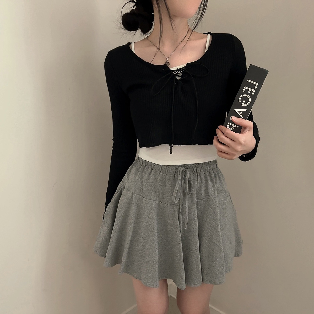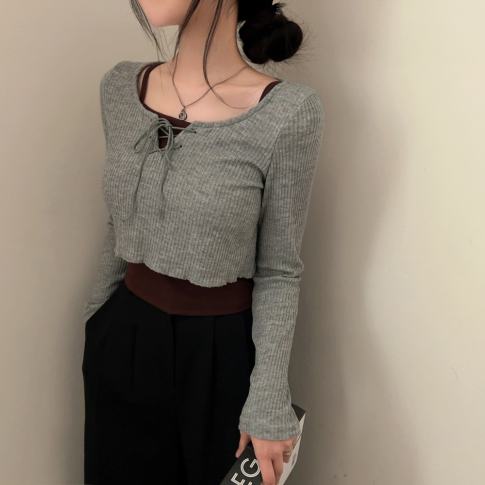 [SET] アイレットリボン長袖Tシャツ+ノースリーブセット