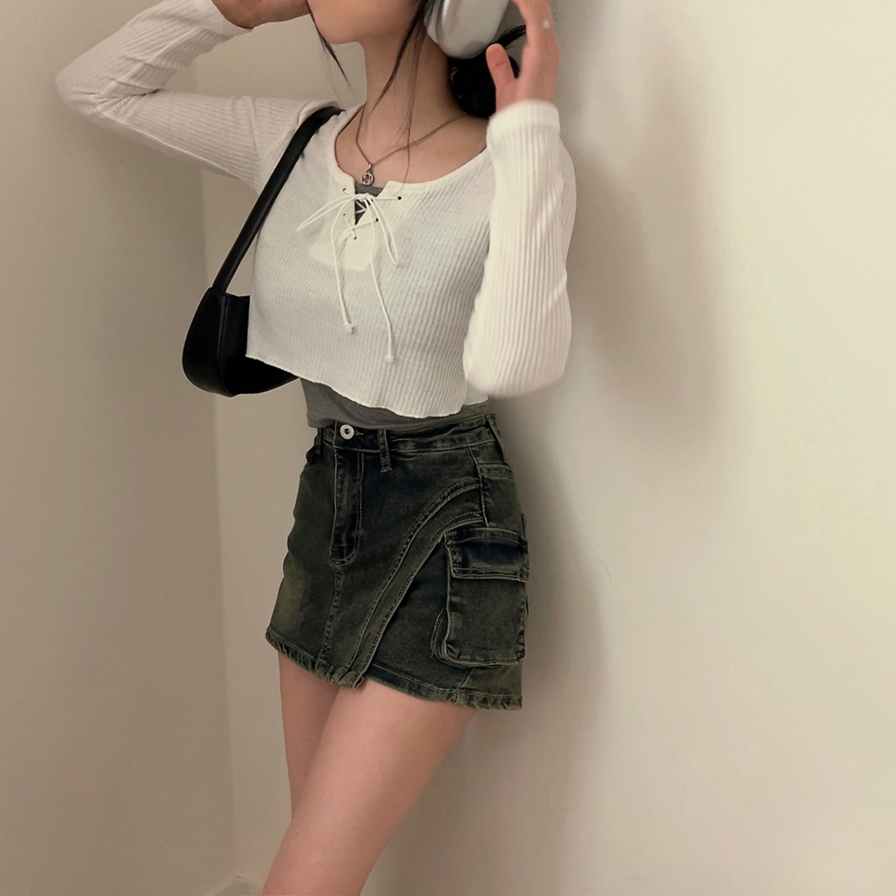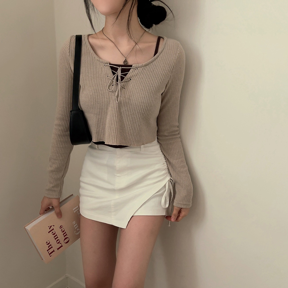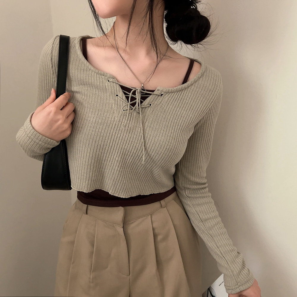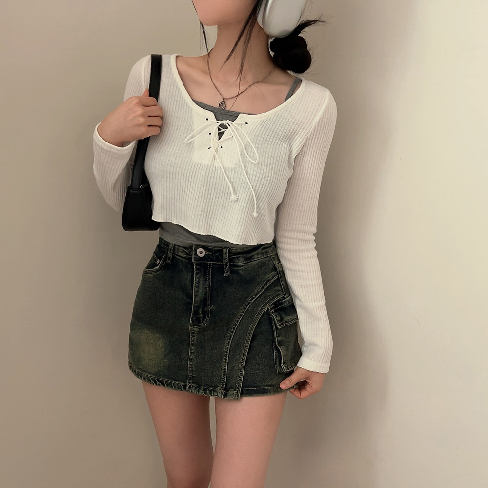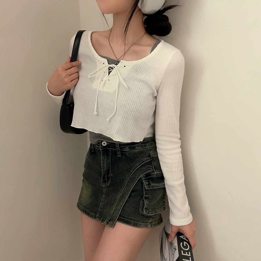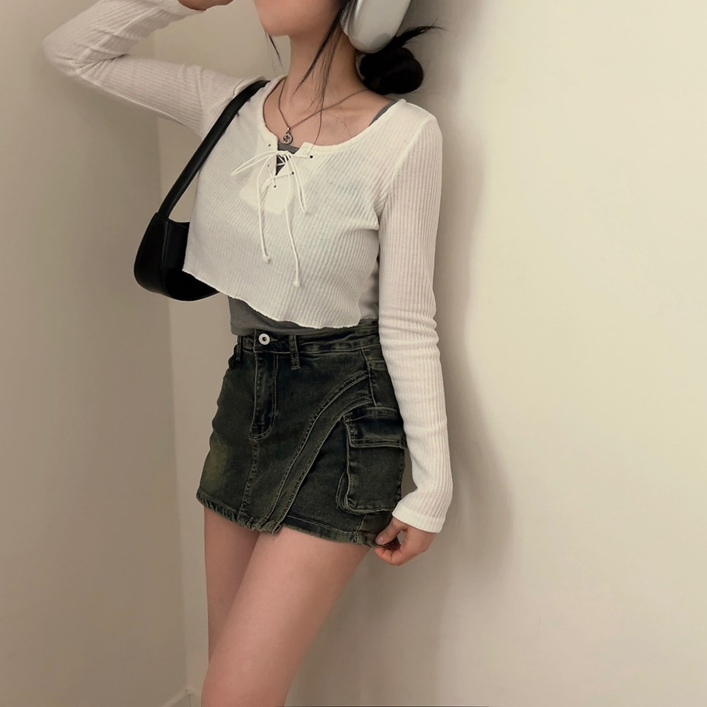 [SET] アイレットリボン長袖Tシャツ+ノースリーブセット