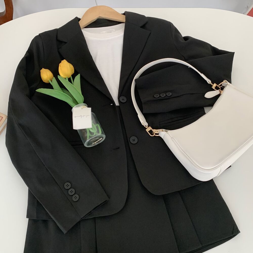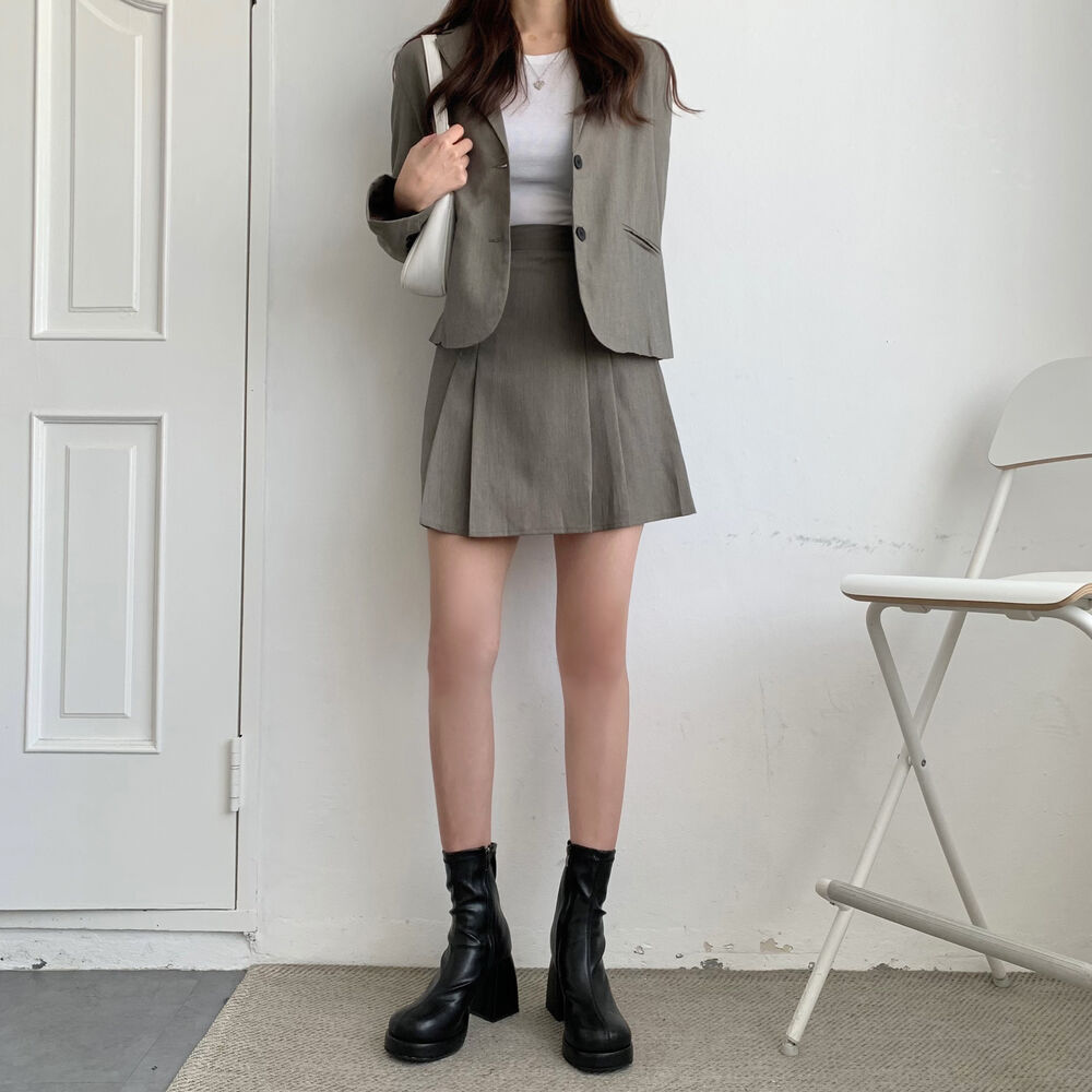 [SET] テーラードジャケット+ハイウエストプリーツミニスカート2ピースセットアップ