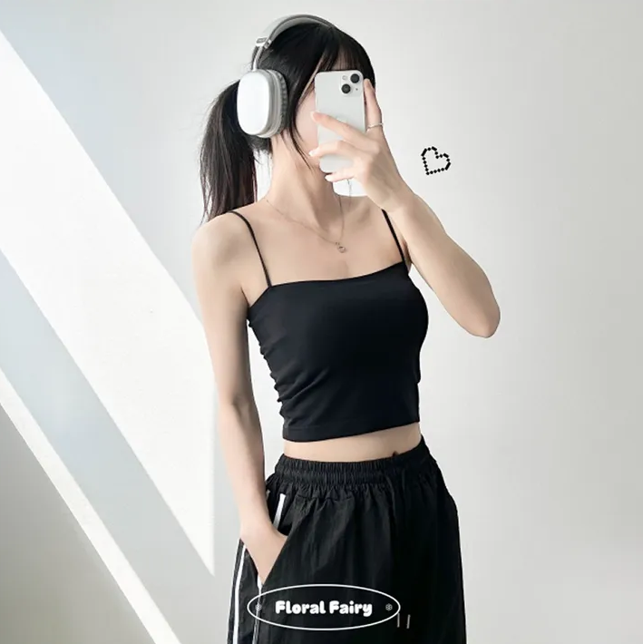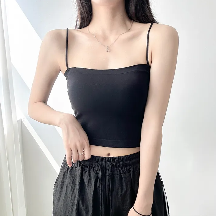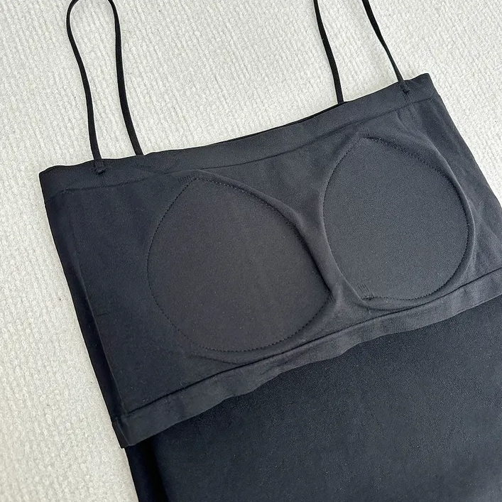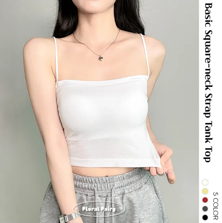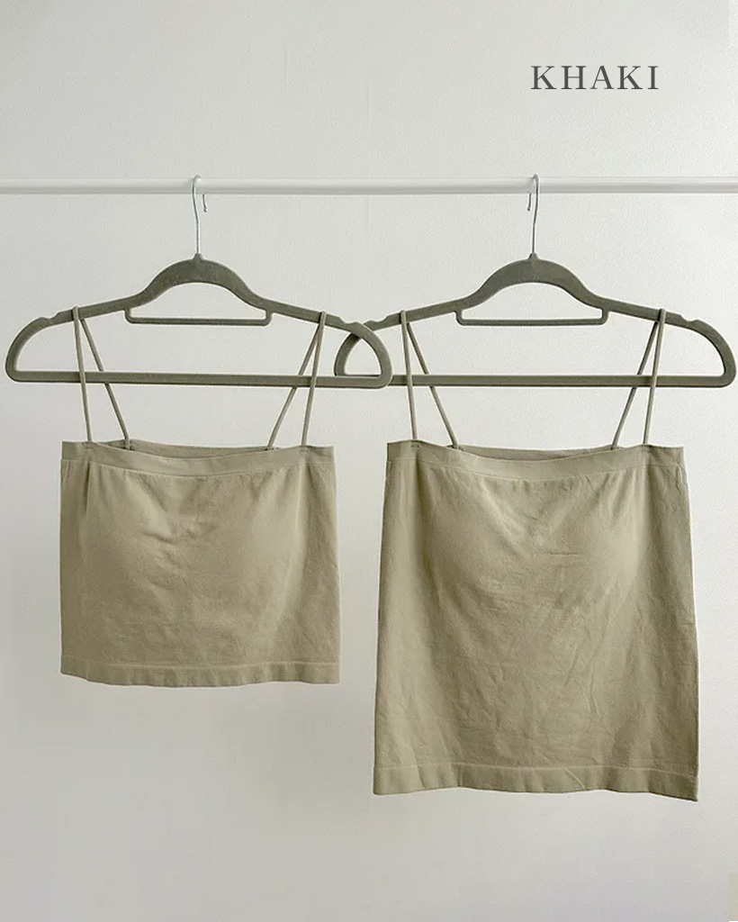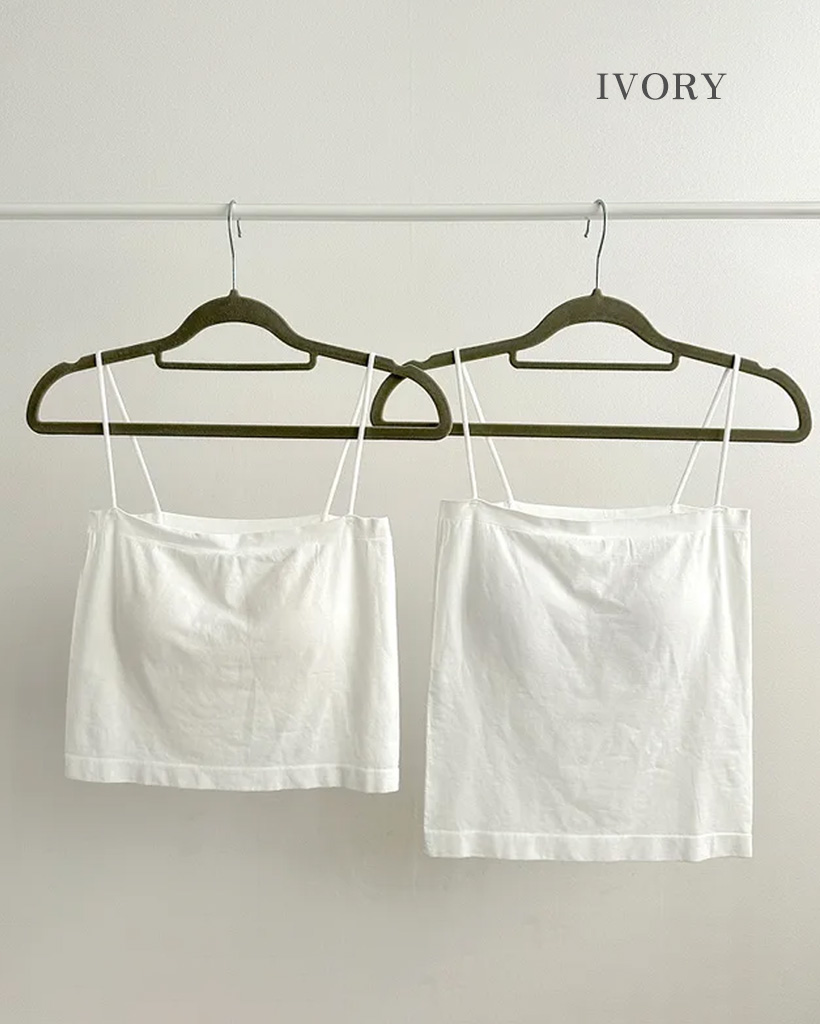 [選べる着丈]スクエアネックベーシッククロップドカップ付きキャミソール