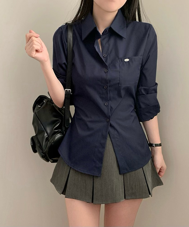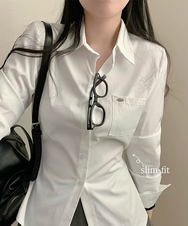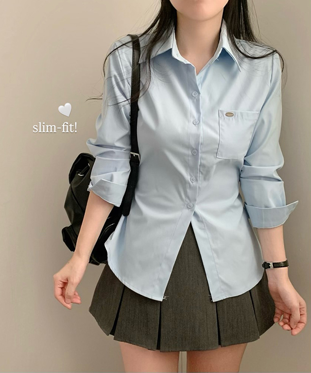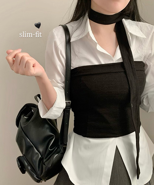 (3color)ネックレススリムフィットウエストマークシャツ
