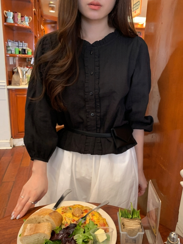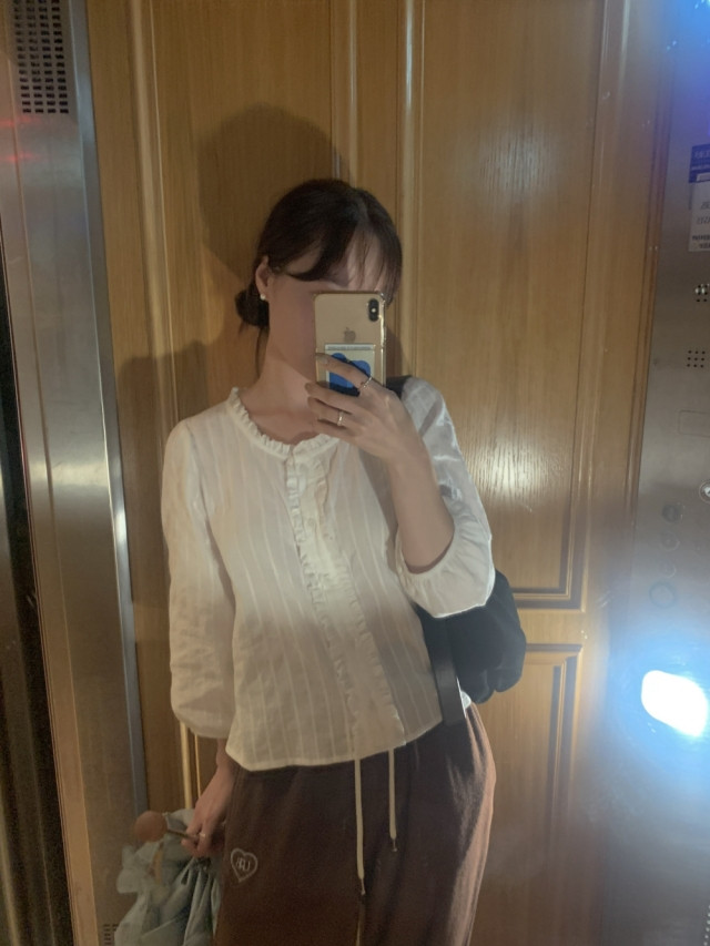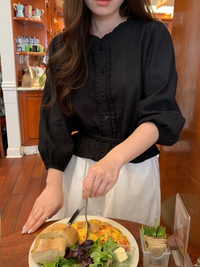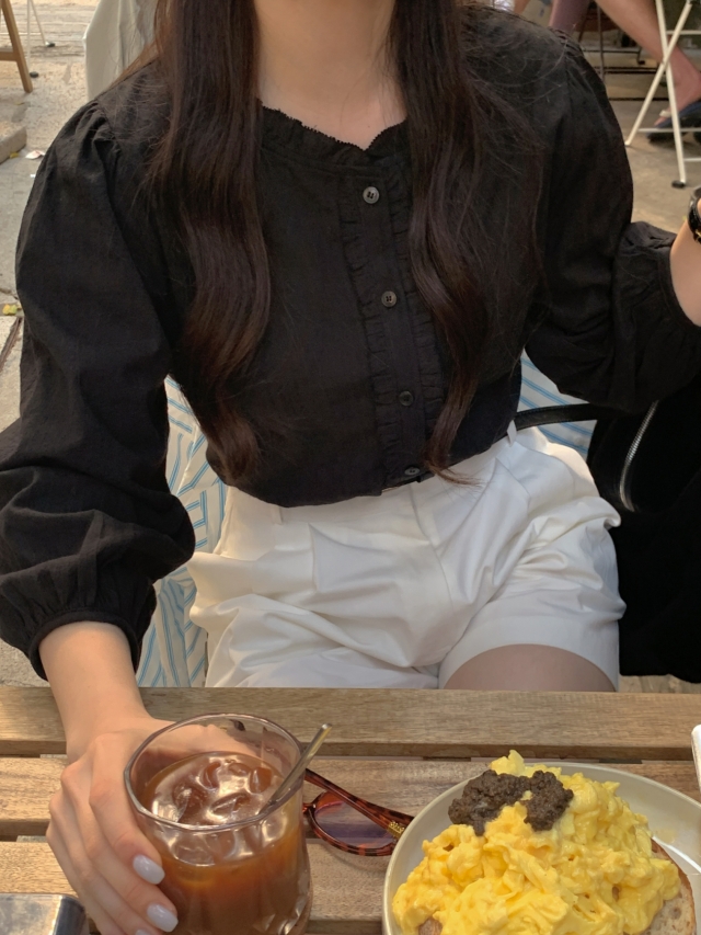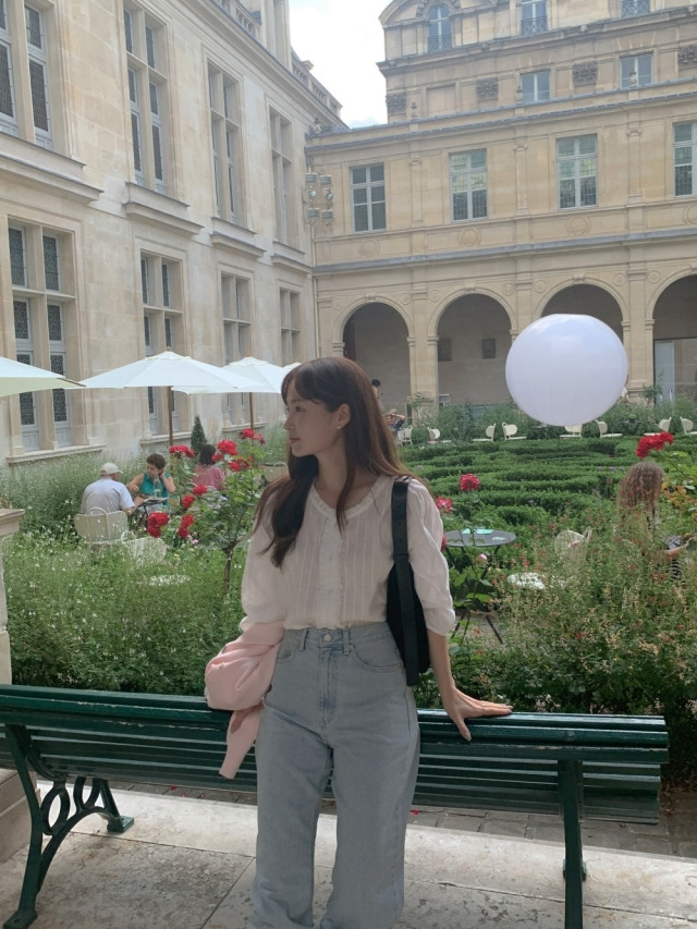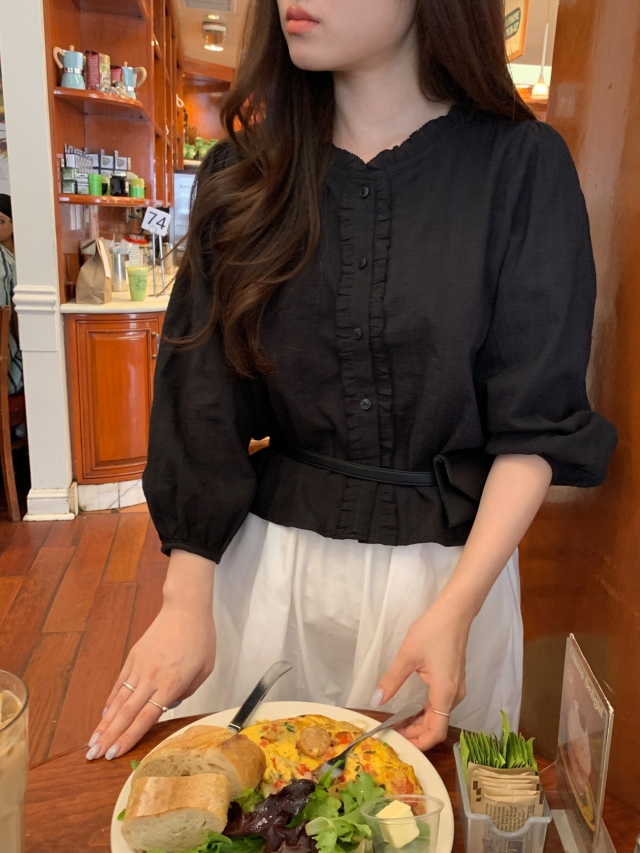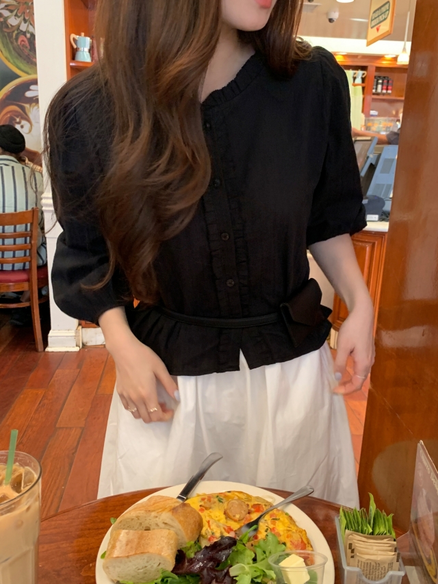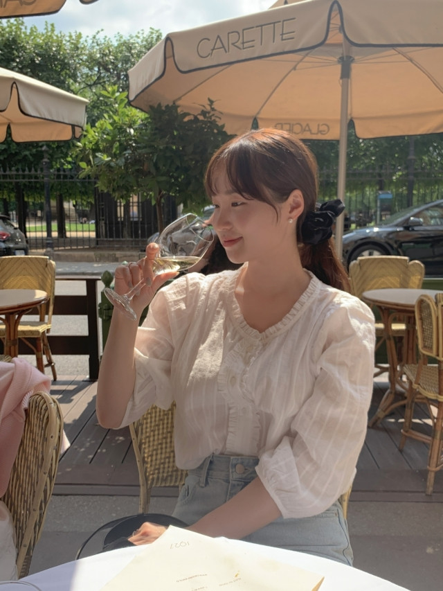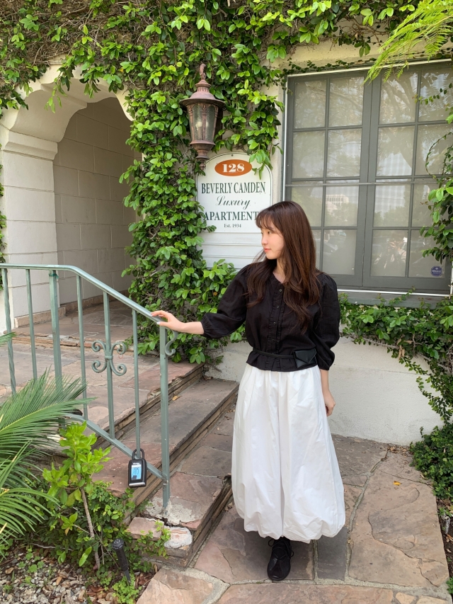 더해진 블라우스로 수수하면서도 청순한 분위기를 자랑하니