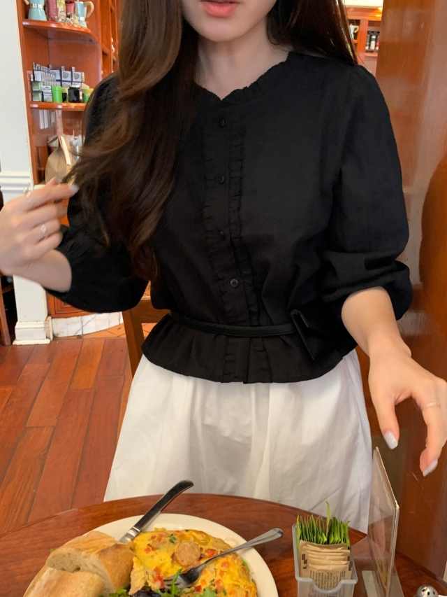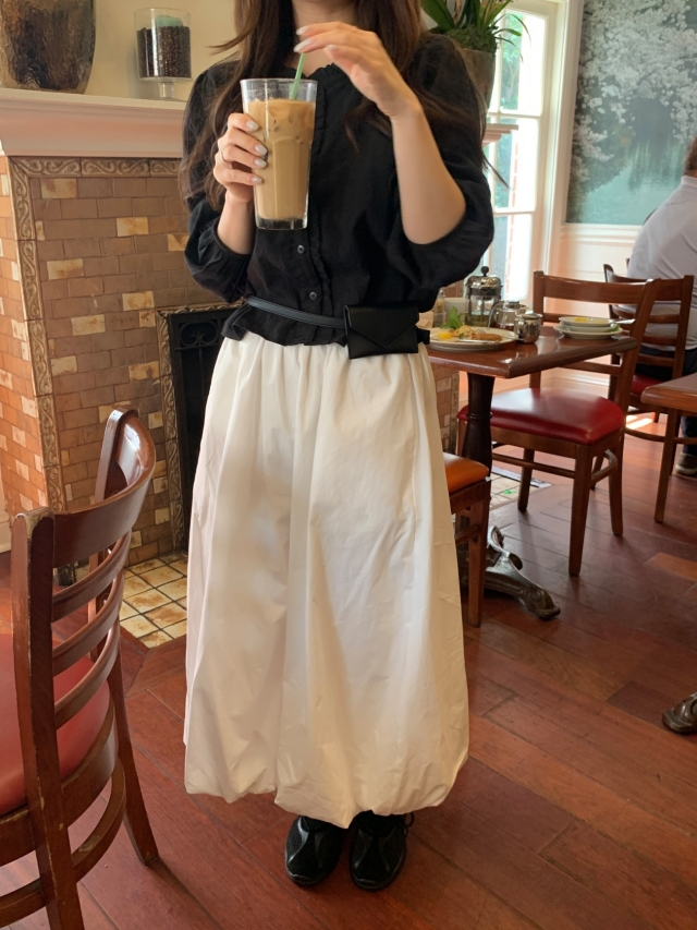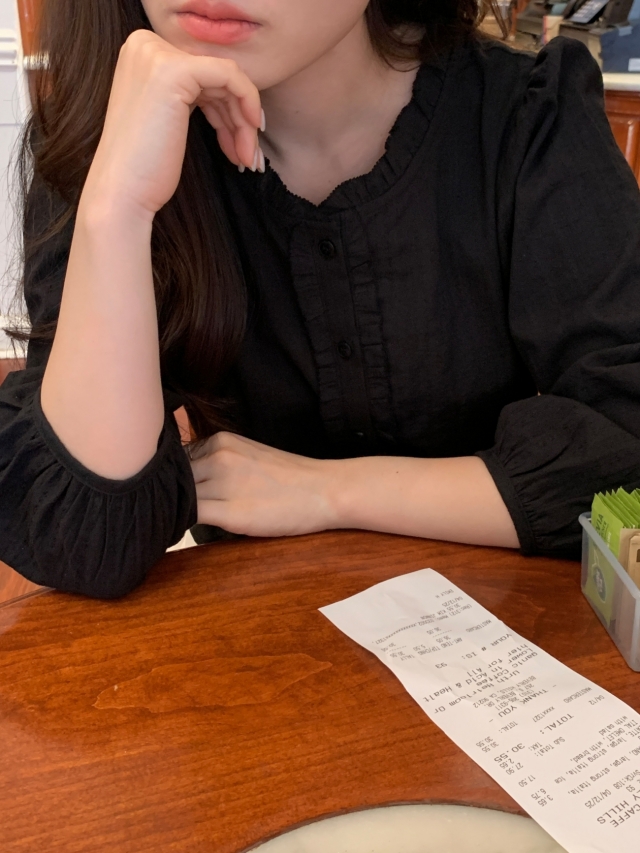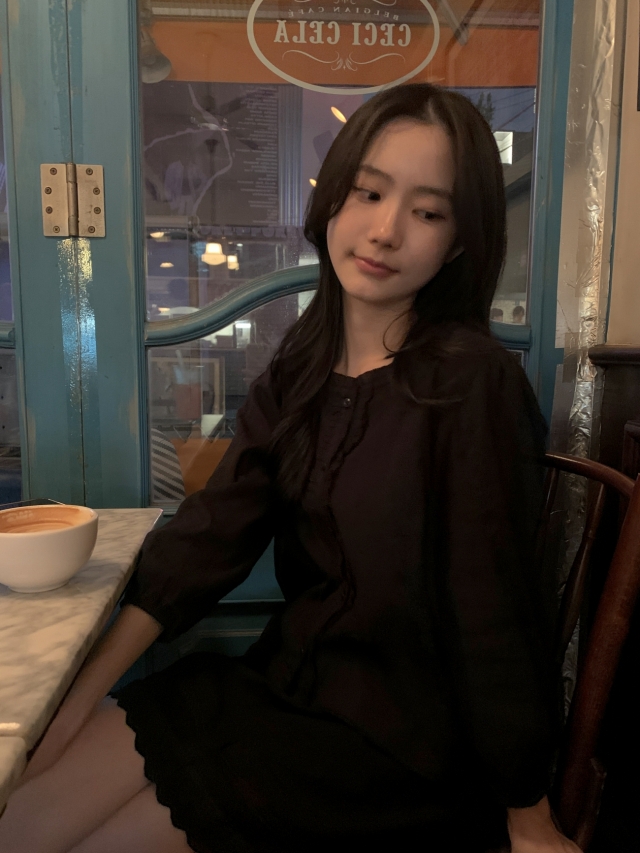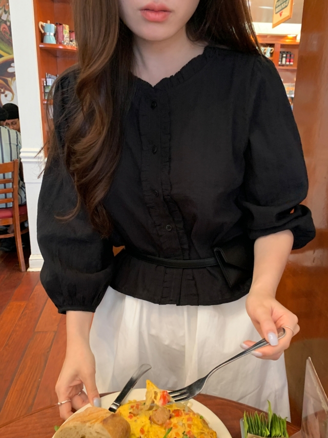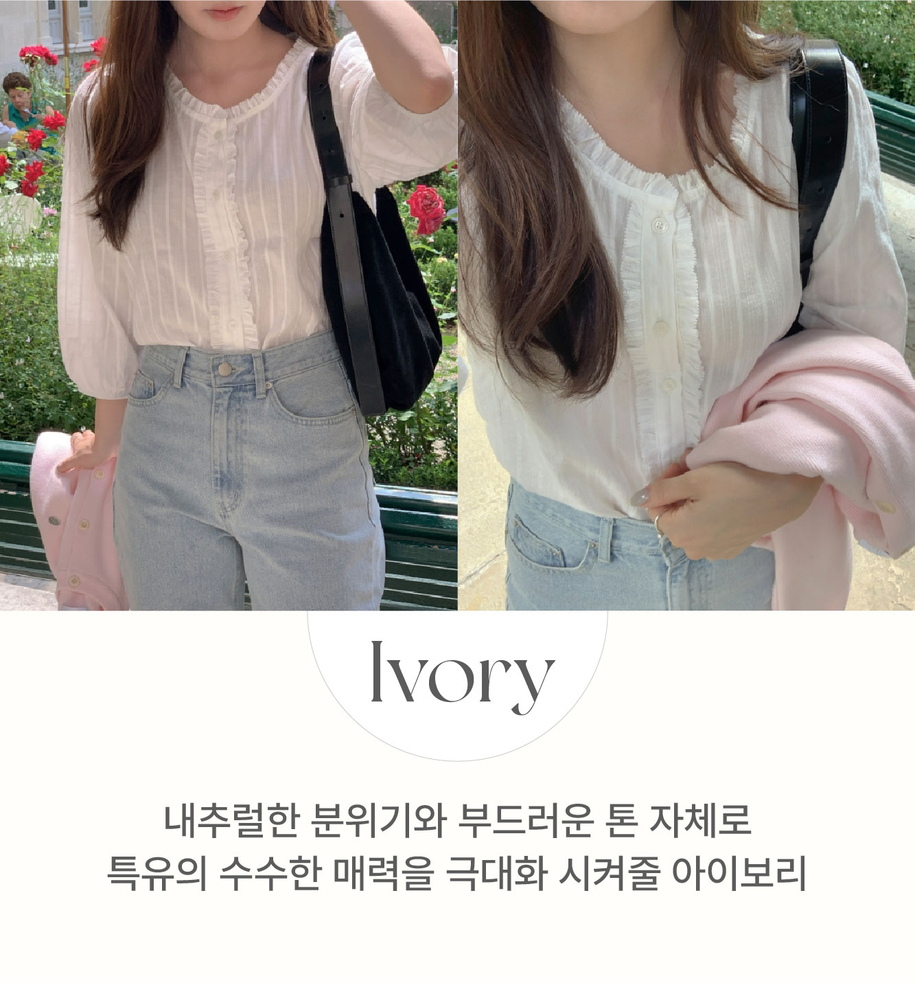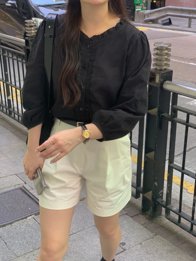 더해진 블라우스로 수수하면서도 청순한 분위기를 자랑하니