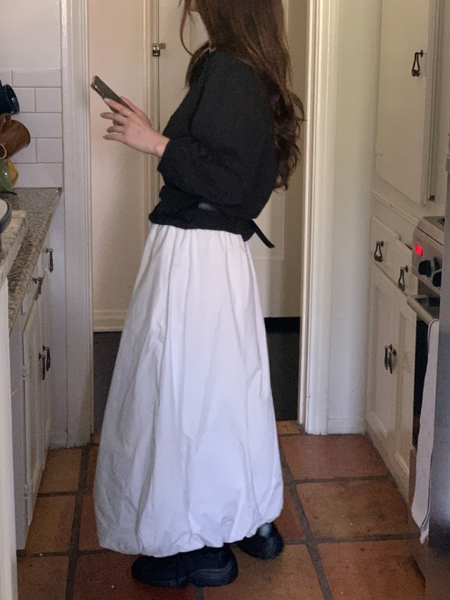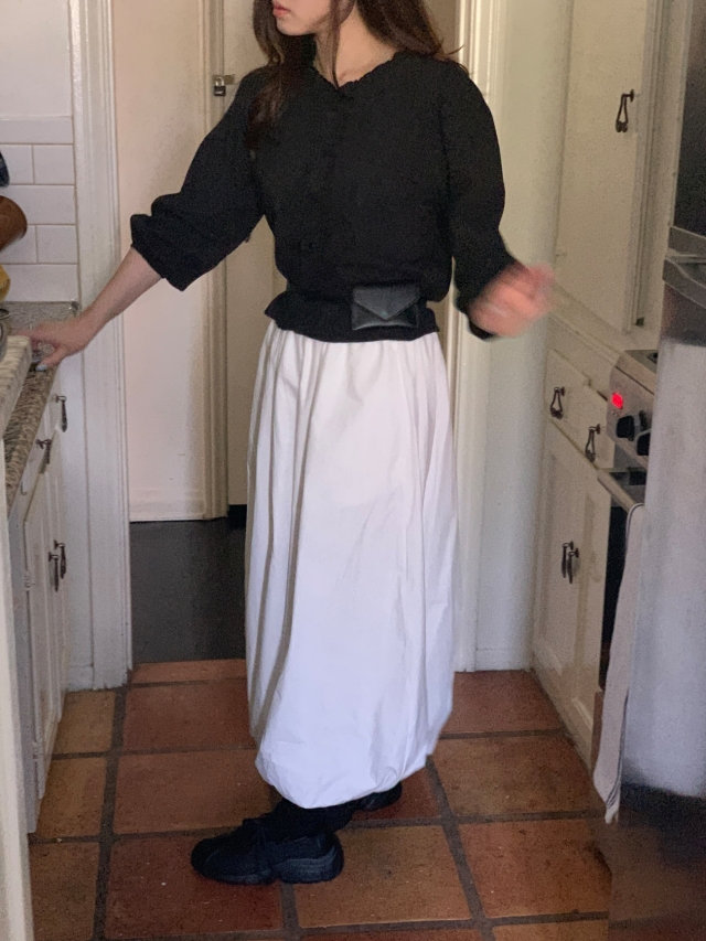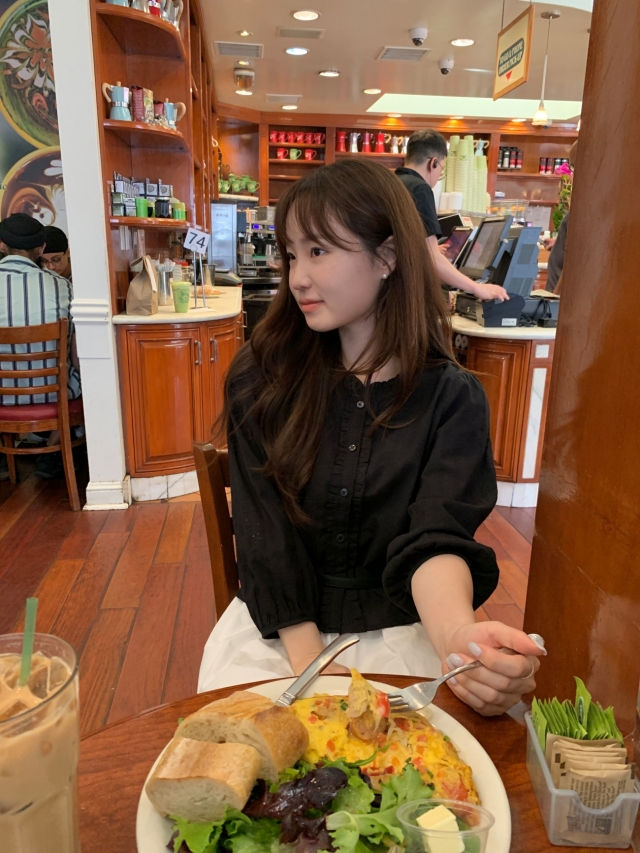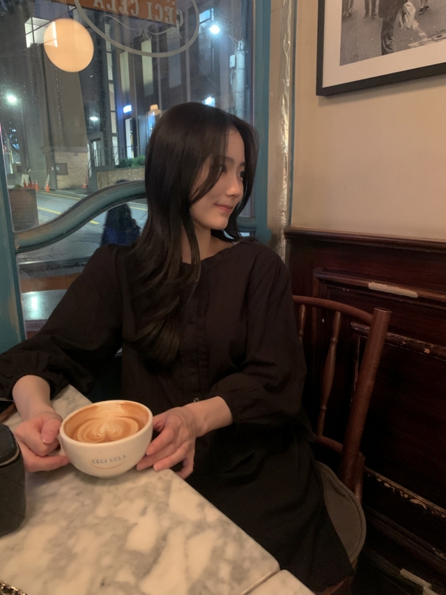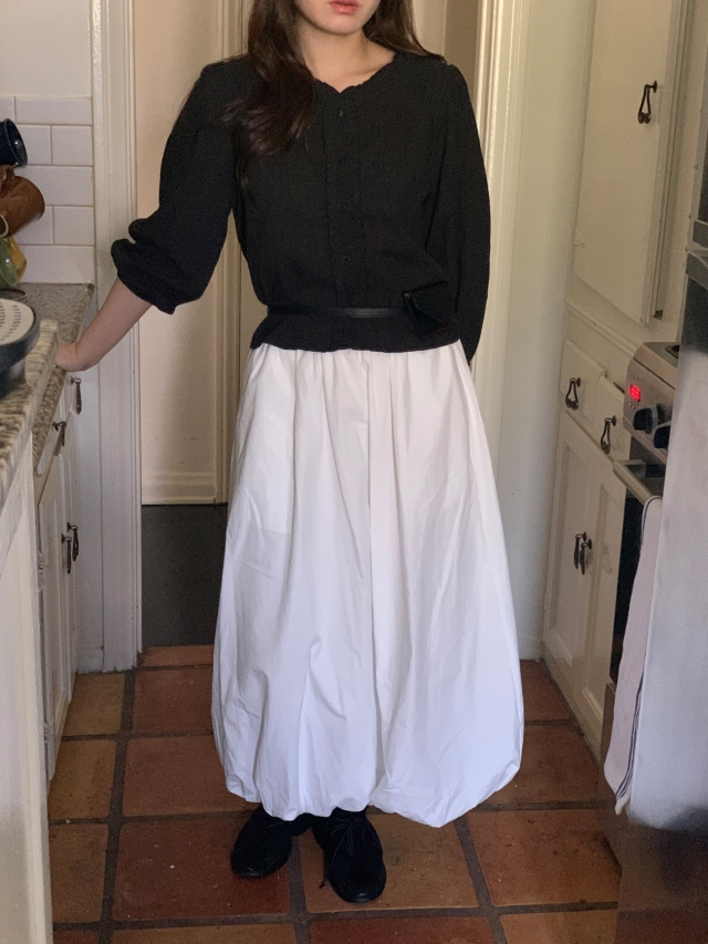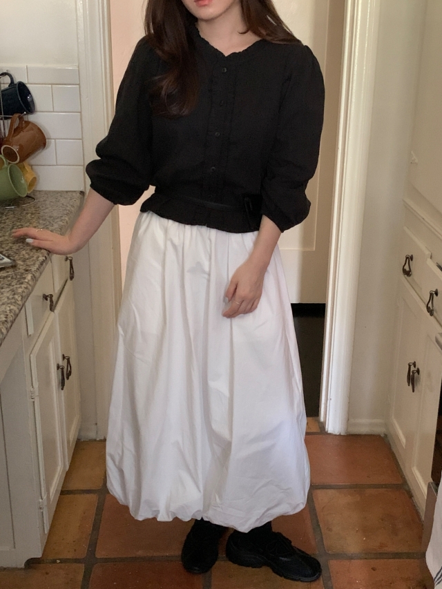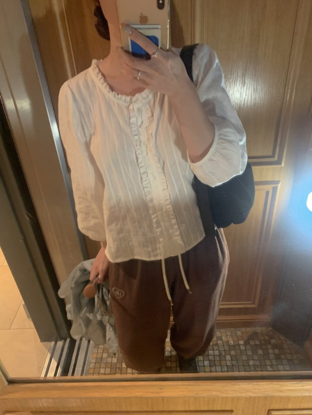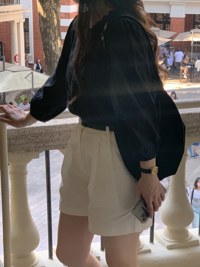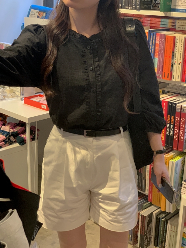 더해진 블라우스로 수수하면서도 청순한 분위기를 자랑하니