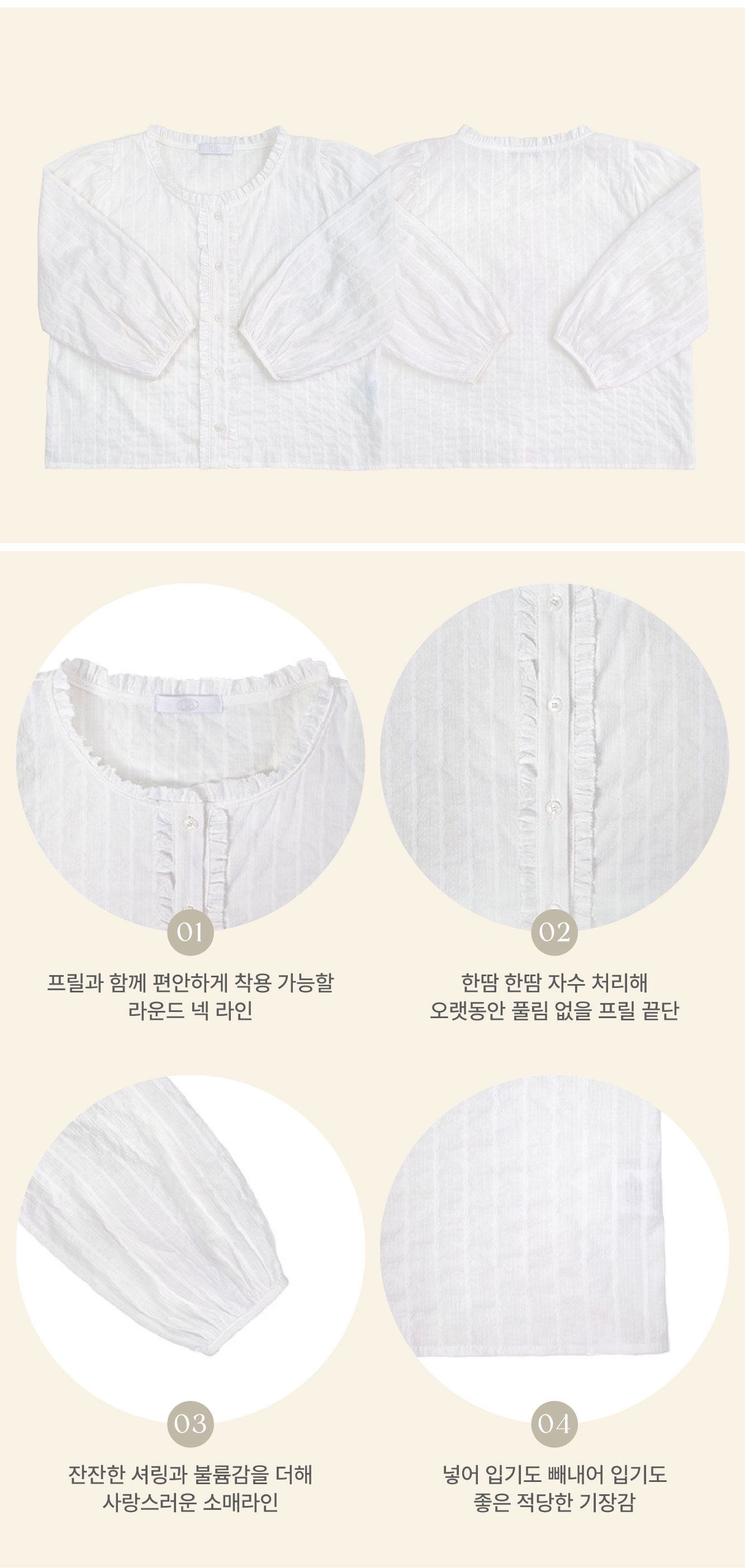 깔끔하지만 단정한 무드의 프릴 디자인이