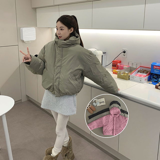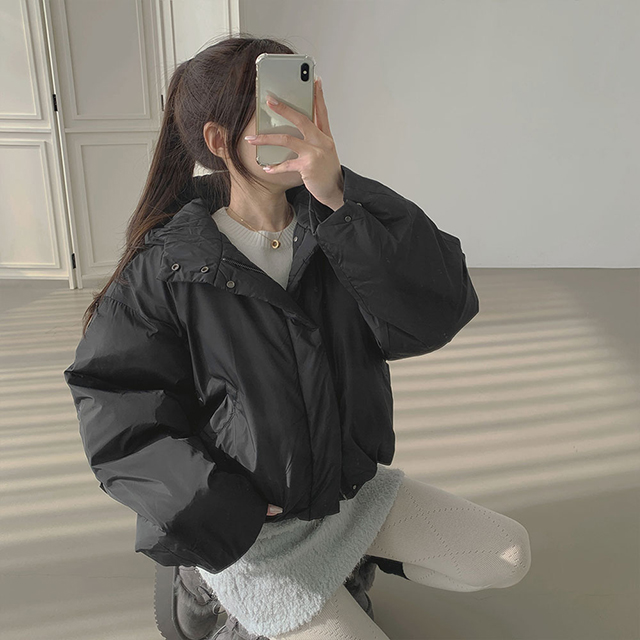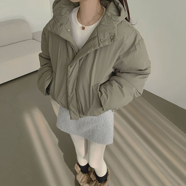 ハイネック ショート丈 ダウン パーカー