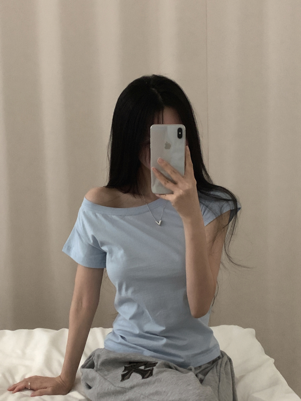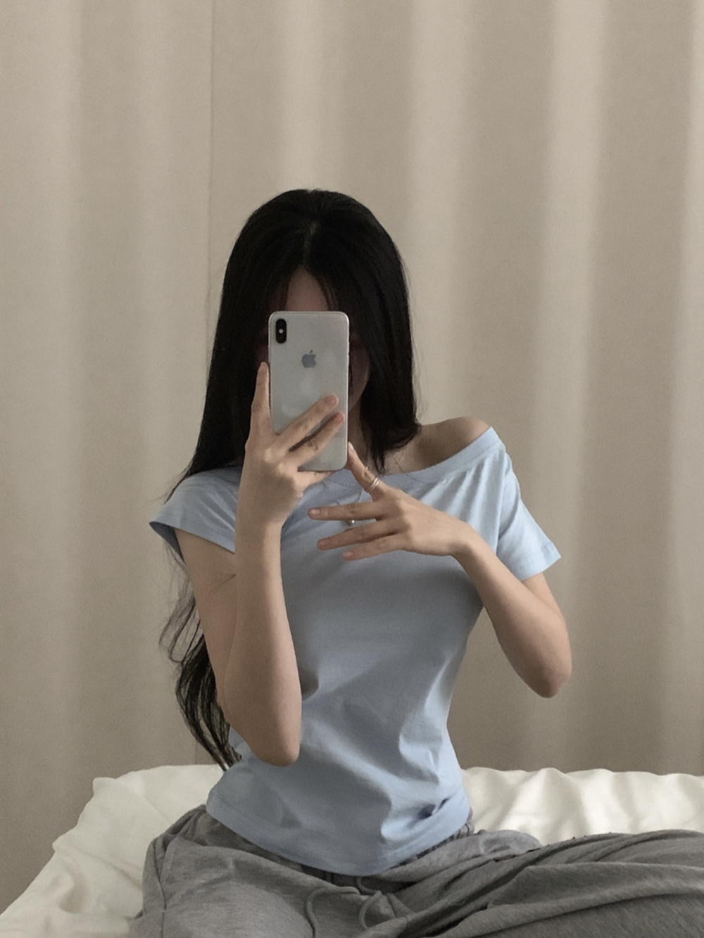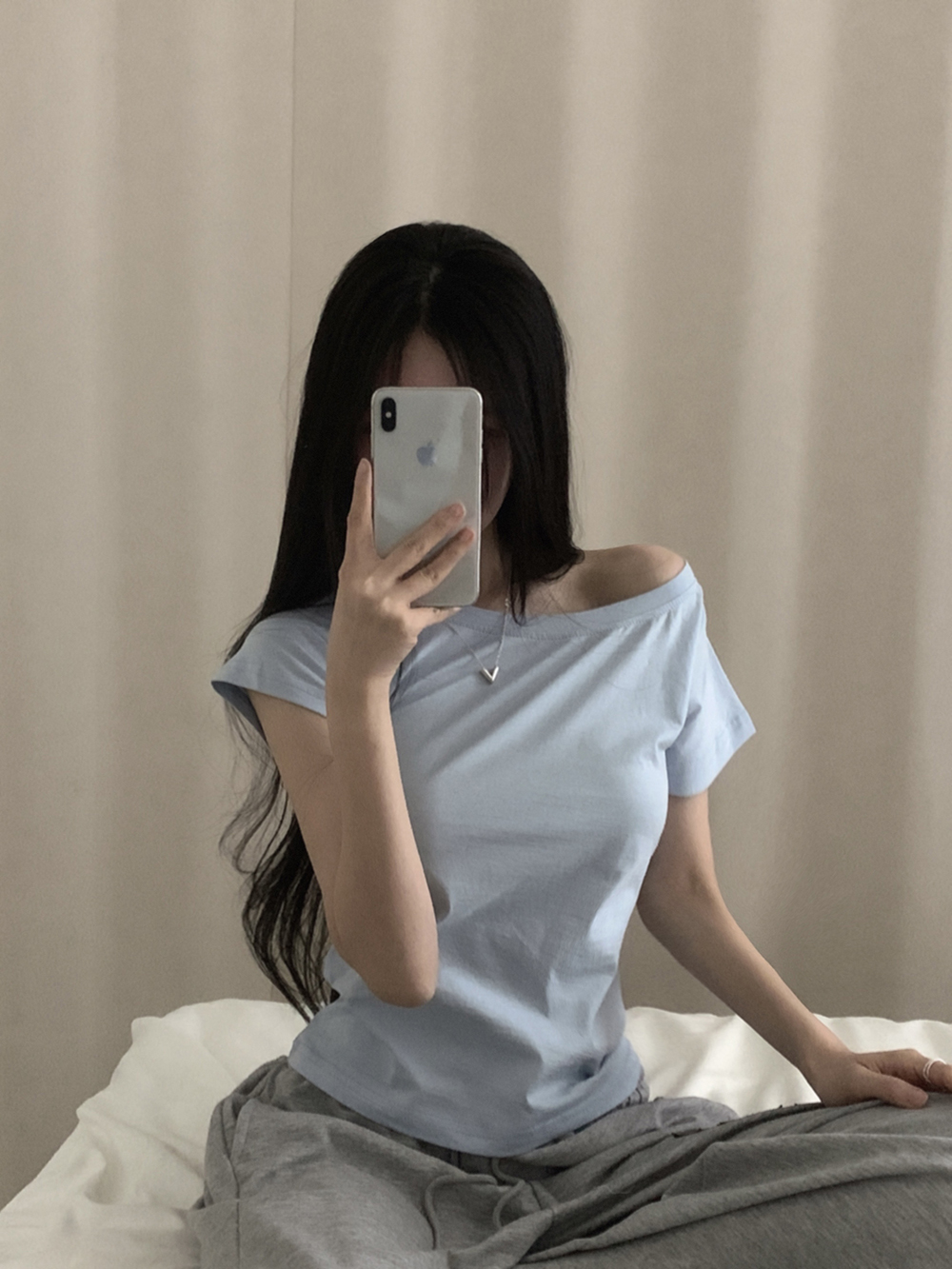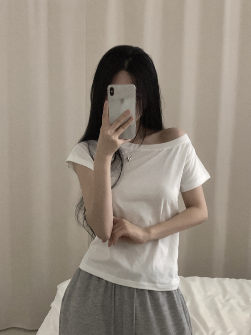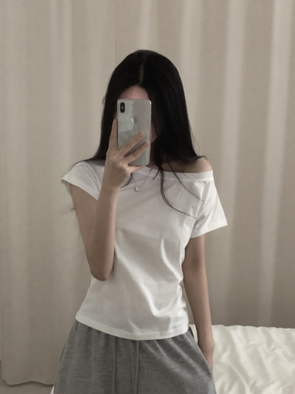 ワンショルオフショルスリムフィット半袖Tシャツ