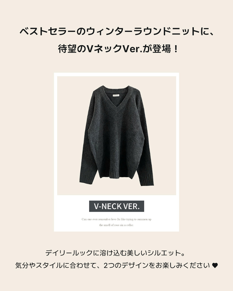 (6color) 選べるネック ウール ラグラン Vネック / ラウンドネック ニット トップス