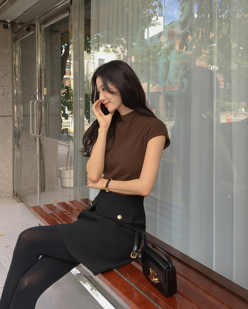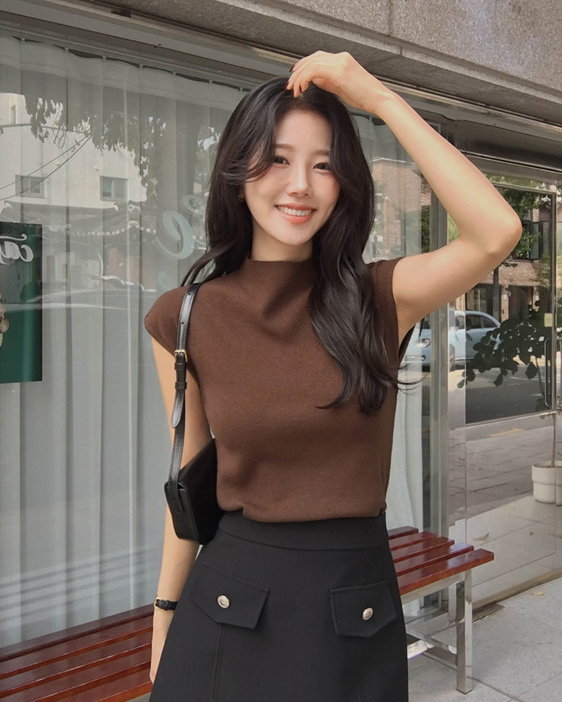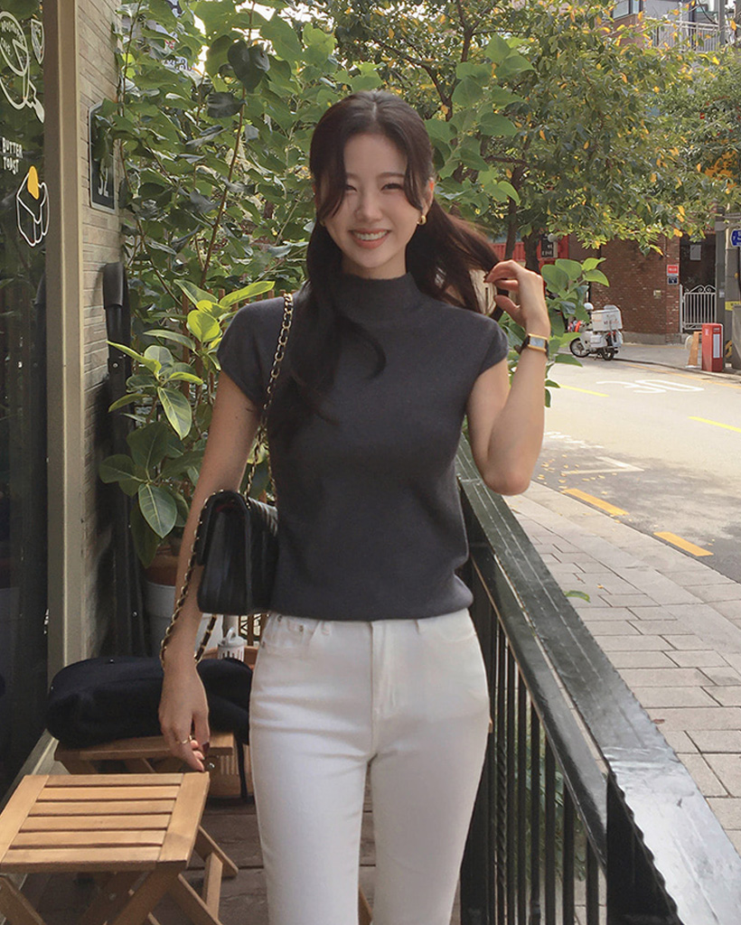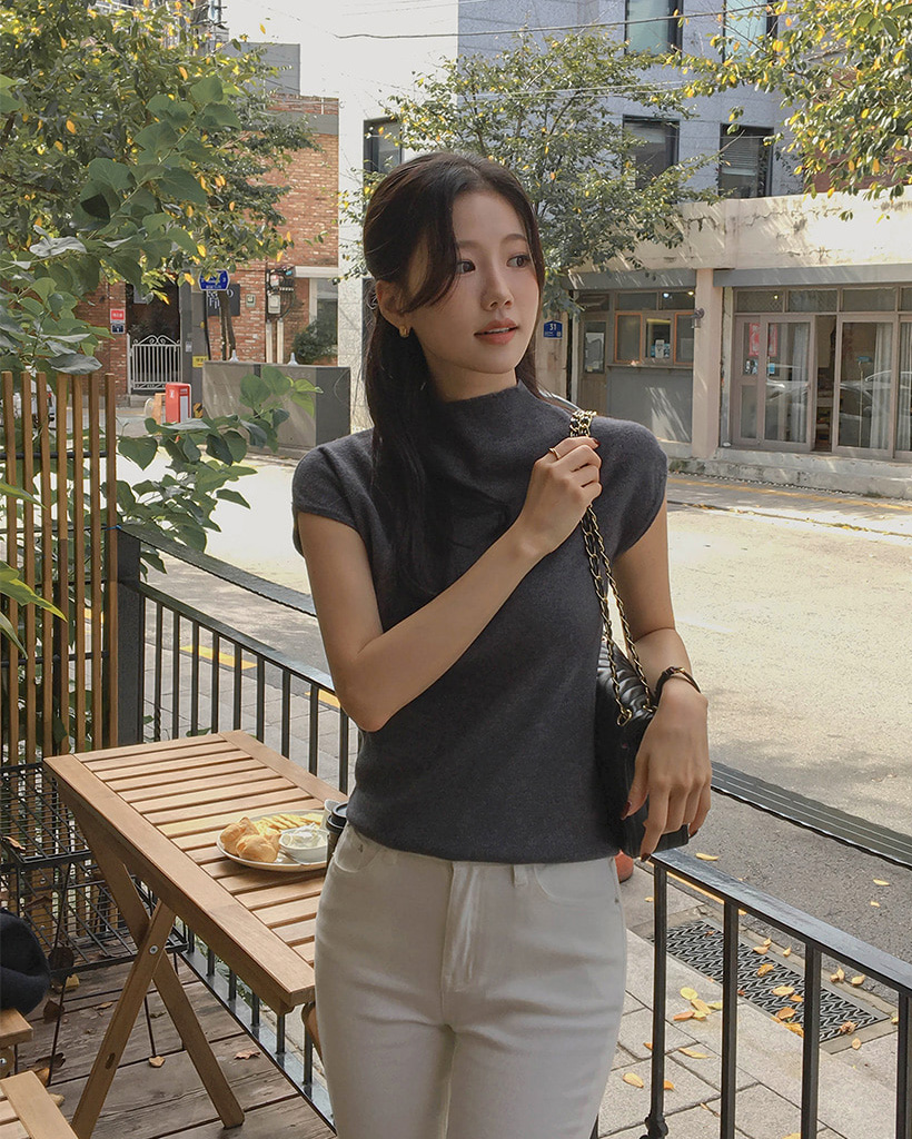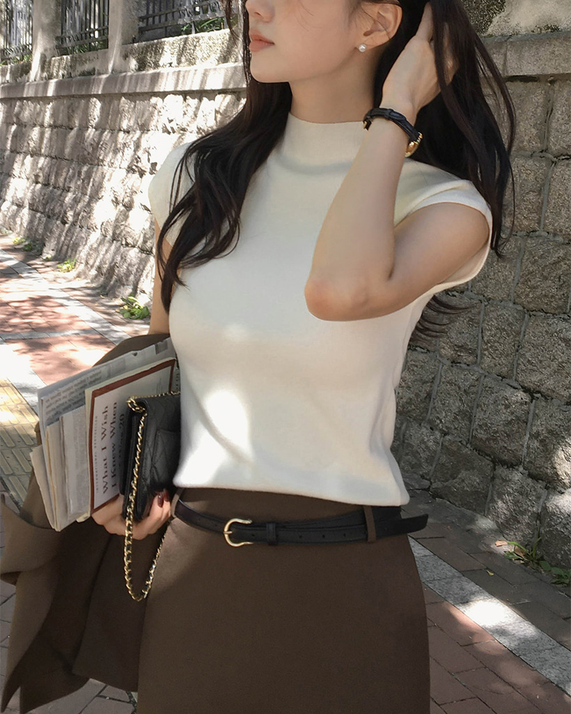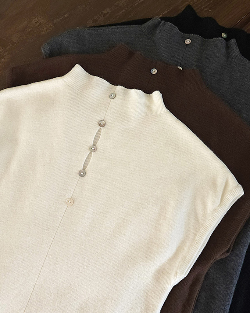 (4color) フレンチスリーブ ハイネック ベーシック ニット
