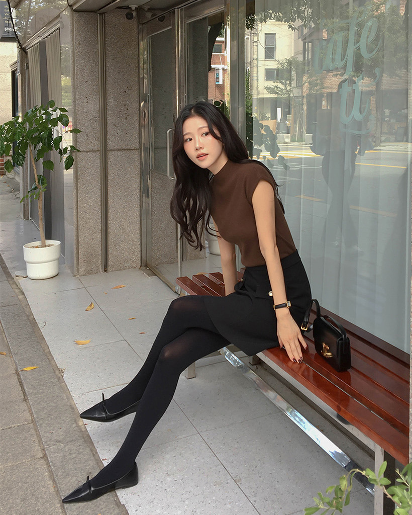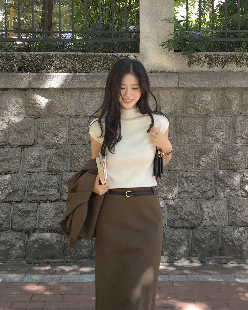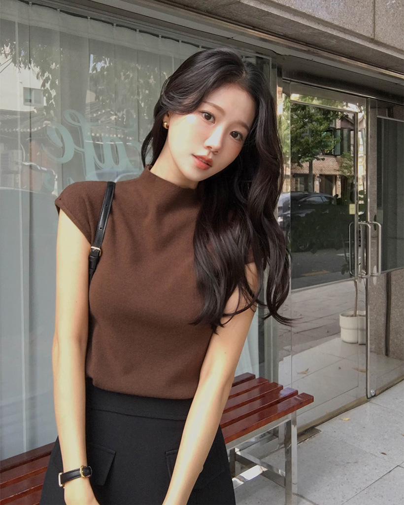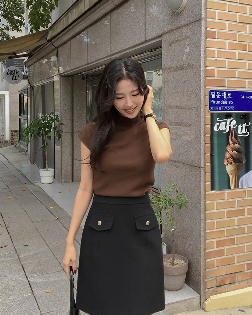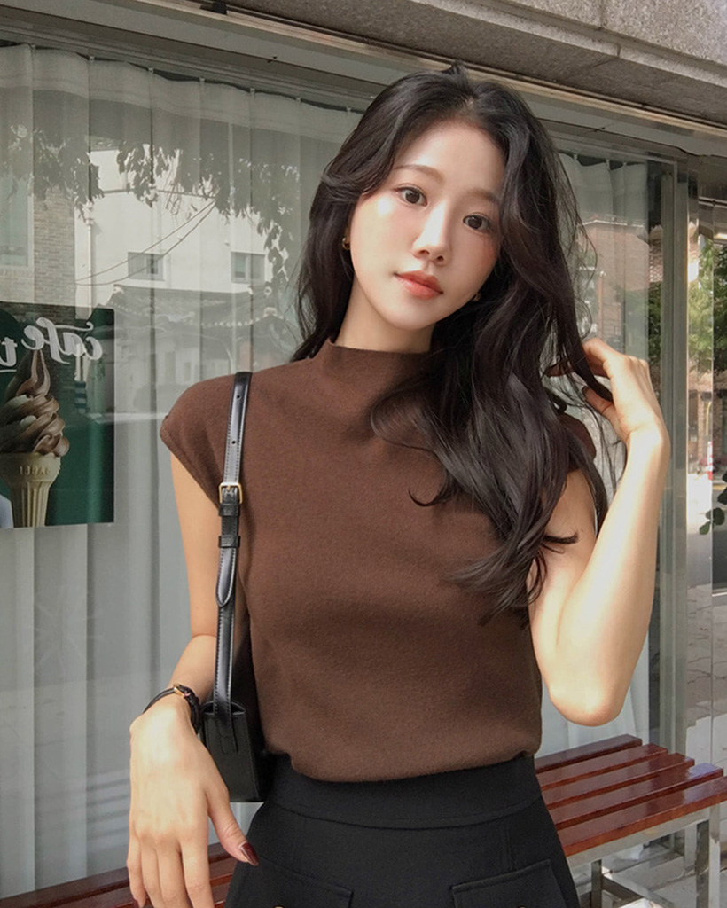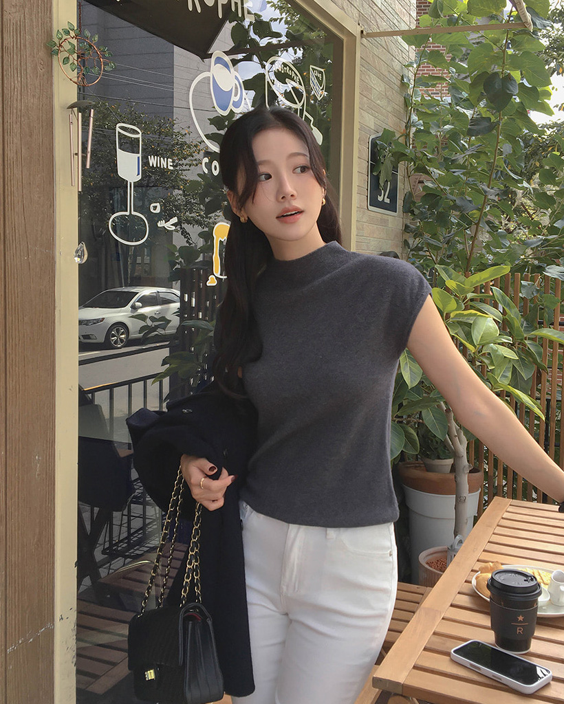 (4color) フレンチスリーブ ハイネック ベーシック ニット