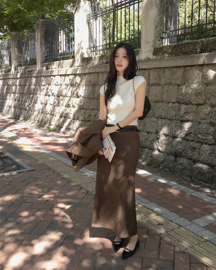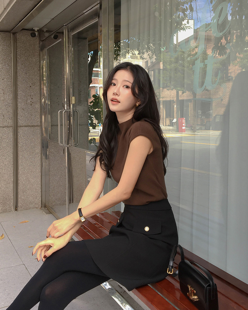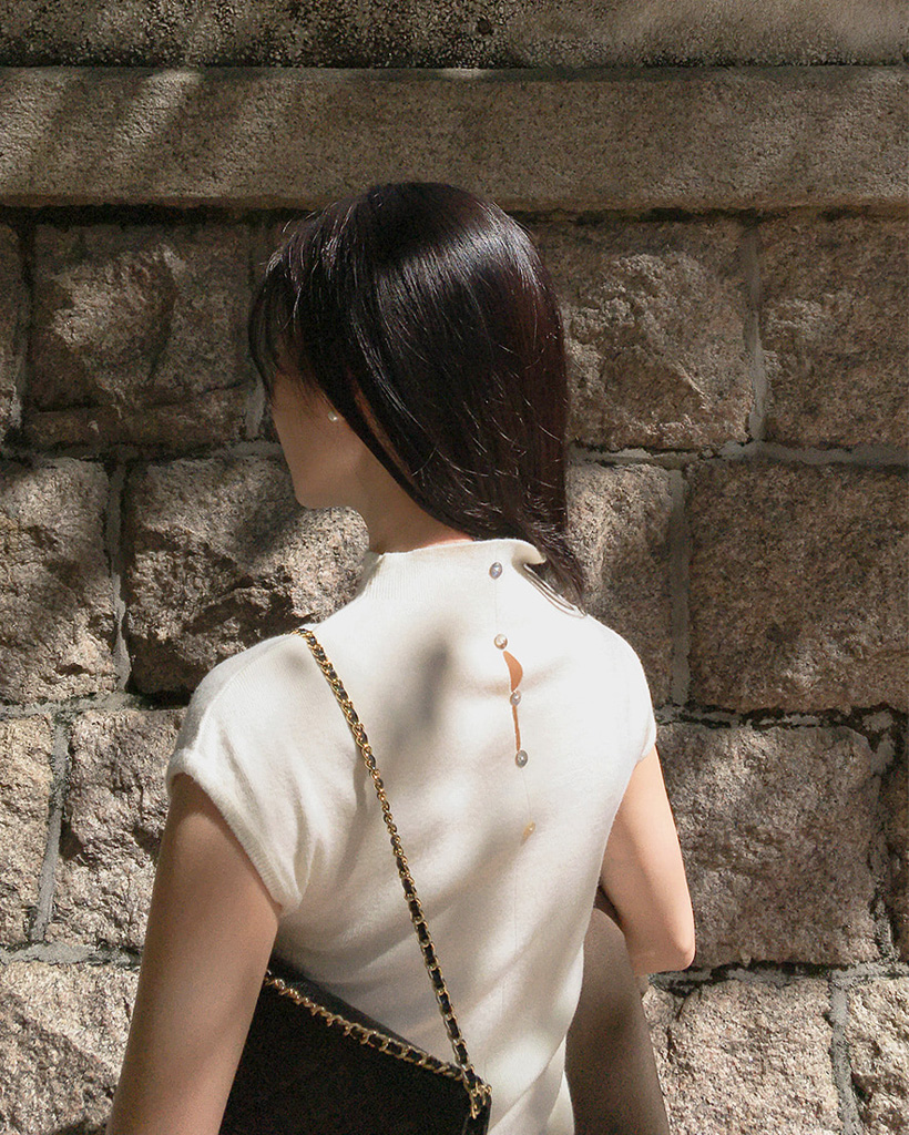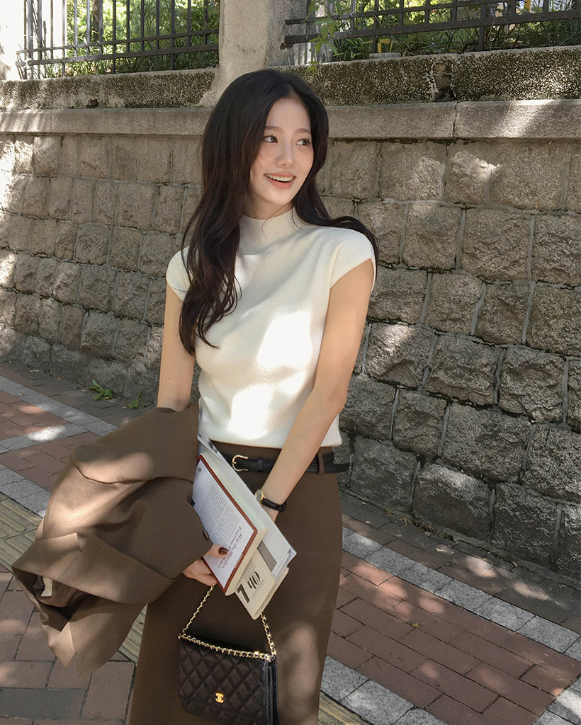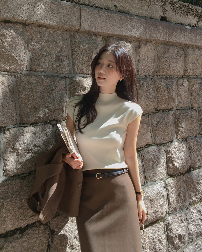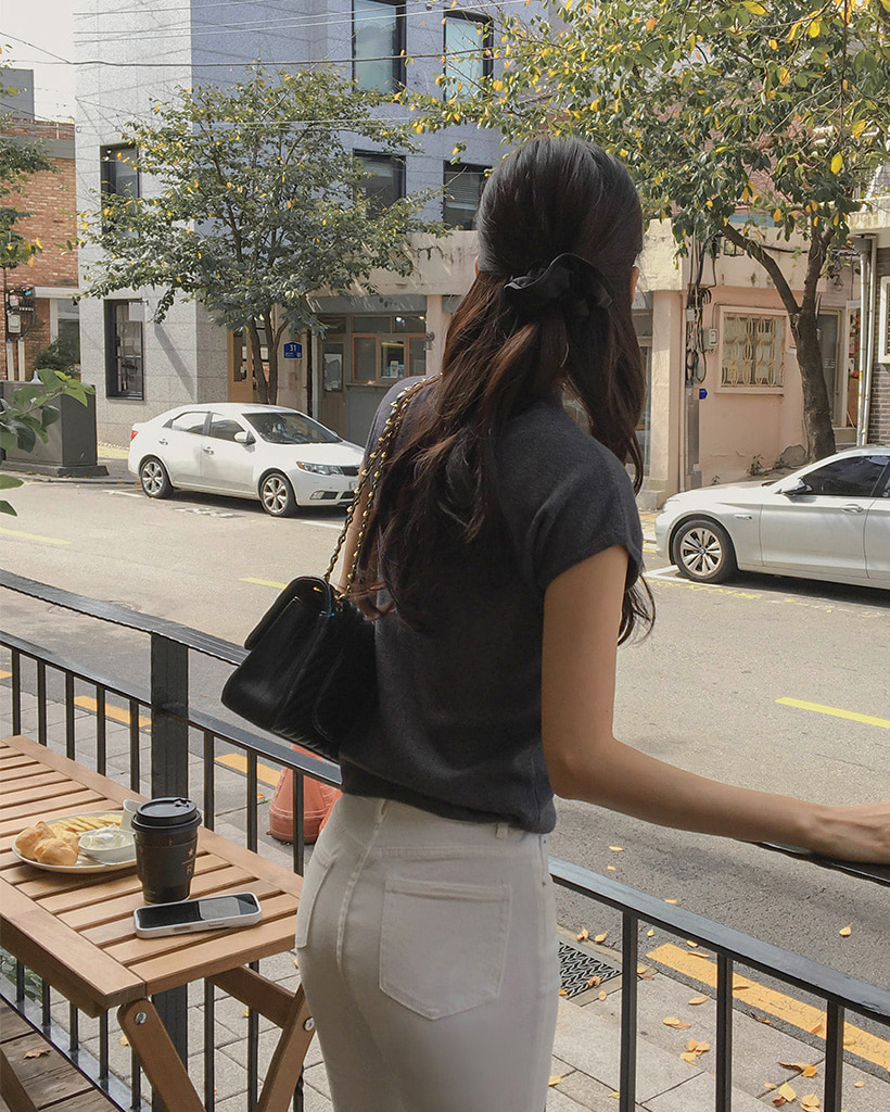 (4color) フレンチスリーブ ハイネック ベーシック ニット