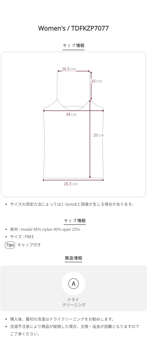FREE (44~55 size) 70A~D / 75A~C / 80A~B