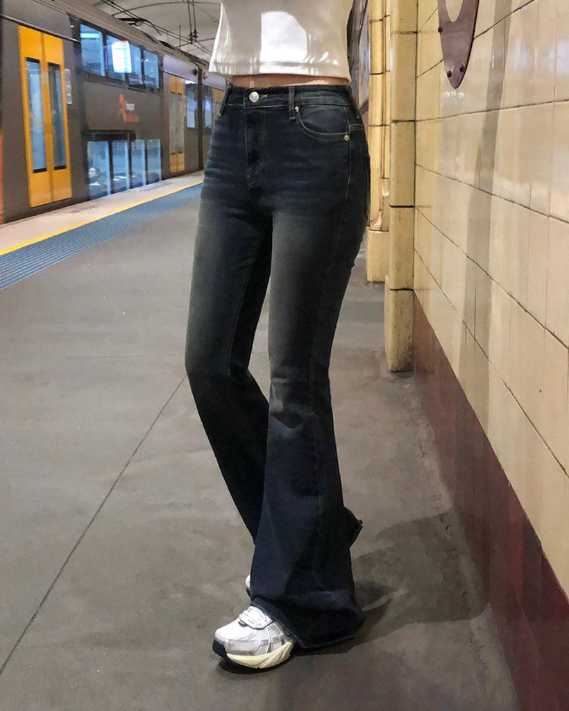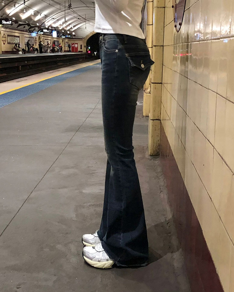 (ORIGINAL) バックポケット、ローライズフレアデニムパンツ