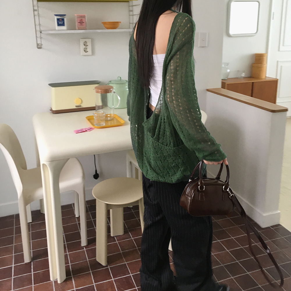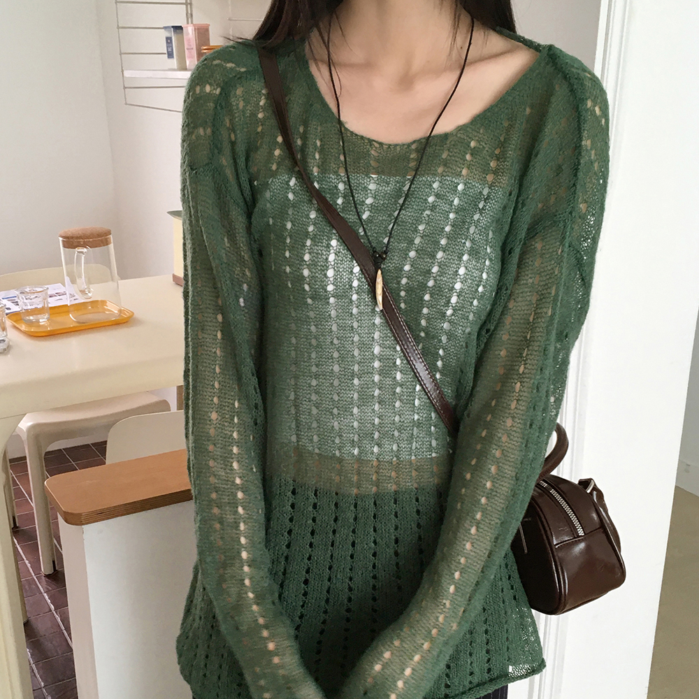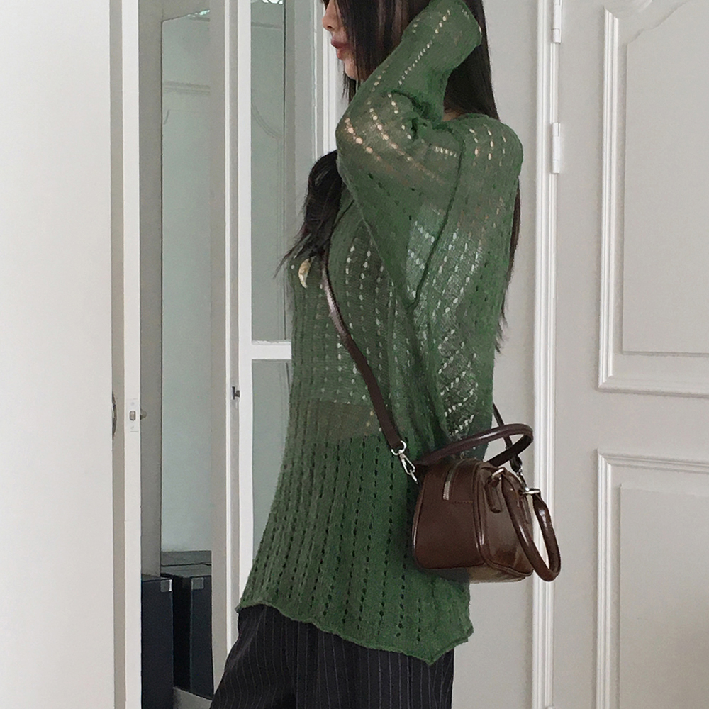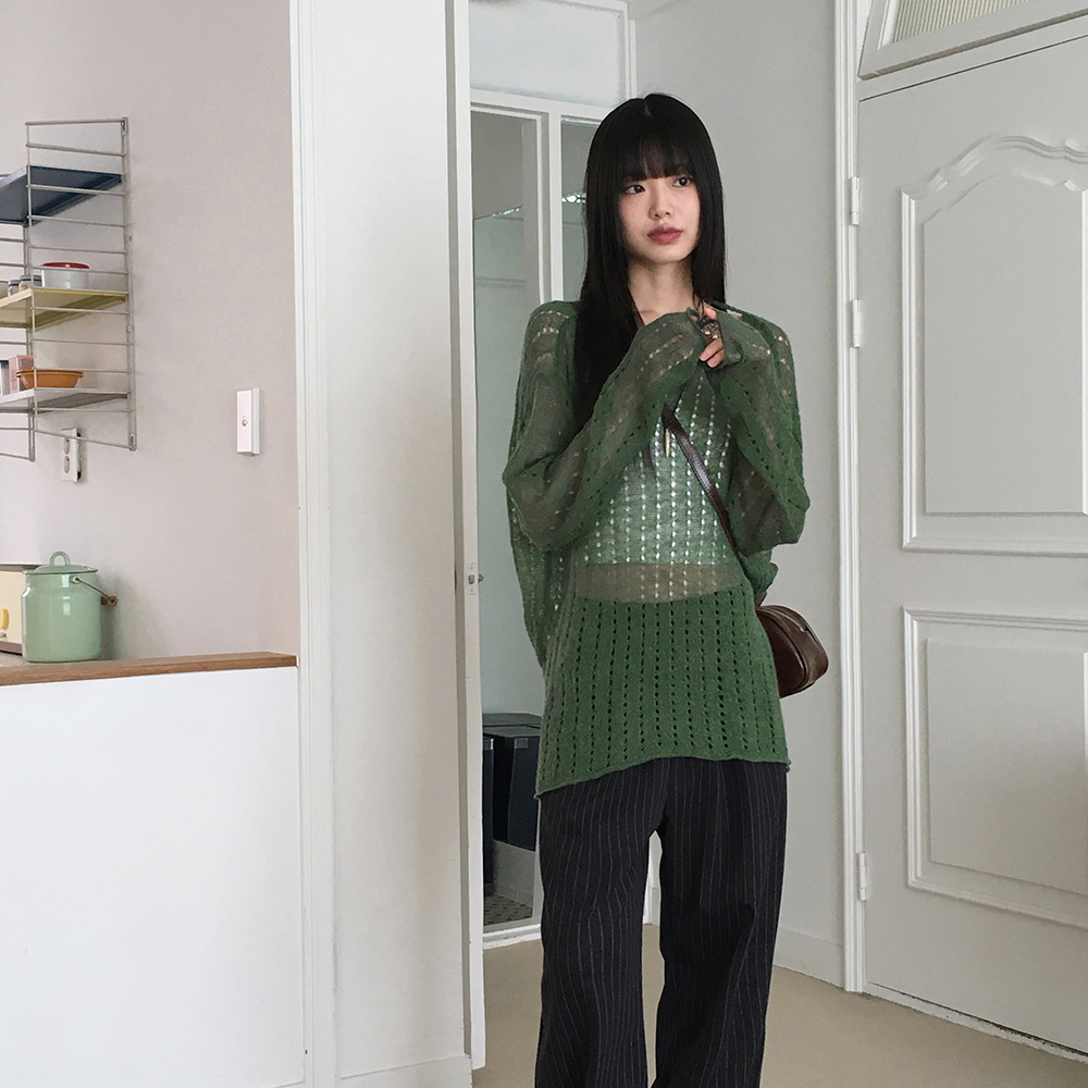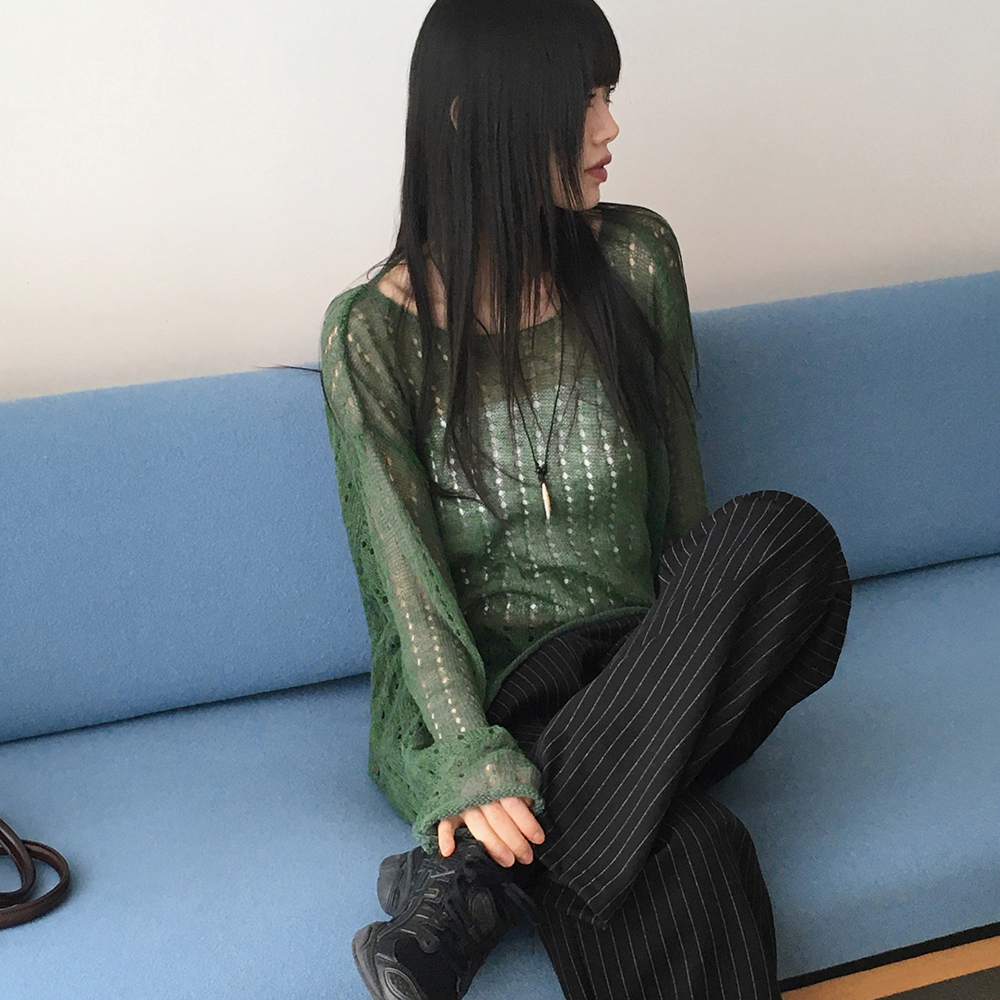 バックスリットストラップラップパンチングレイヤード長袖ニット