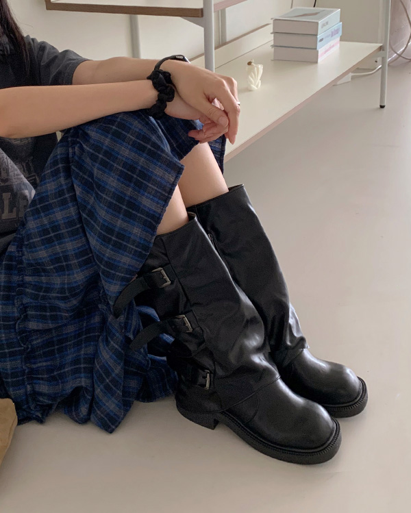 [ミドル/ロング]バックルバイカーウォーマー ブーツ (2color)
