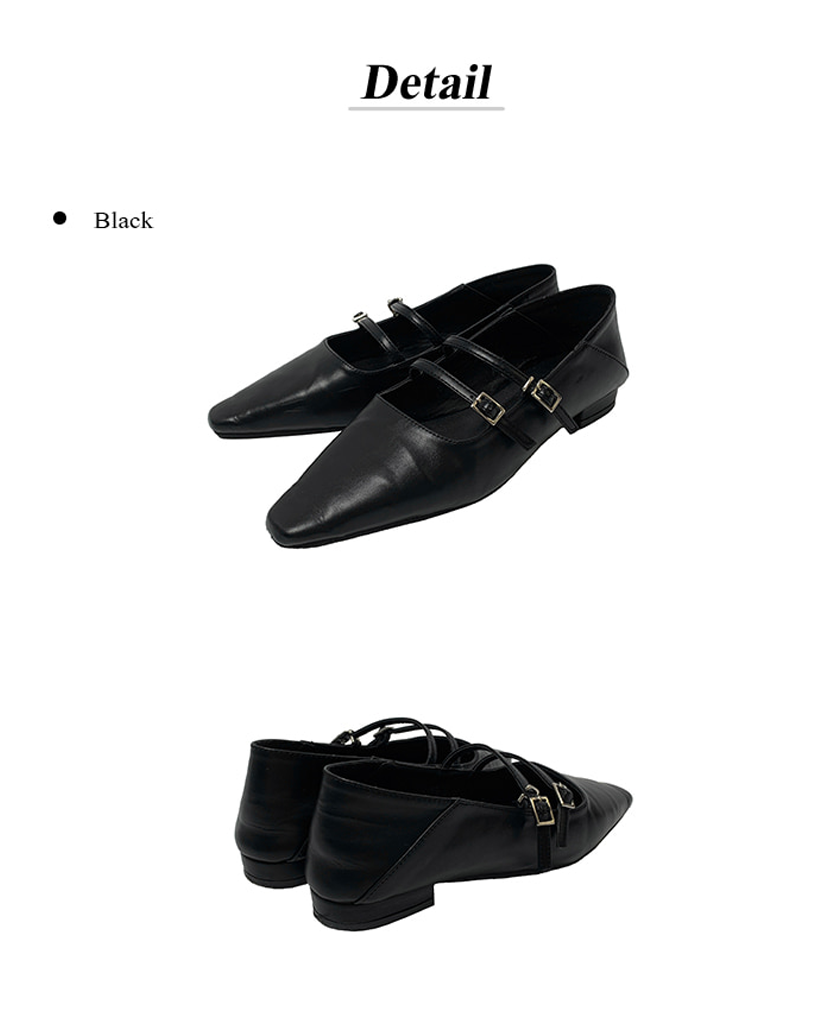 [コーデ完璧] ポインテッドトゥダブルベルトフラットシューズ