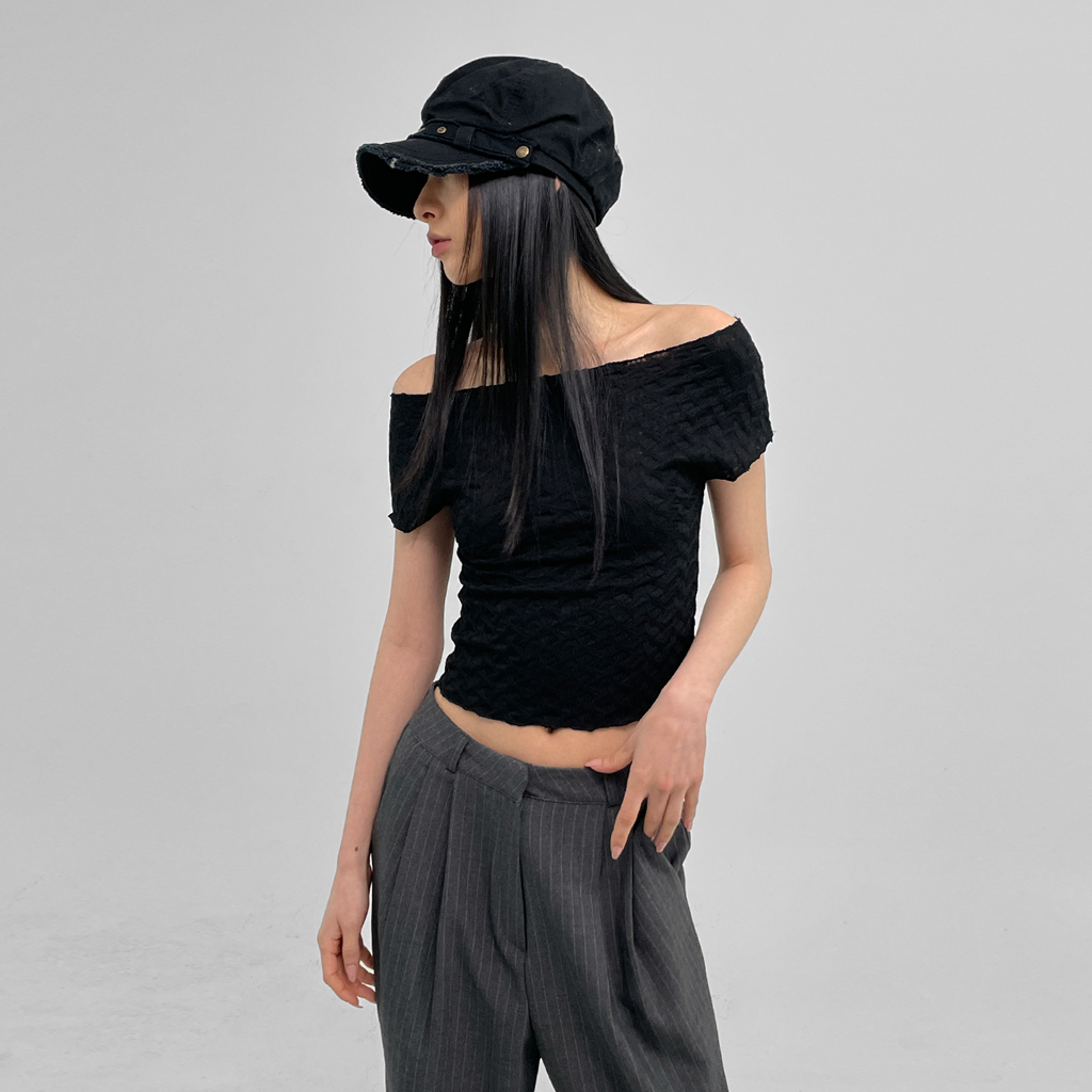 アロビングクリーズオフショルダークロップナシ