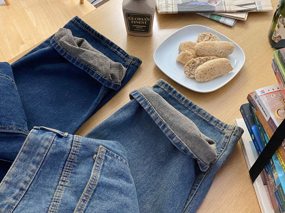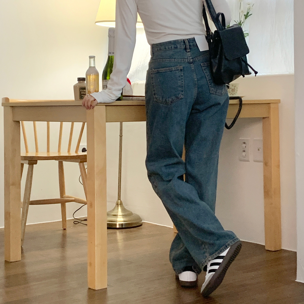 ハイウエスト裏起毛デイリーワイドデニムパンツ