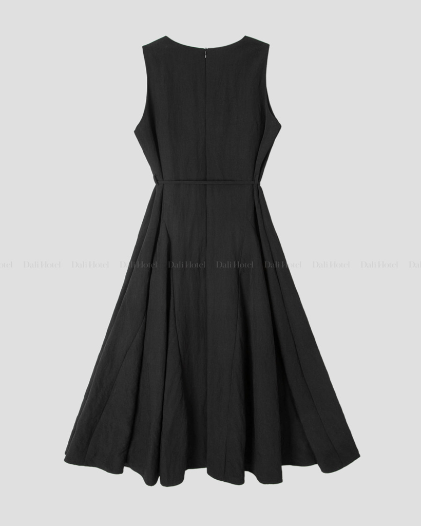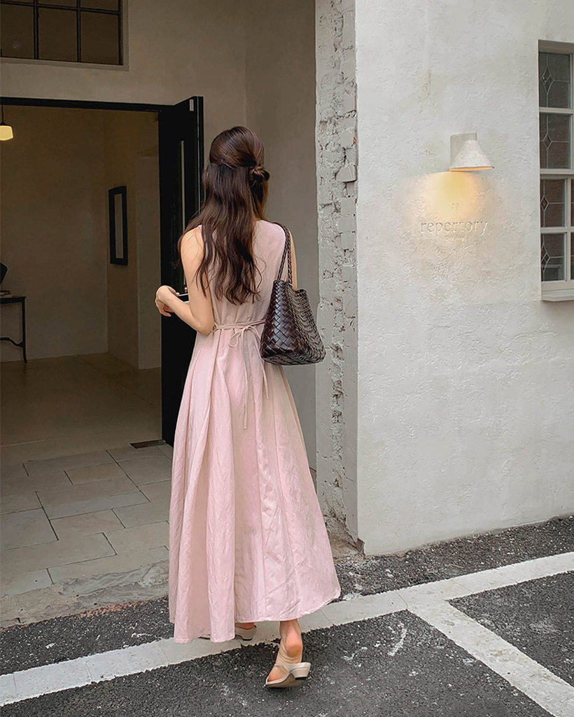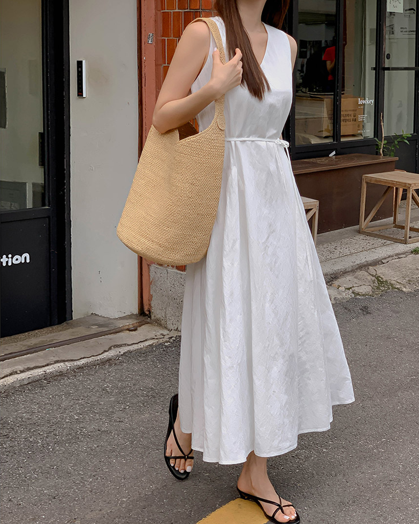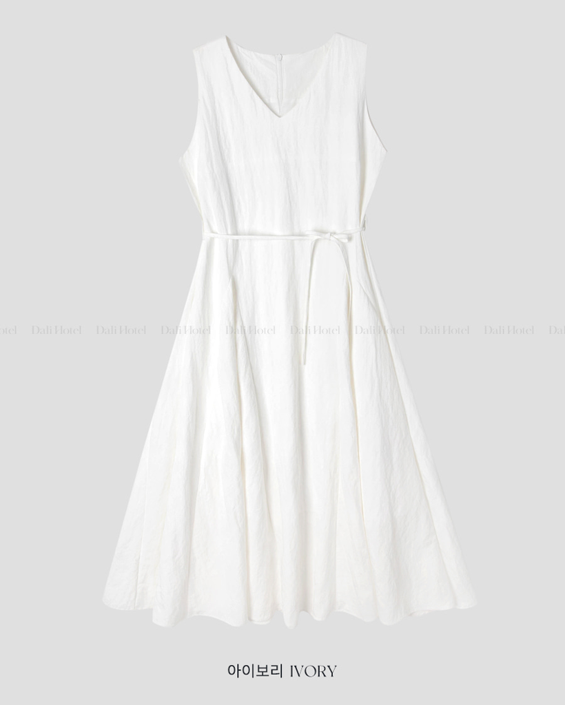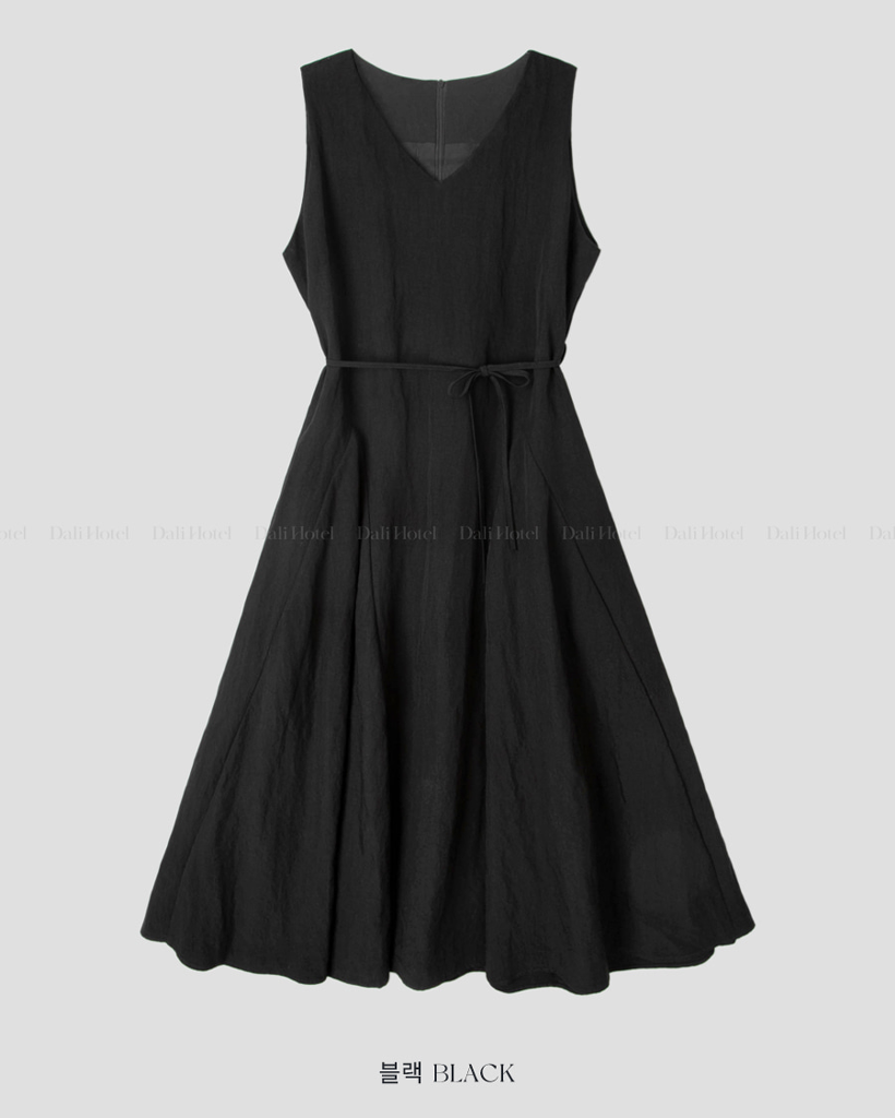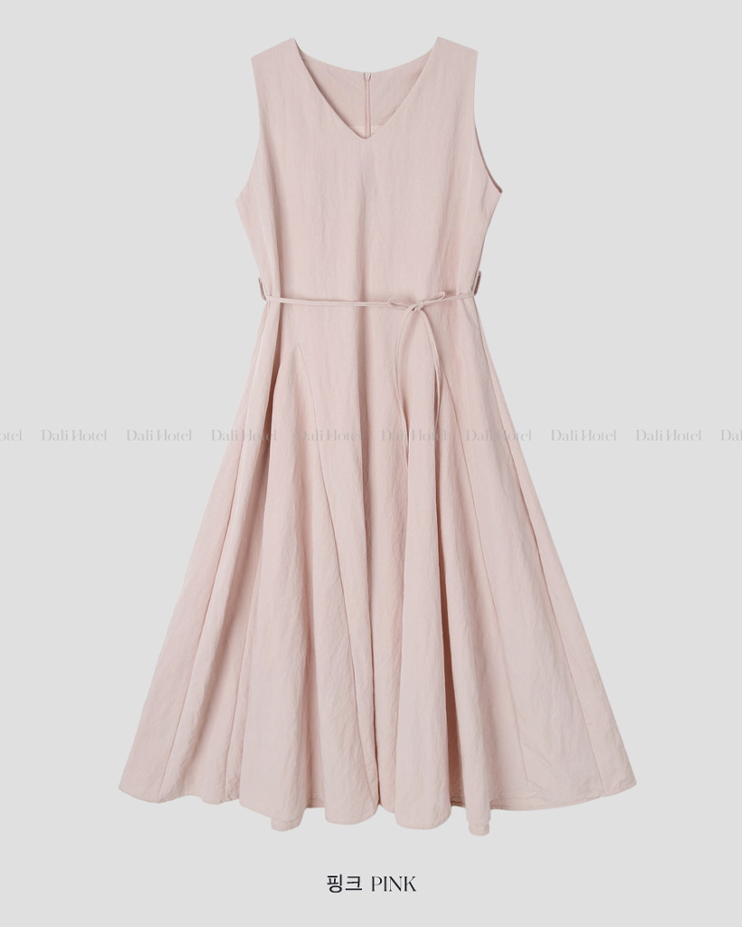 Vネックベルト付きフレアキャミワンピース