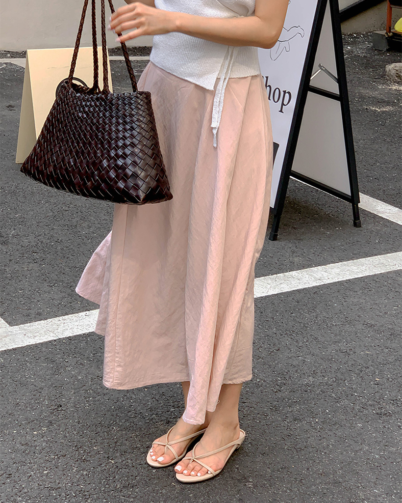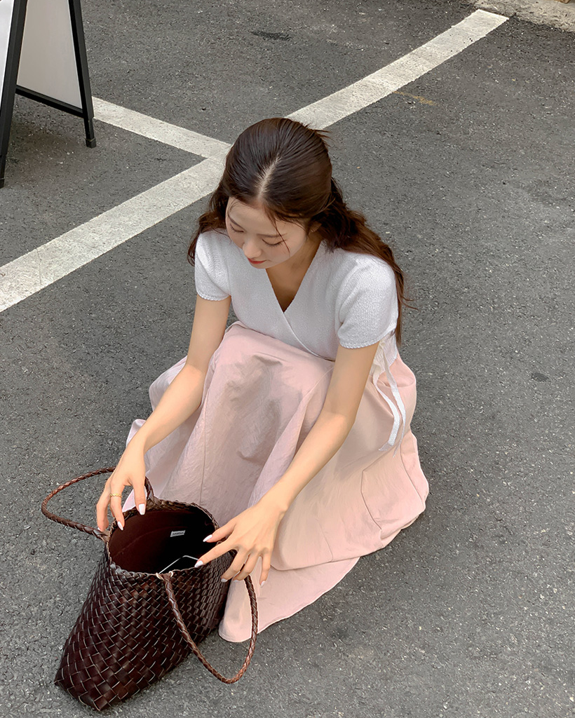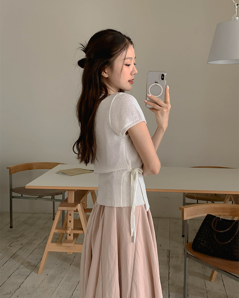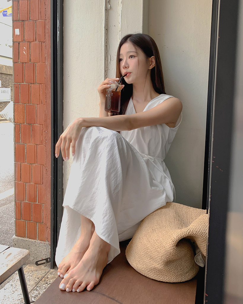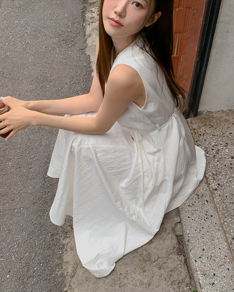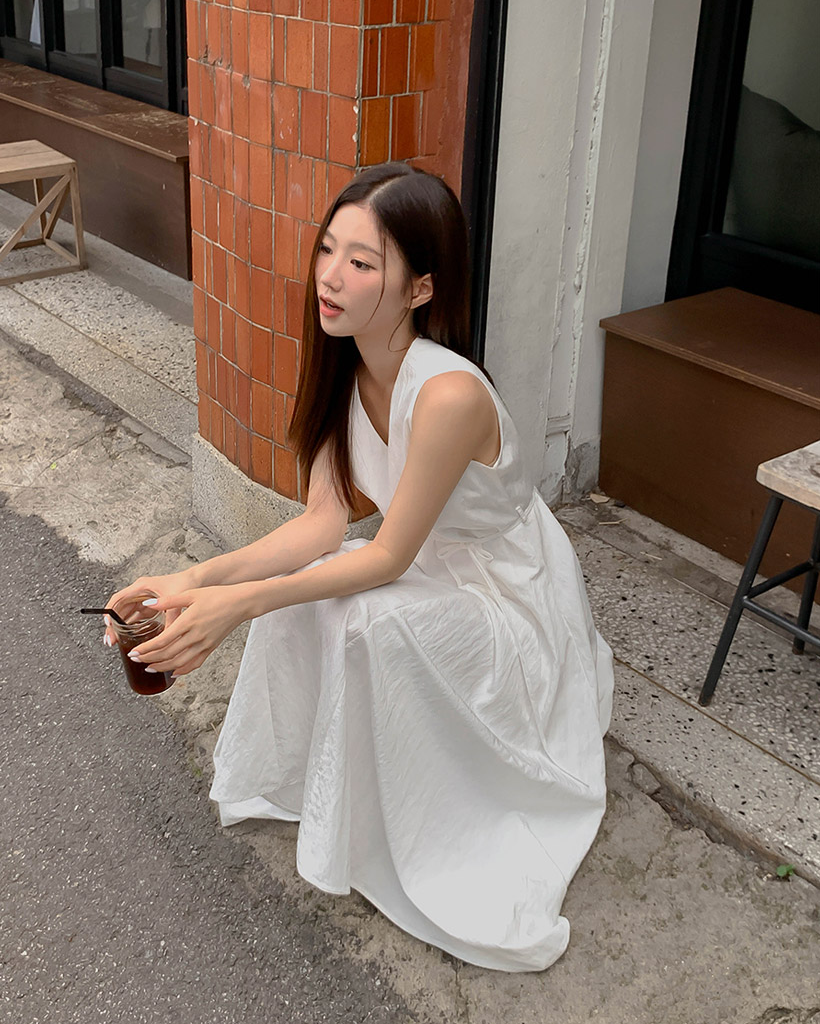 Vネックベルト付きフレアキャミワンピース