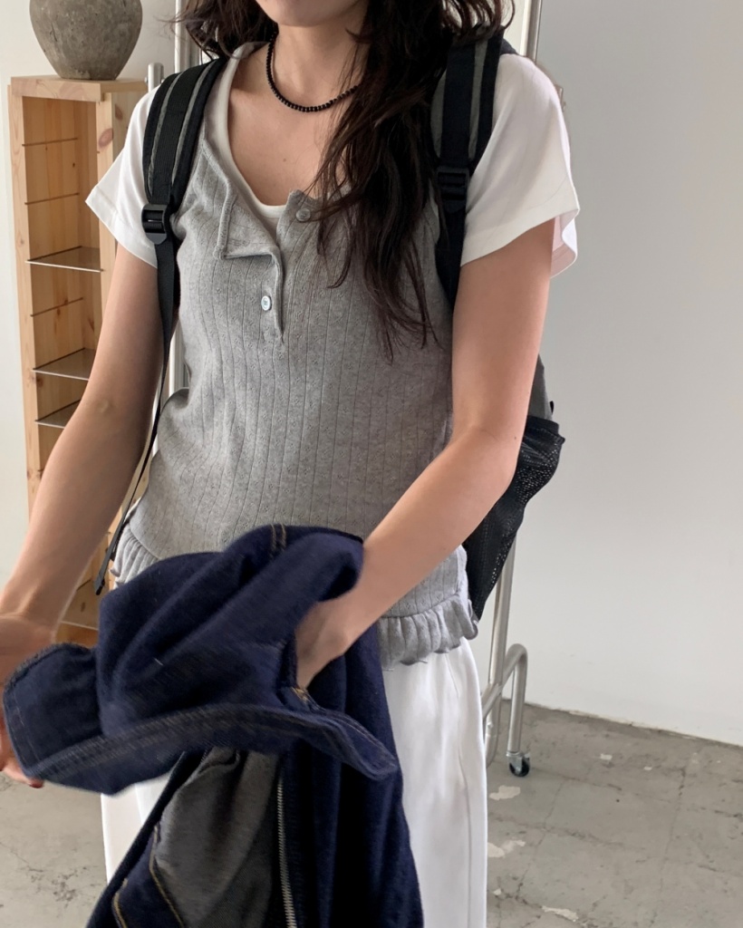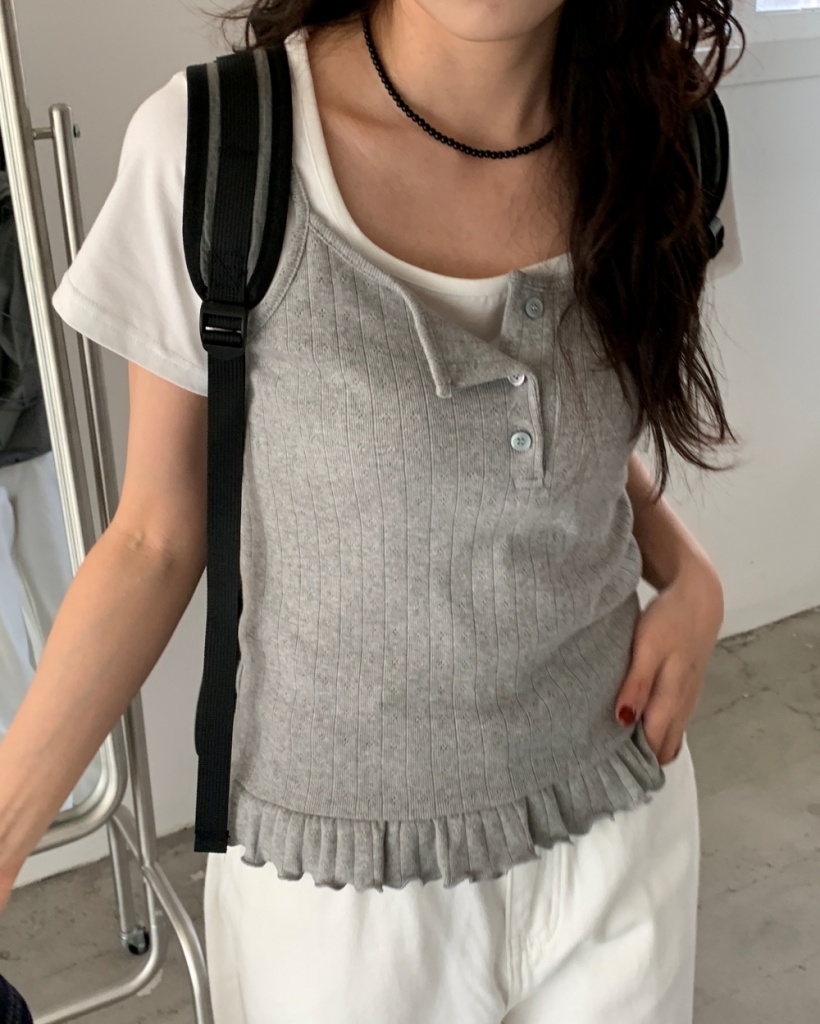 リブパンチングフラワーキャミソールビスチェ