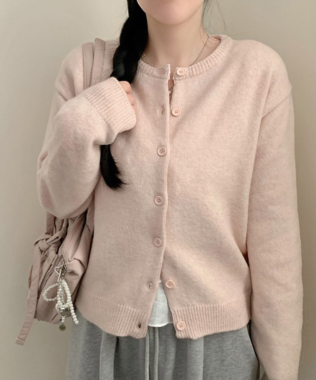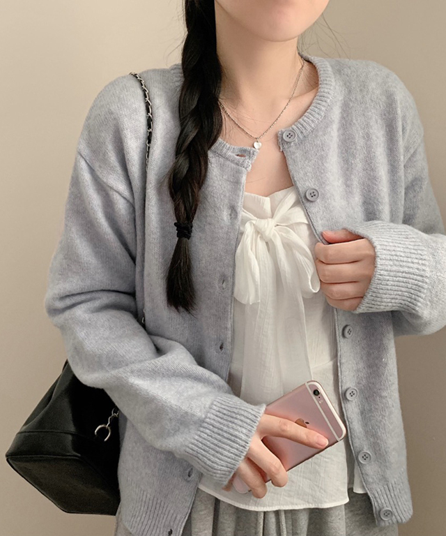 (6color) クルーネックニットカーディガン