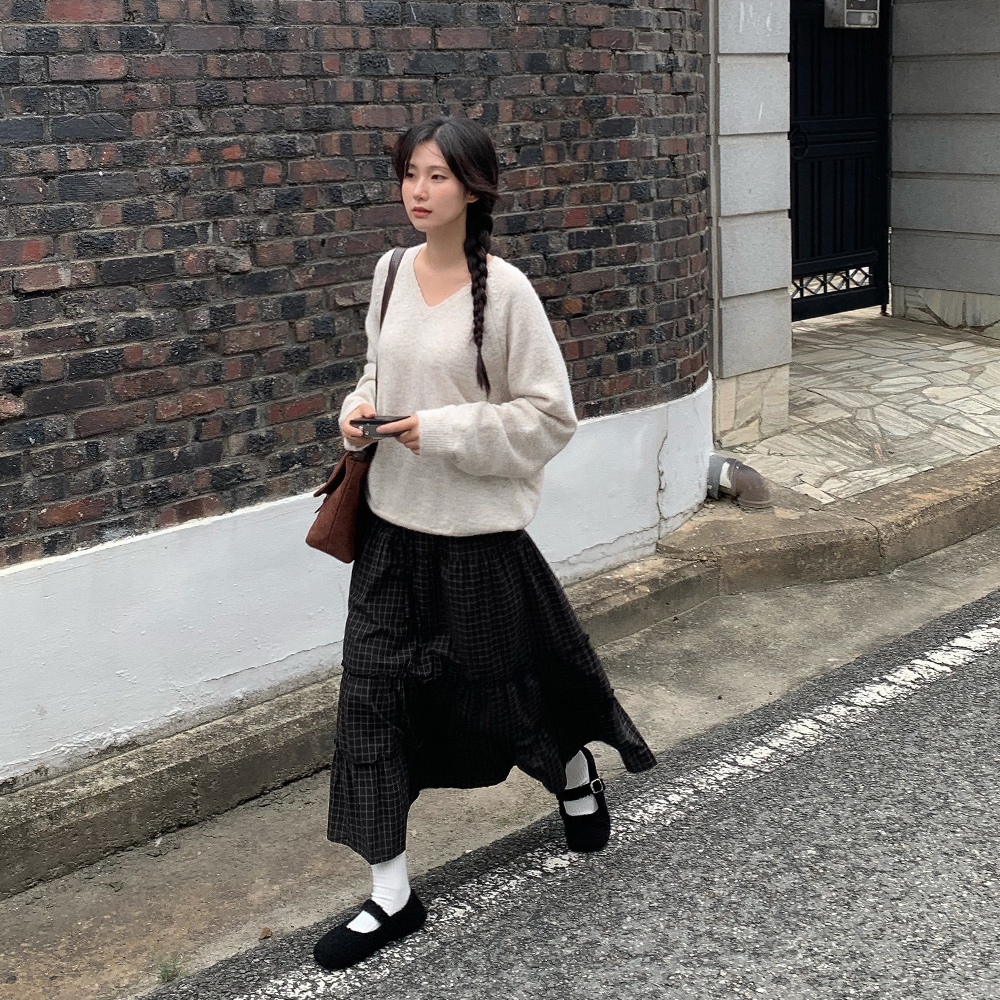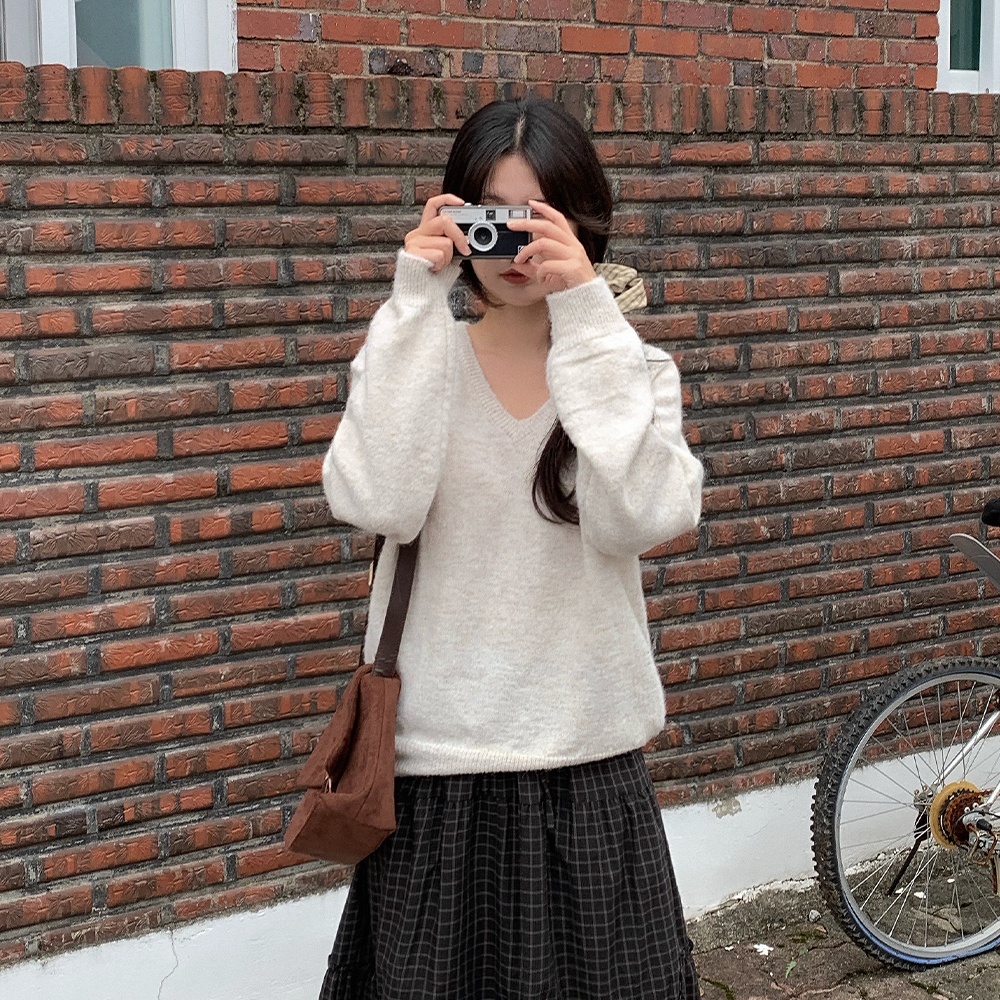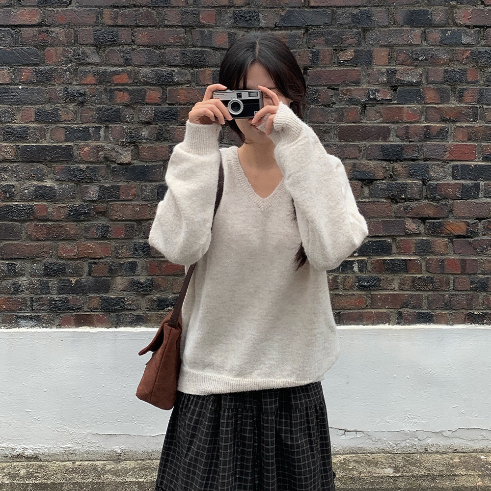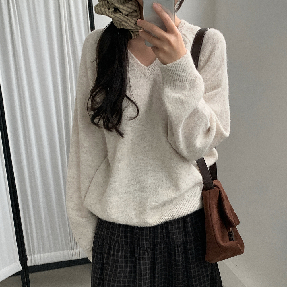 ウールブークレVネックニット