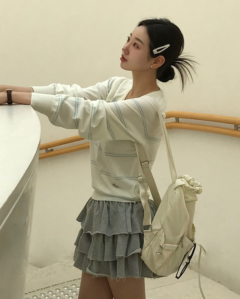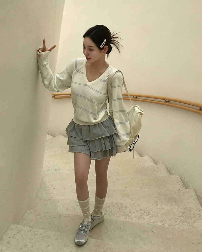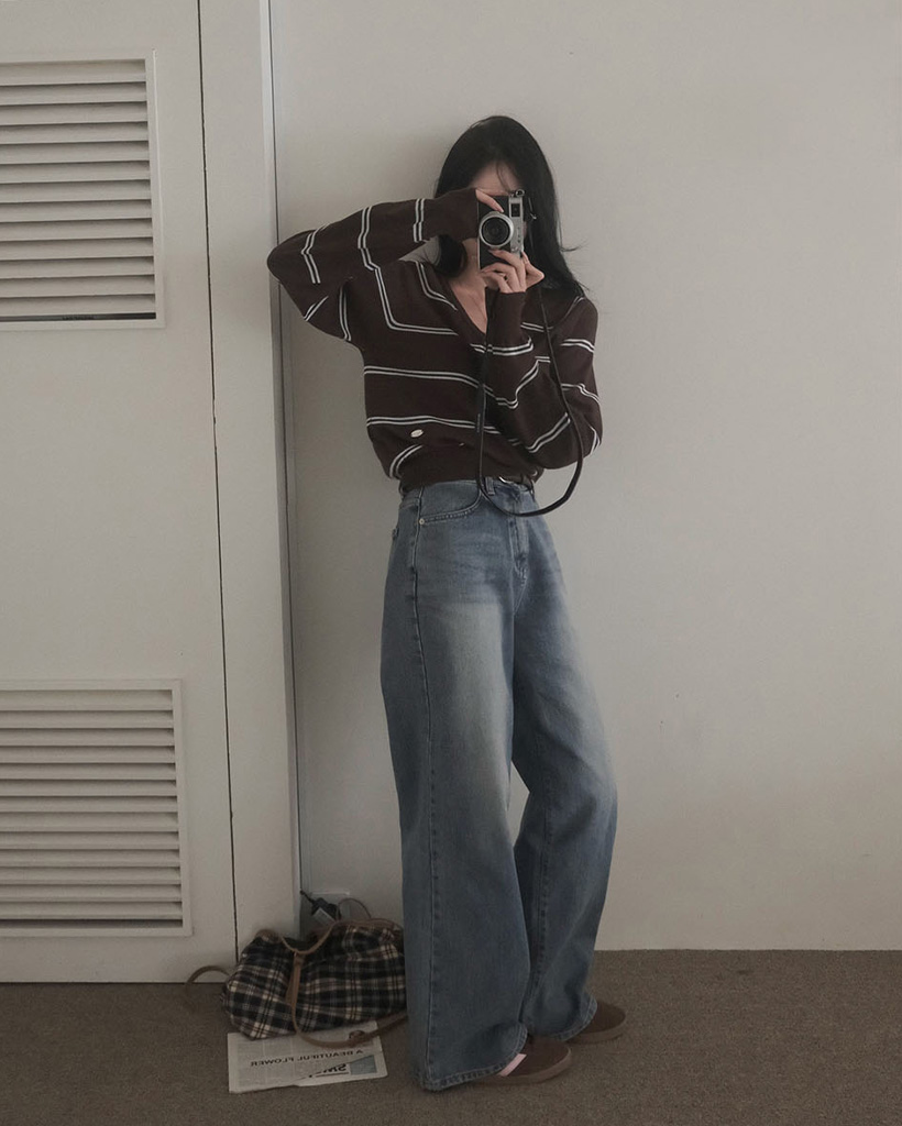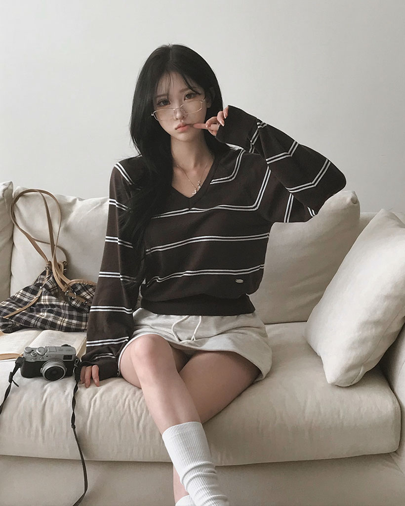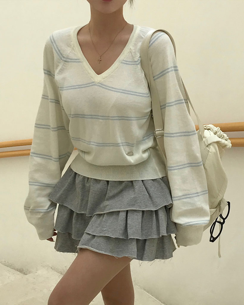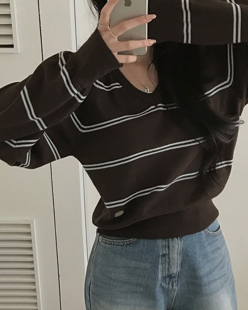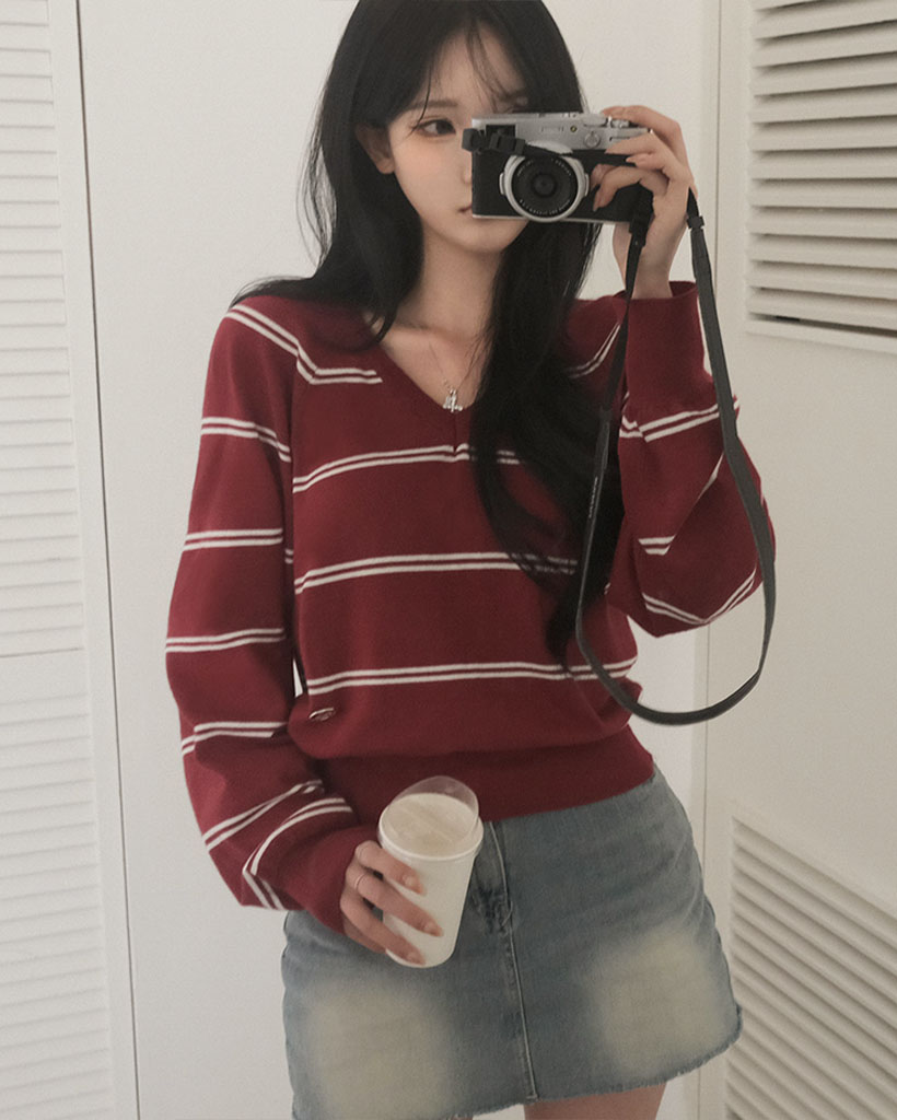 (ORIGINAL) ロリポップ、ストライプVネックニット