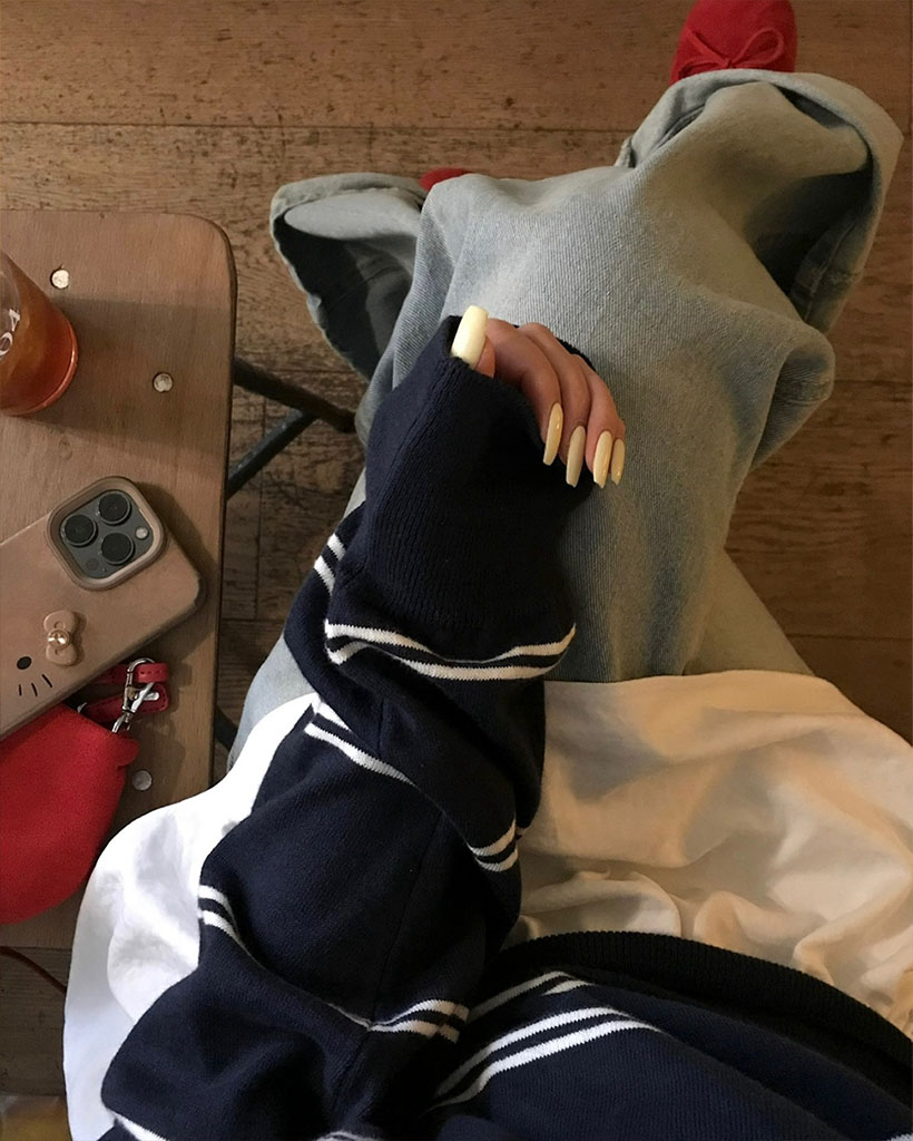 ルーズなシルエット+しっかりとしたリブラインのディテールが加わって